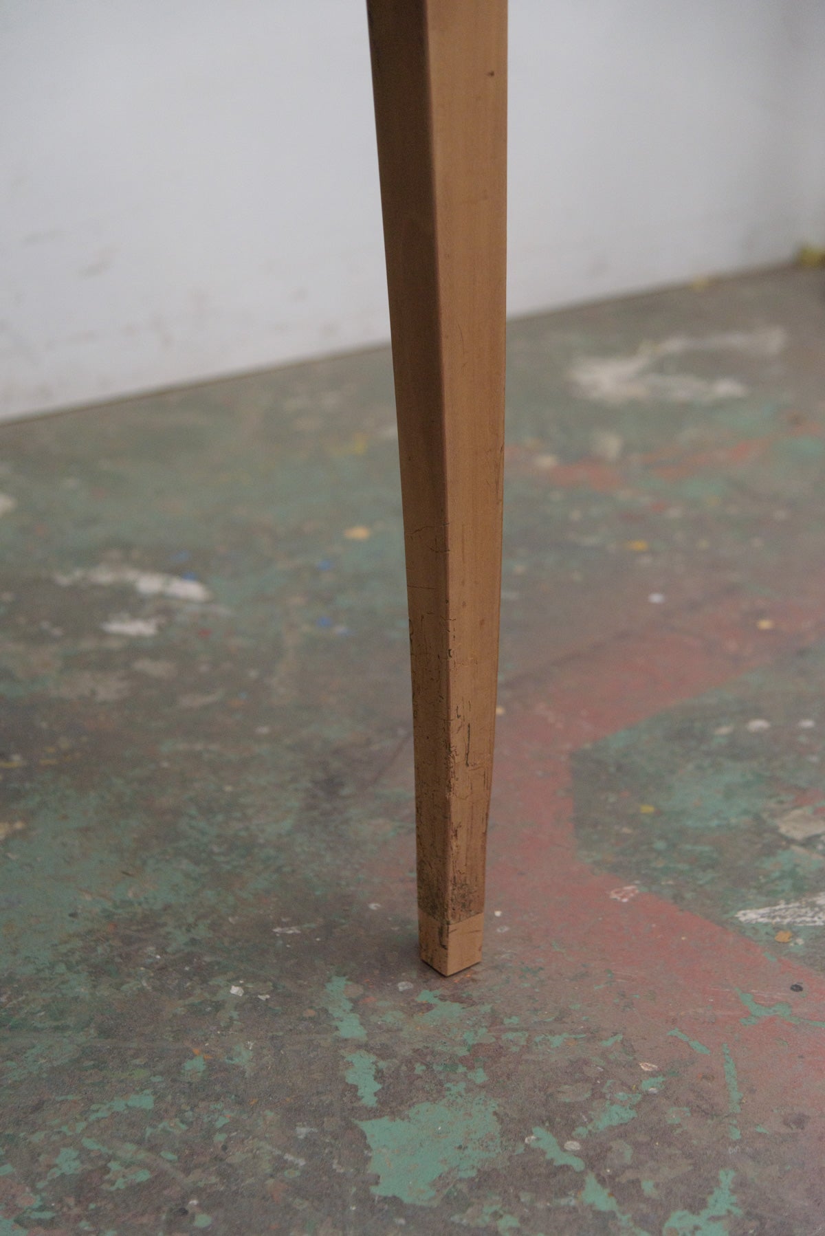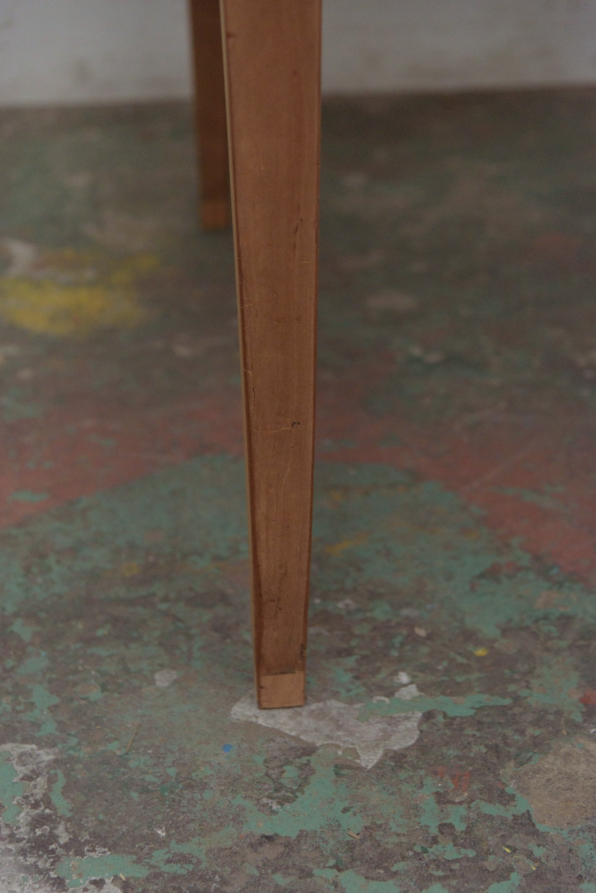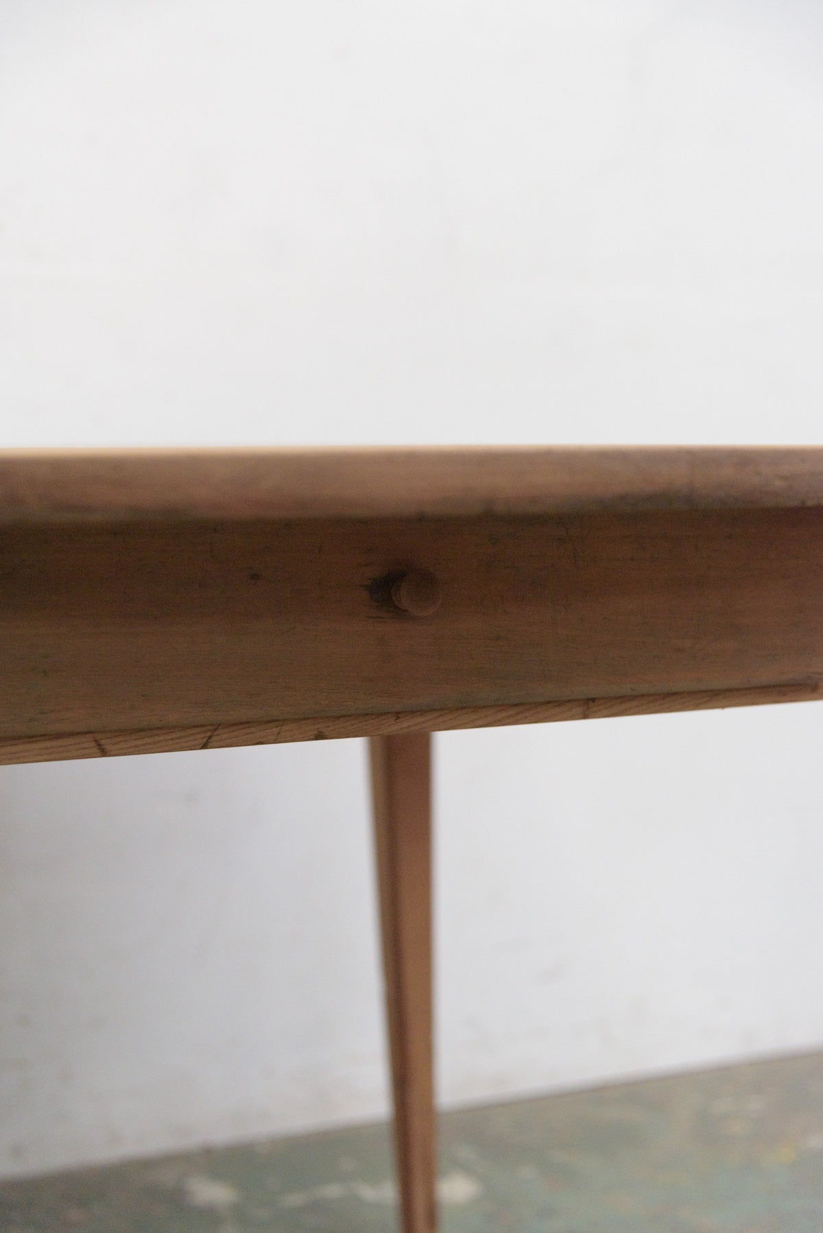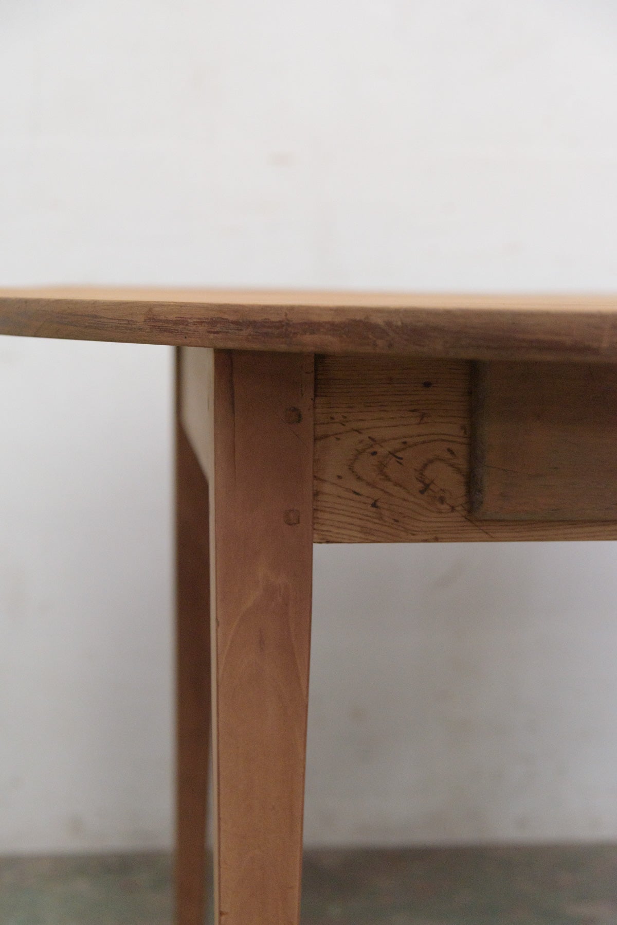 19世紀前半の古いラウンドテーブルでシンプルな脚のものは比較的少なく、こちらは特に綺麗な細い脚のたたずまいの良いテーブルです。材質はチェリー、虫食い跡がありますがパテ埋めされています。