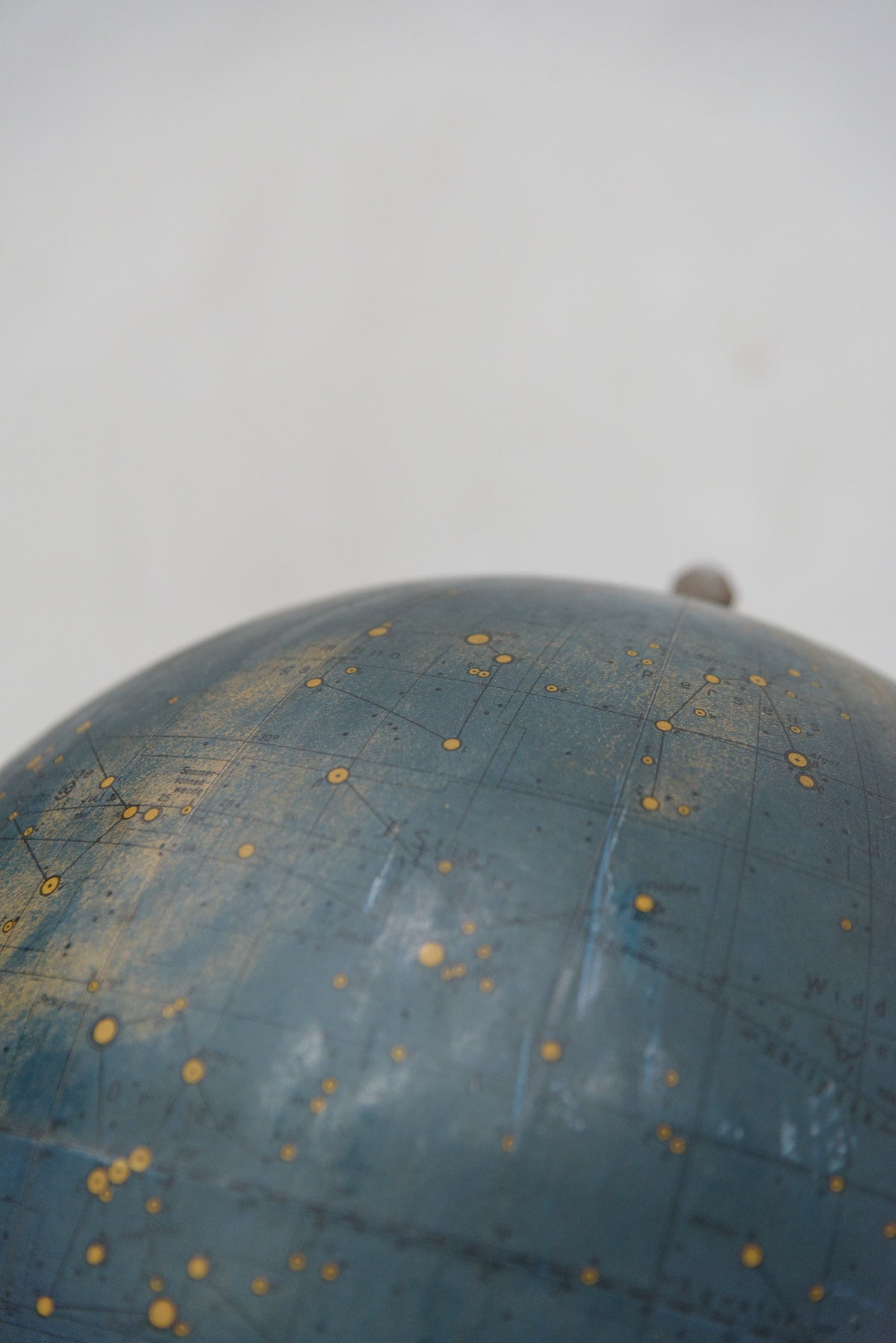 深いブルーの球体に、無数の星々と星座が描かれた古い天体儀。古い地球儀も脚付きのものは少なくなっています。ドイツ語表記が見られることから、20世紀初頭頃のドイツ圏で教育用として制作されたものと考えられます。星を見上げていた当時の人々の思いが感じられるロマンのあるオブジェです。
