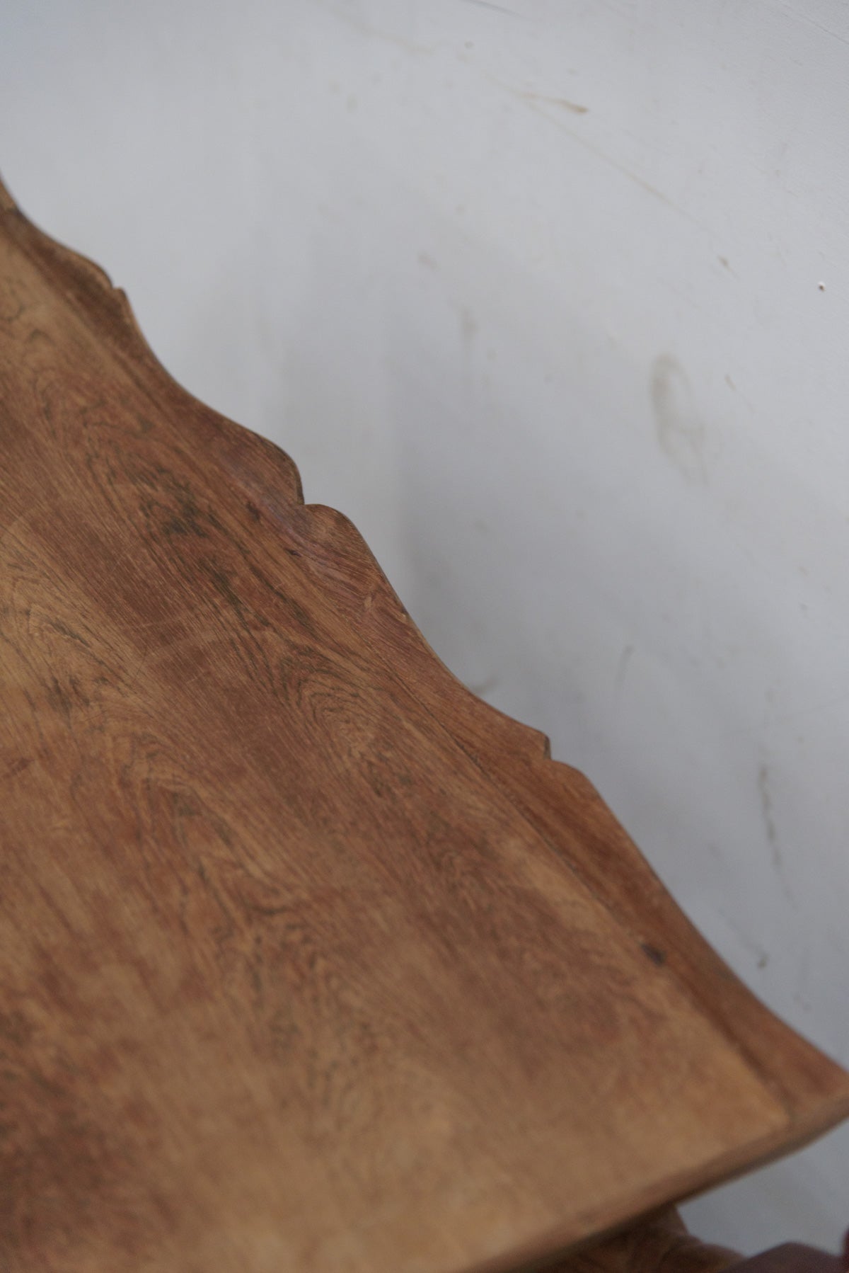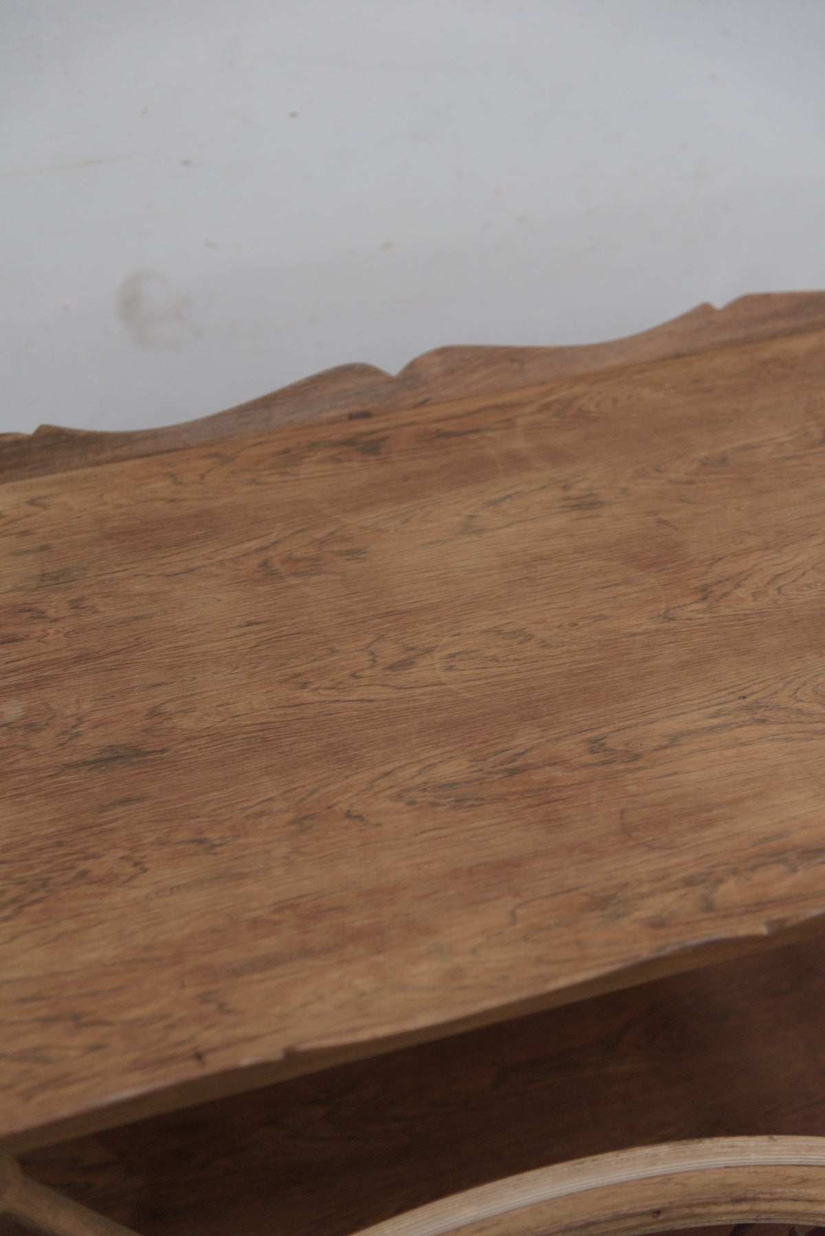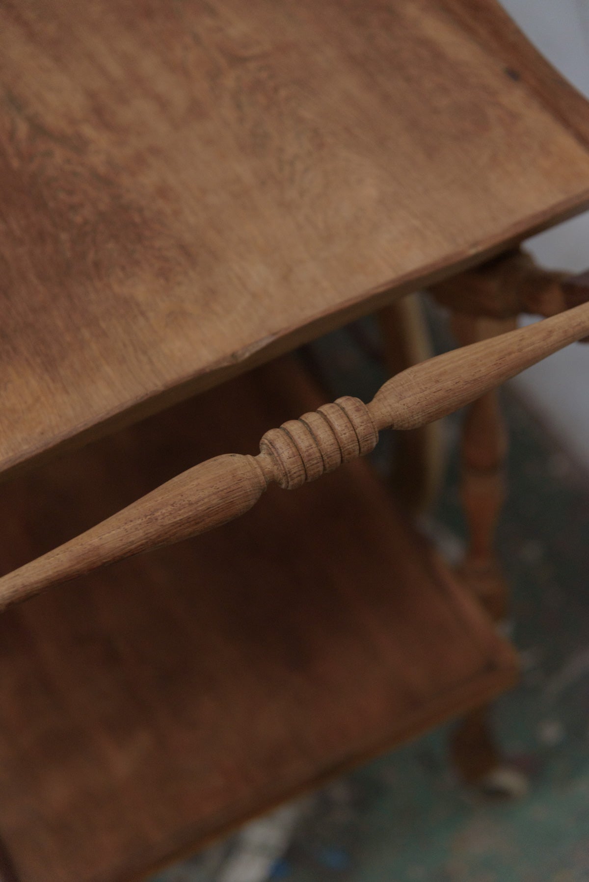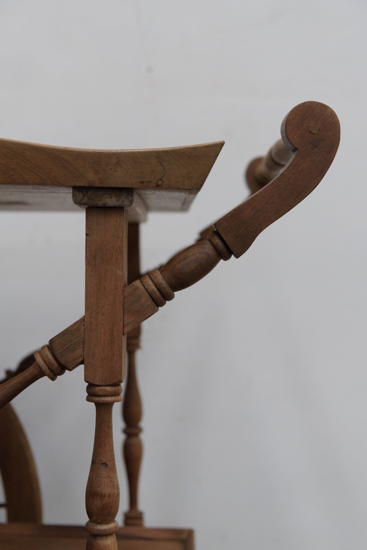 めずらしい大きな木製の車輪、全体的にシャープな印象のオブジェのような存在感のワゴンです。