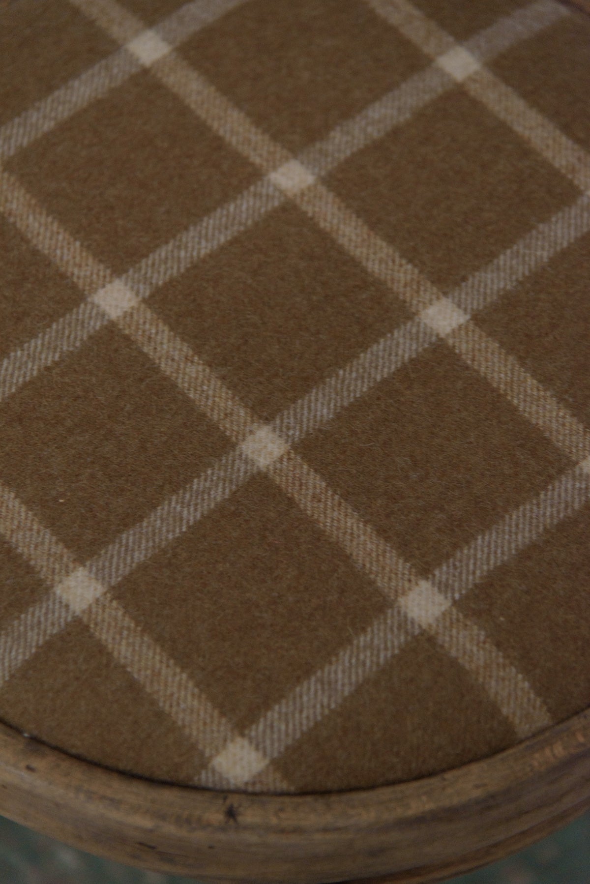 1920ー40年ごろの古い椅子です。座面はイギリスのデッドストックの生地を使って張り替えています。椅子の量産が始まったころのクラシックとモダンの中間的な家具で、クラフト感と軽さを兼ね備えています。