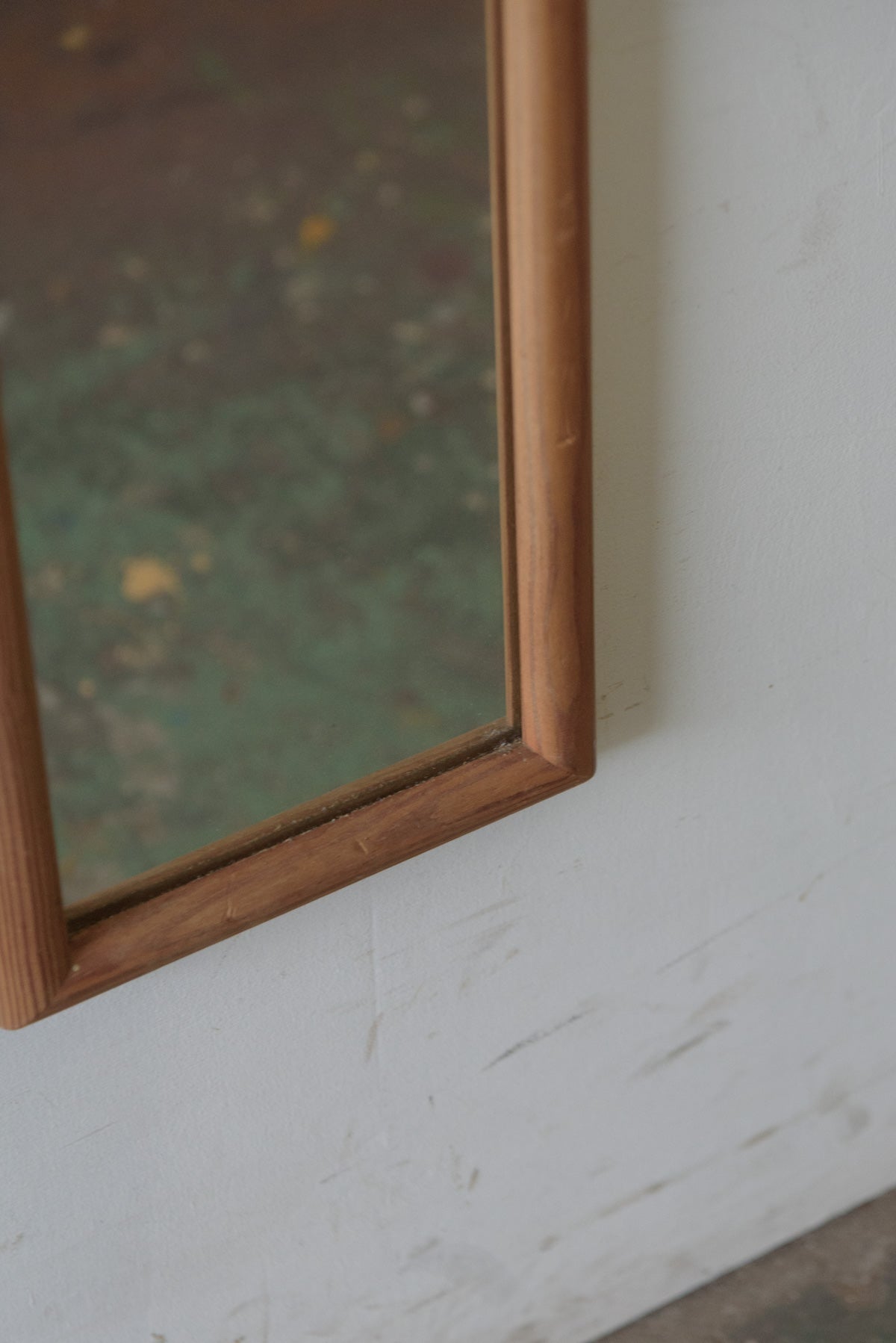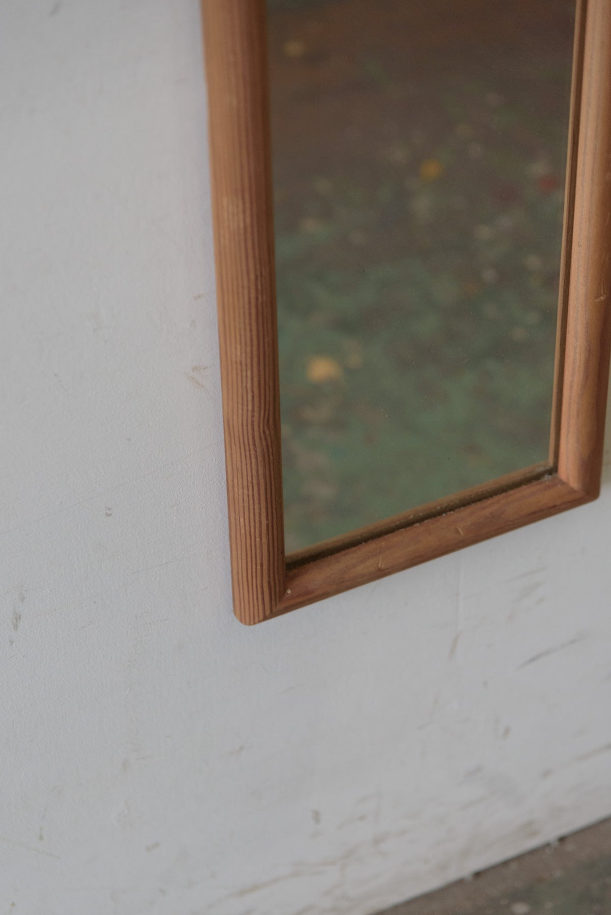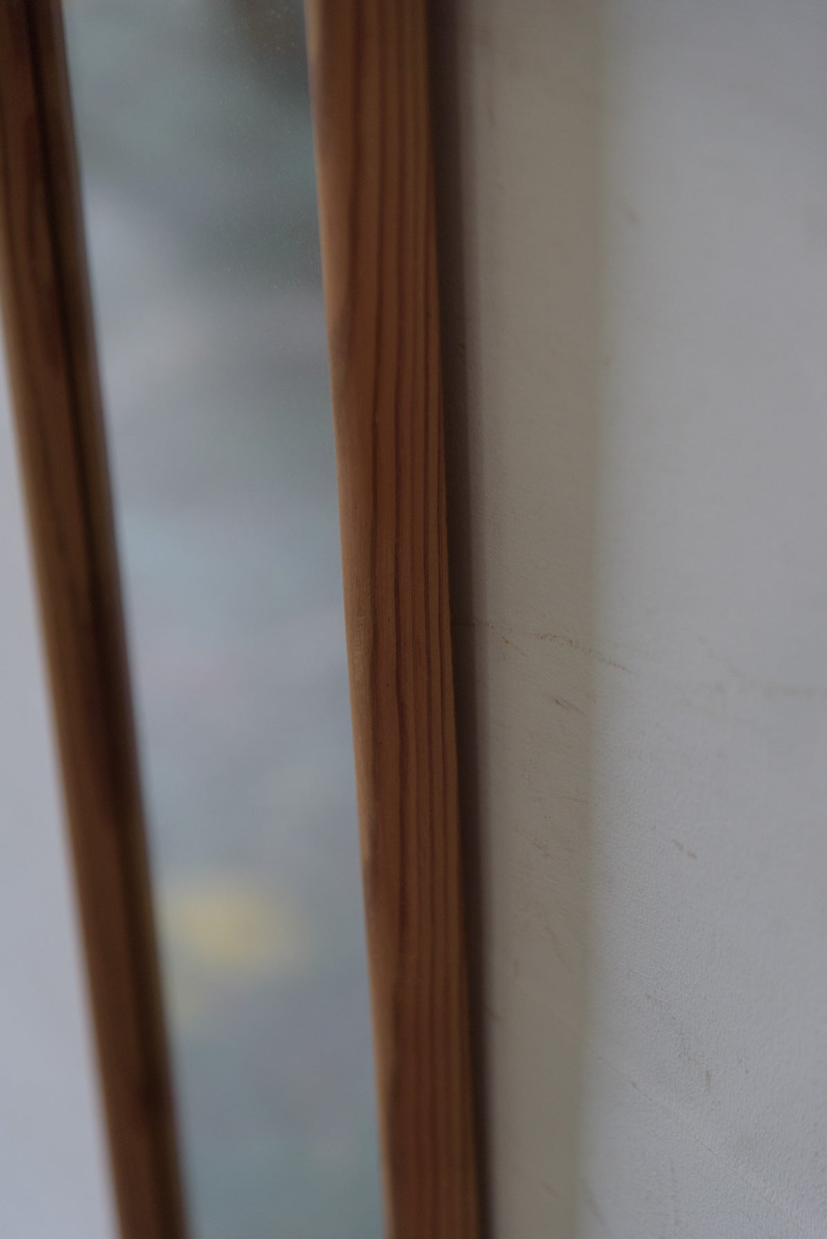 それほど古いものではありませんが、アーチ型で細長い形状で場所をとらずにアクセントになりそうなミラーです。枠はパイン、鏡の状態も非常に良いです。