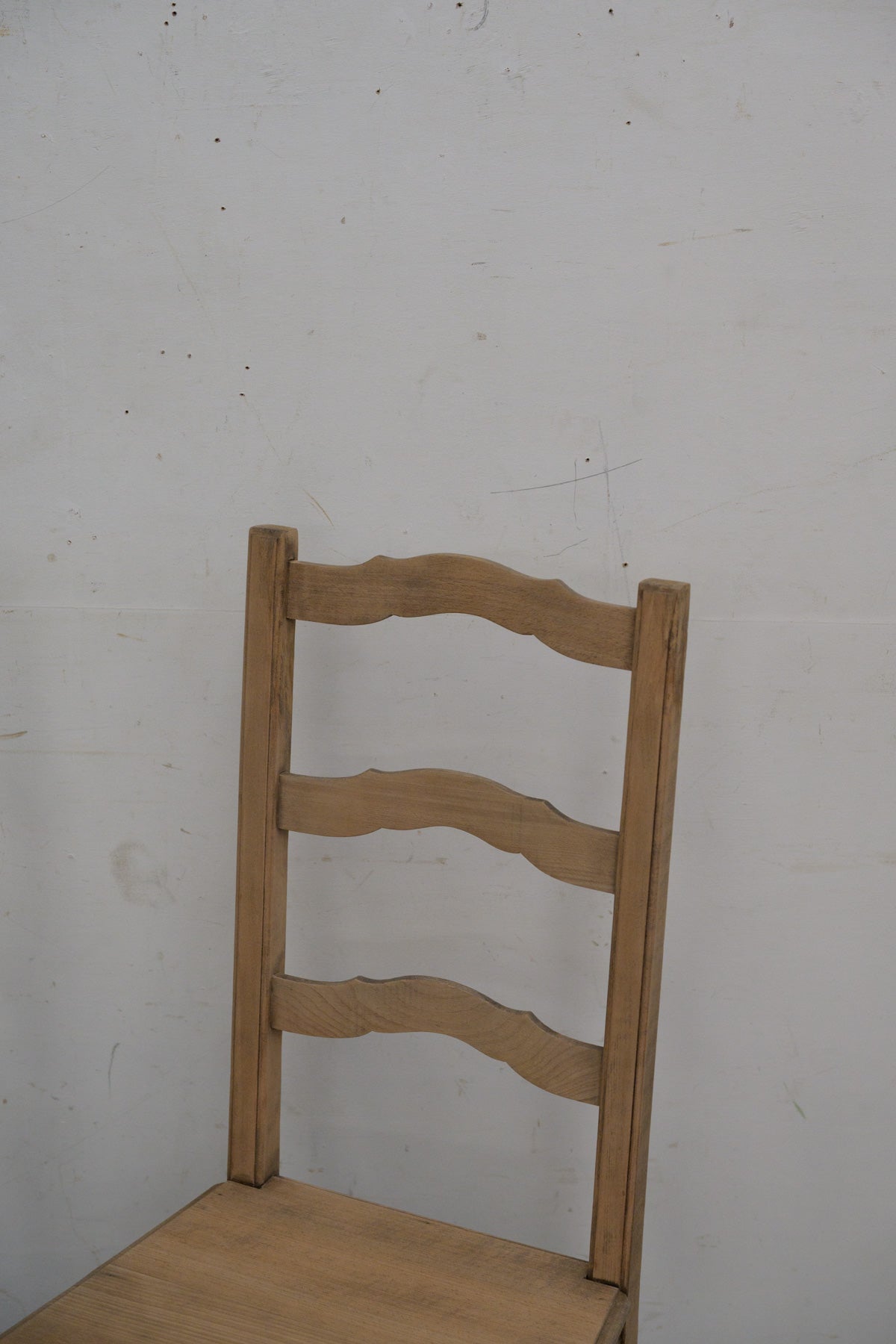 背もたれの高い、チャーチチェアのようなたたずまいの椅子です。状態も良く、しっかり実用できます。