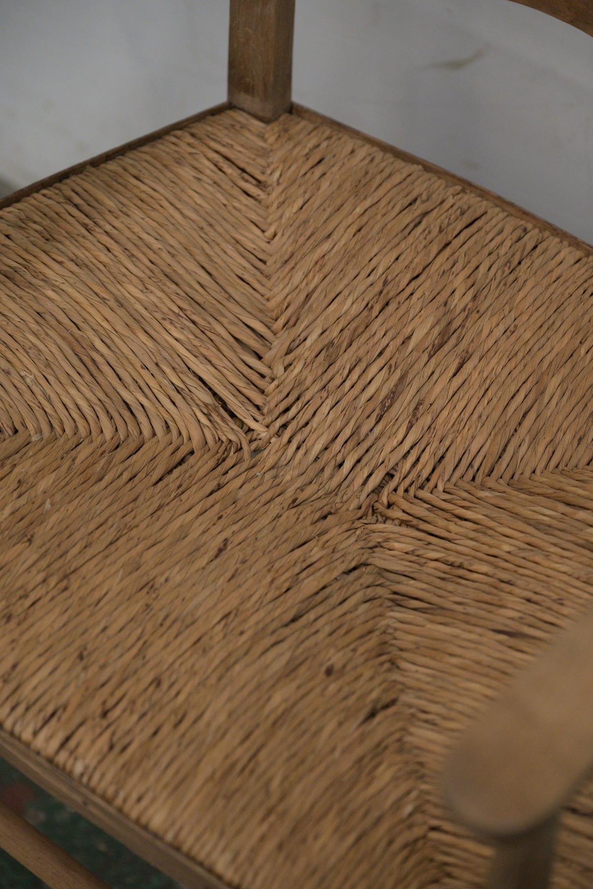 波状に削り出された背板とラッシュ編みの座面が印象的な、英国らしい佇まいのチェアです。このようなシンプルで実用的な家具は、19世紀末から20世紀初頭のアーツ・アンド・クラフツ運動の中で再評価され、多くの工房や地方の家具作りに影響を与えました。