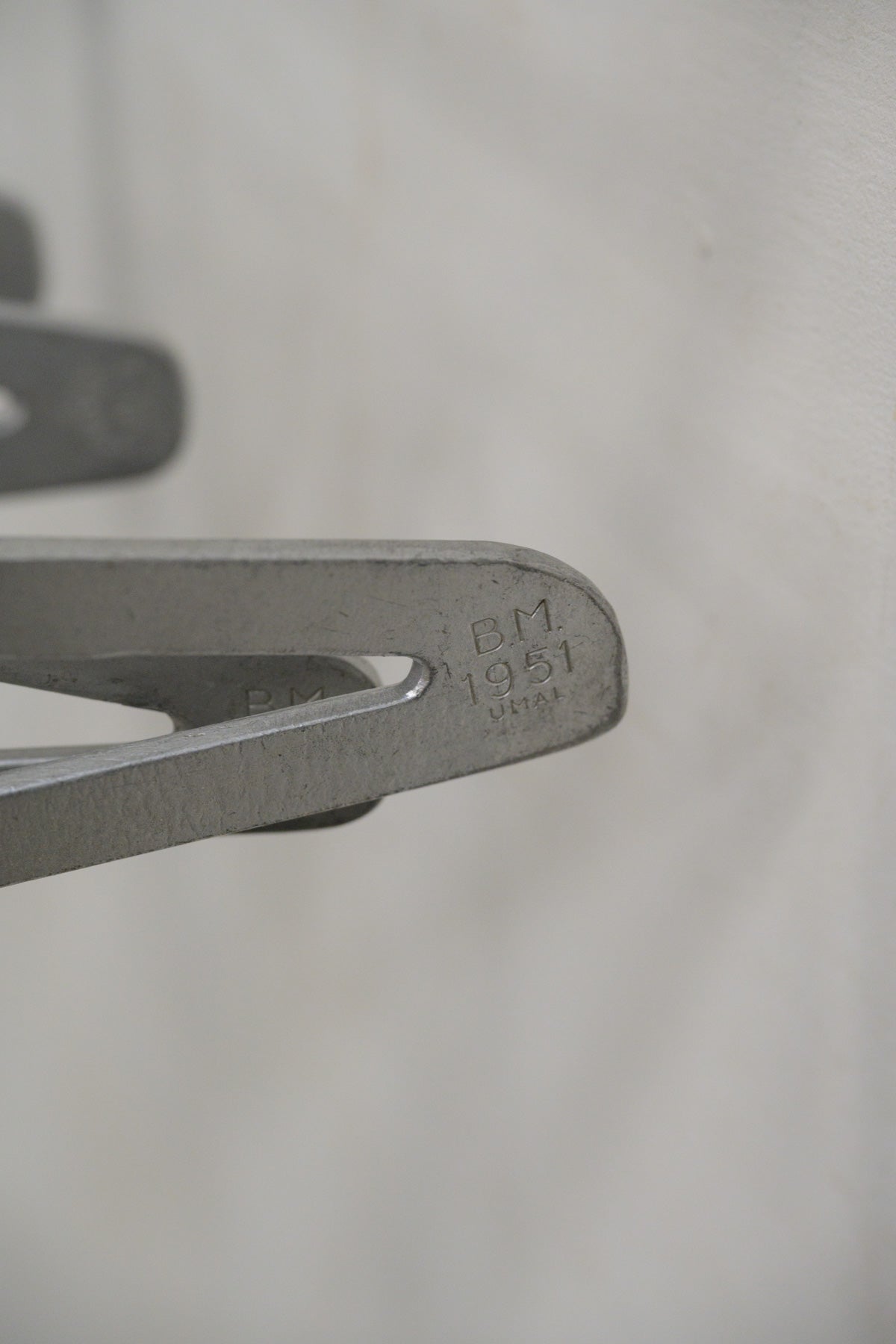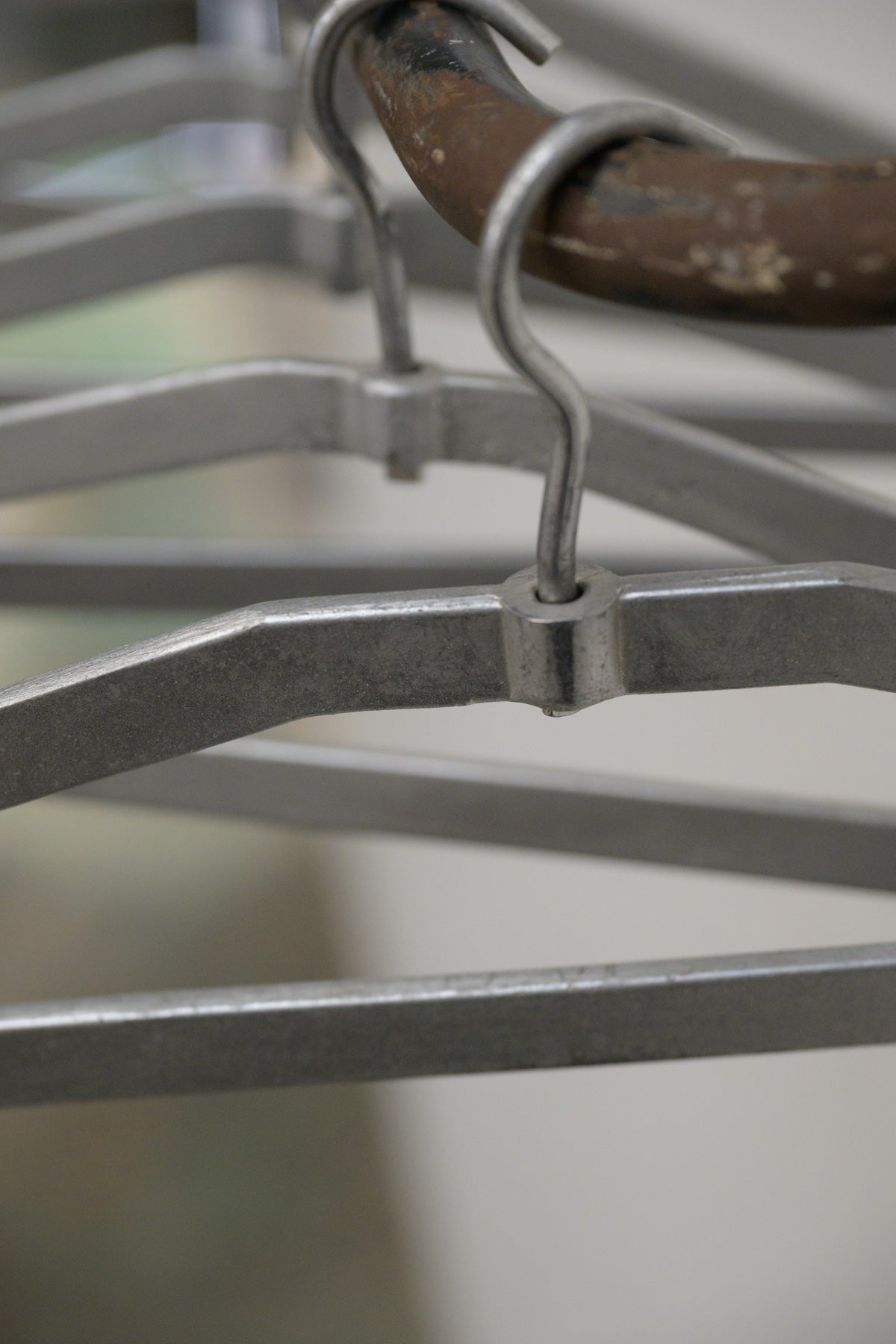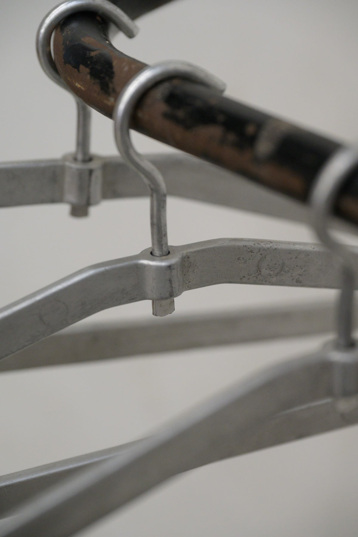 ミリタリーや公的機関で使用されていたと思われる、1950年代の無機質なアルミ製。年代を記した刻印もありシンプルで質感の良いハンガーです。今回20点入荷しております。数がご入用の際は、この商品についてお問い合わせよりお問い合わせください。