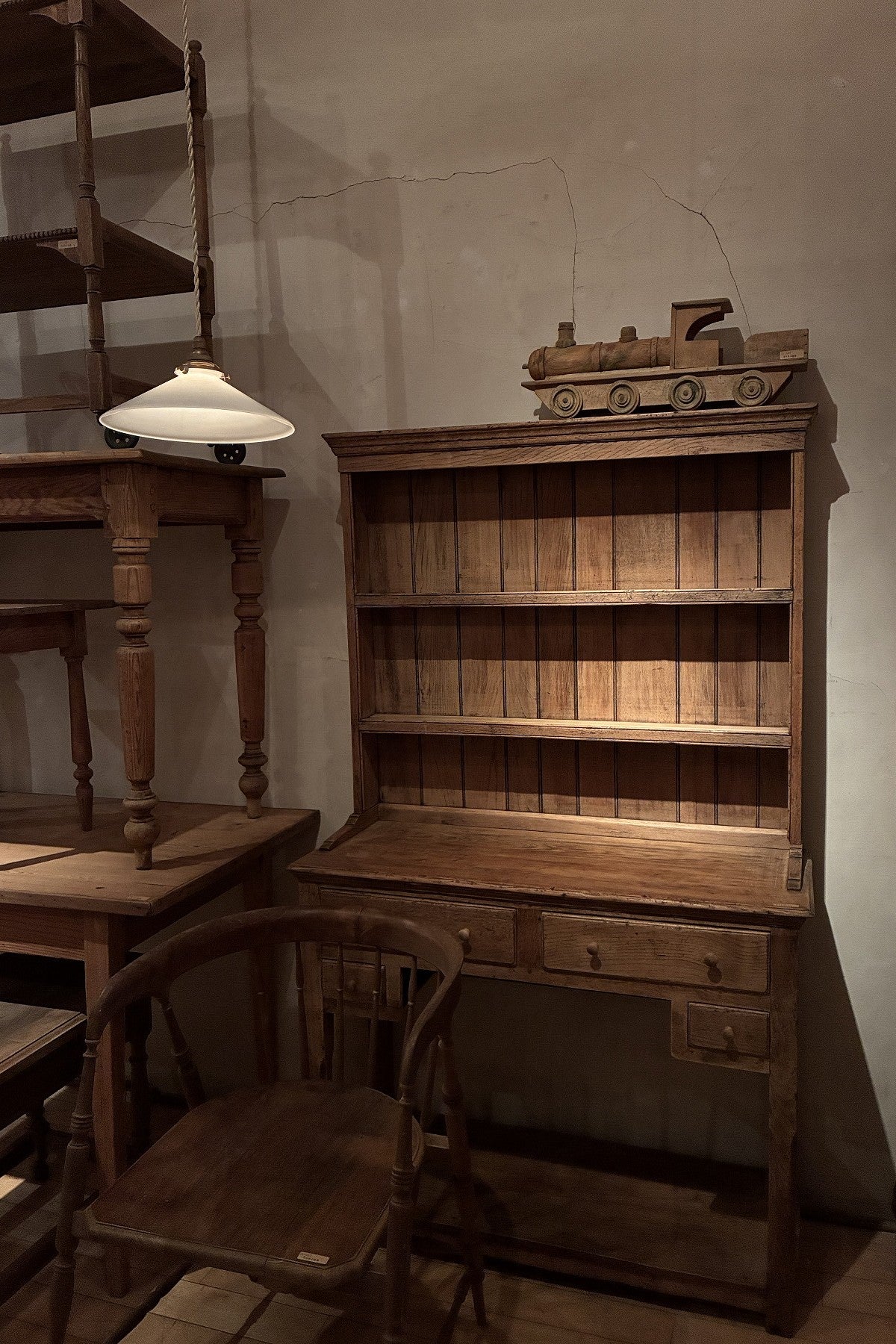 子供向けのおもちゃだと思われますが、素朴な質感と今はないクラシックなデザインが魅力のオブジェです。サイズも大きめなので、ディスプレイ用としても力があります。