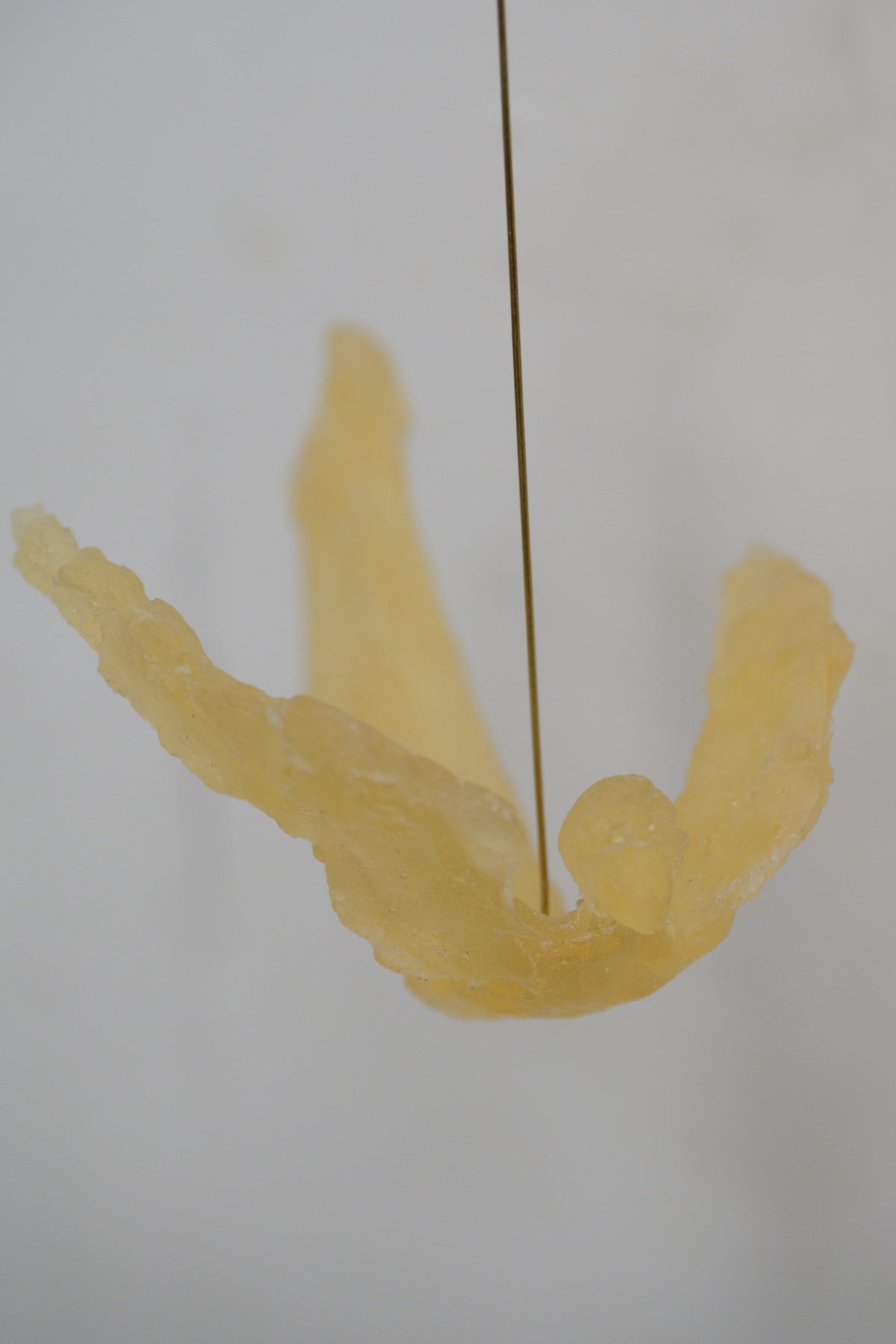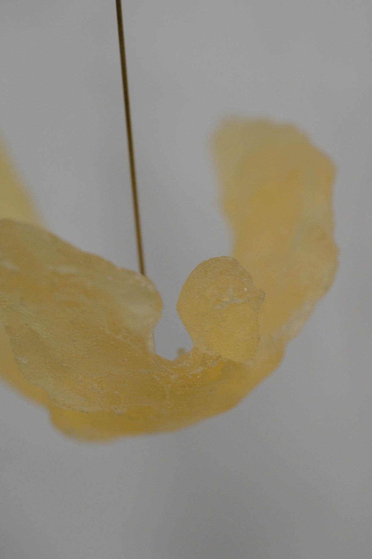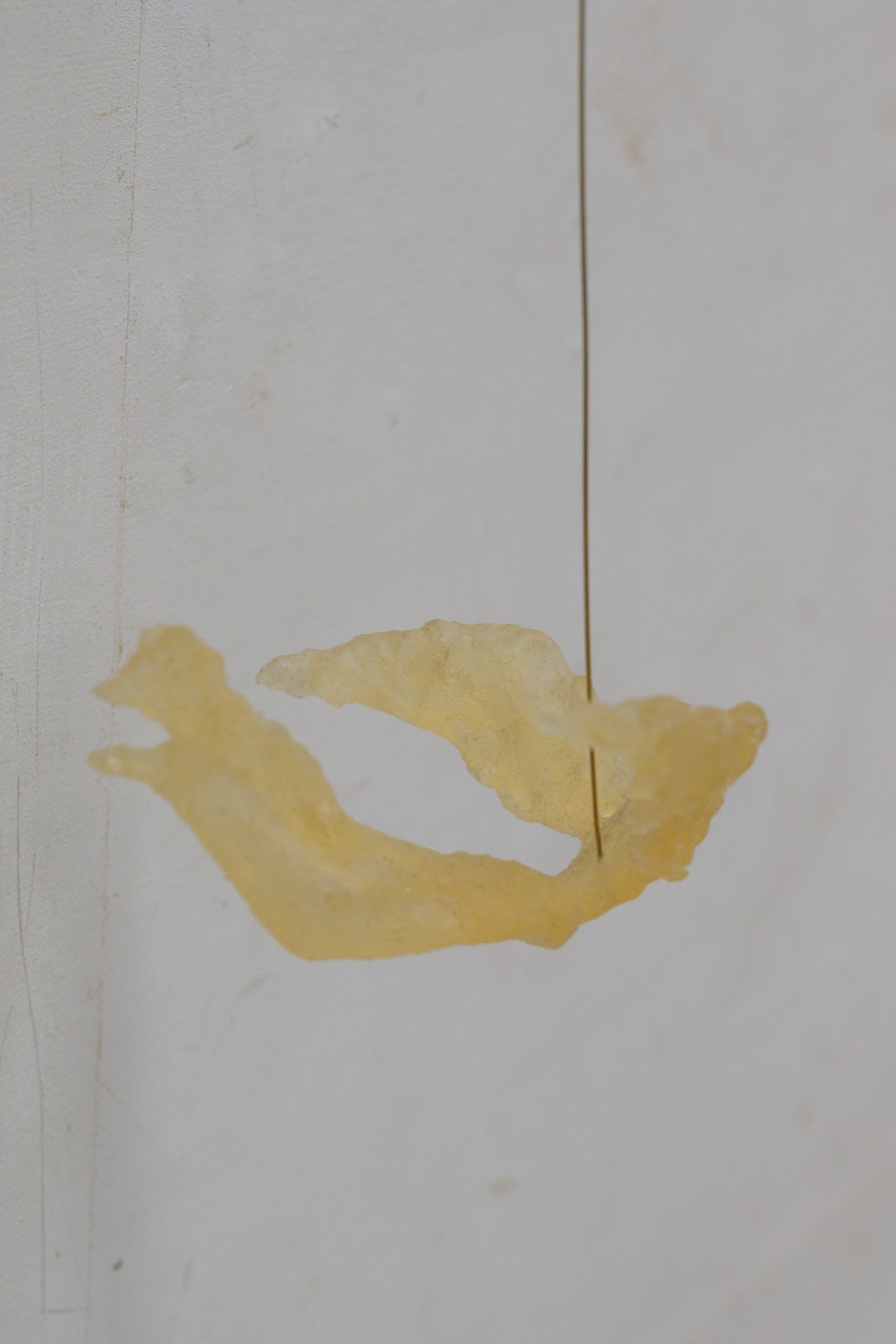 材質は合成樹脂だと思われます。古いものではありませんが、半透明の樹脂の質感も良く存在感のあるオブジェです。真鍮のパーツは当方で製作しています。