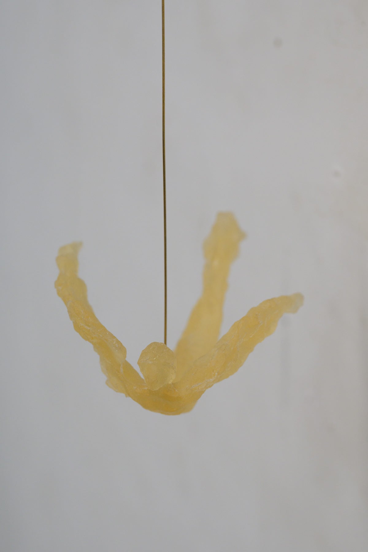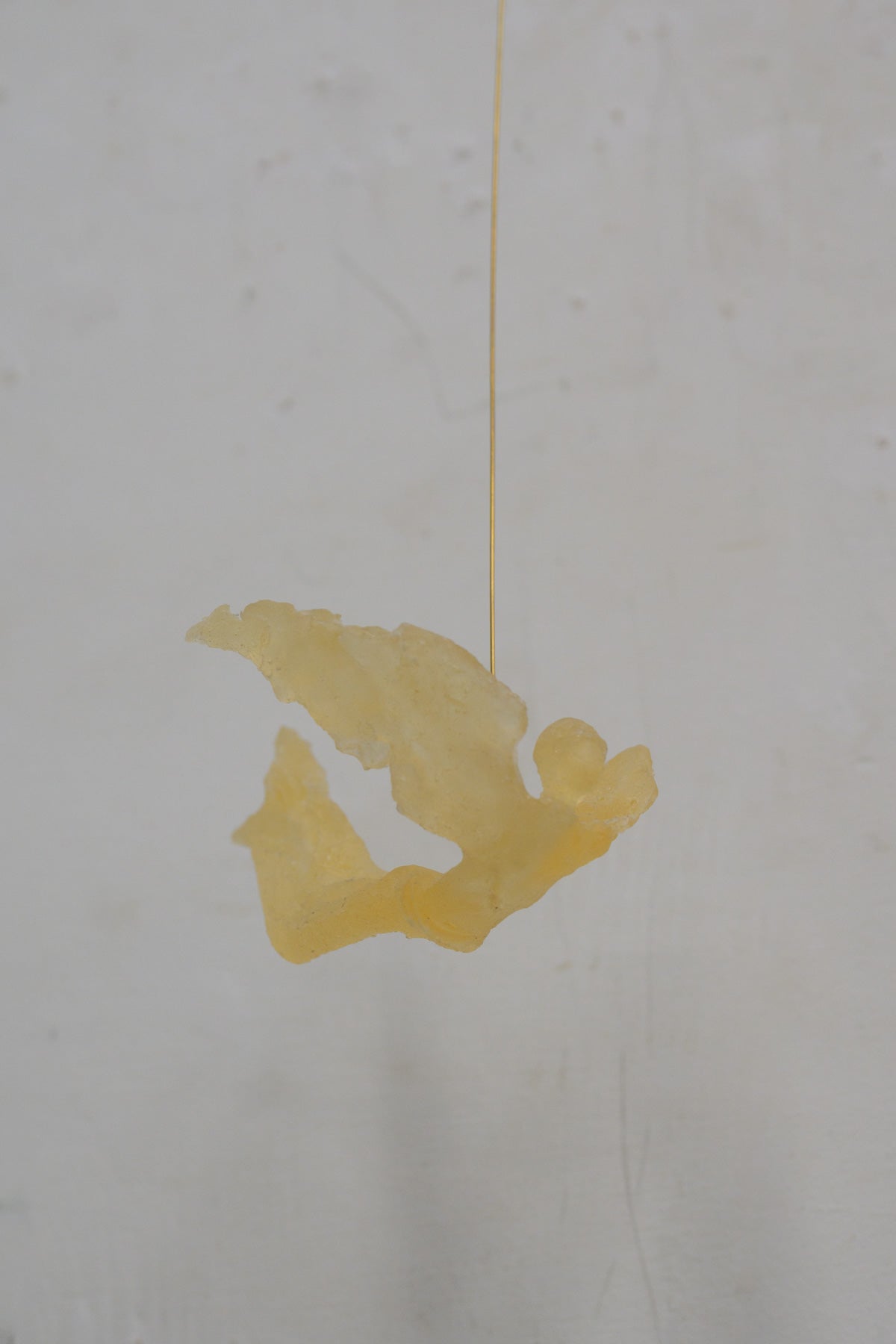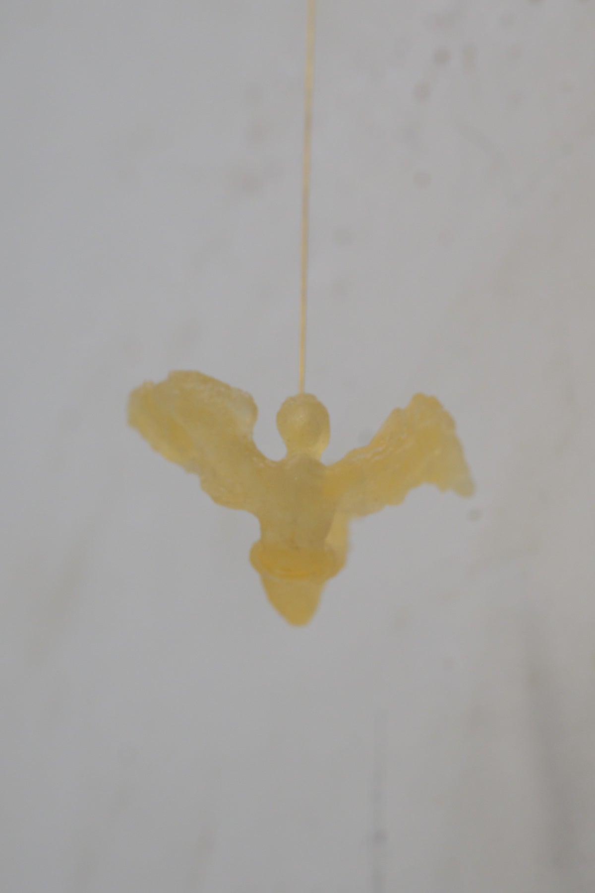 材質は合成樹脂だと思われます。古いものではありませんが、半透明の樹脂の質感も良く存在感のあるオブジェです。真鍮のパーツは当方で製作しています。