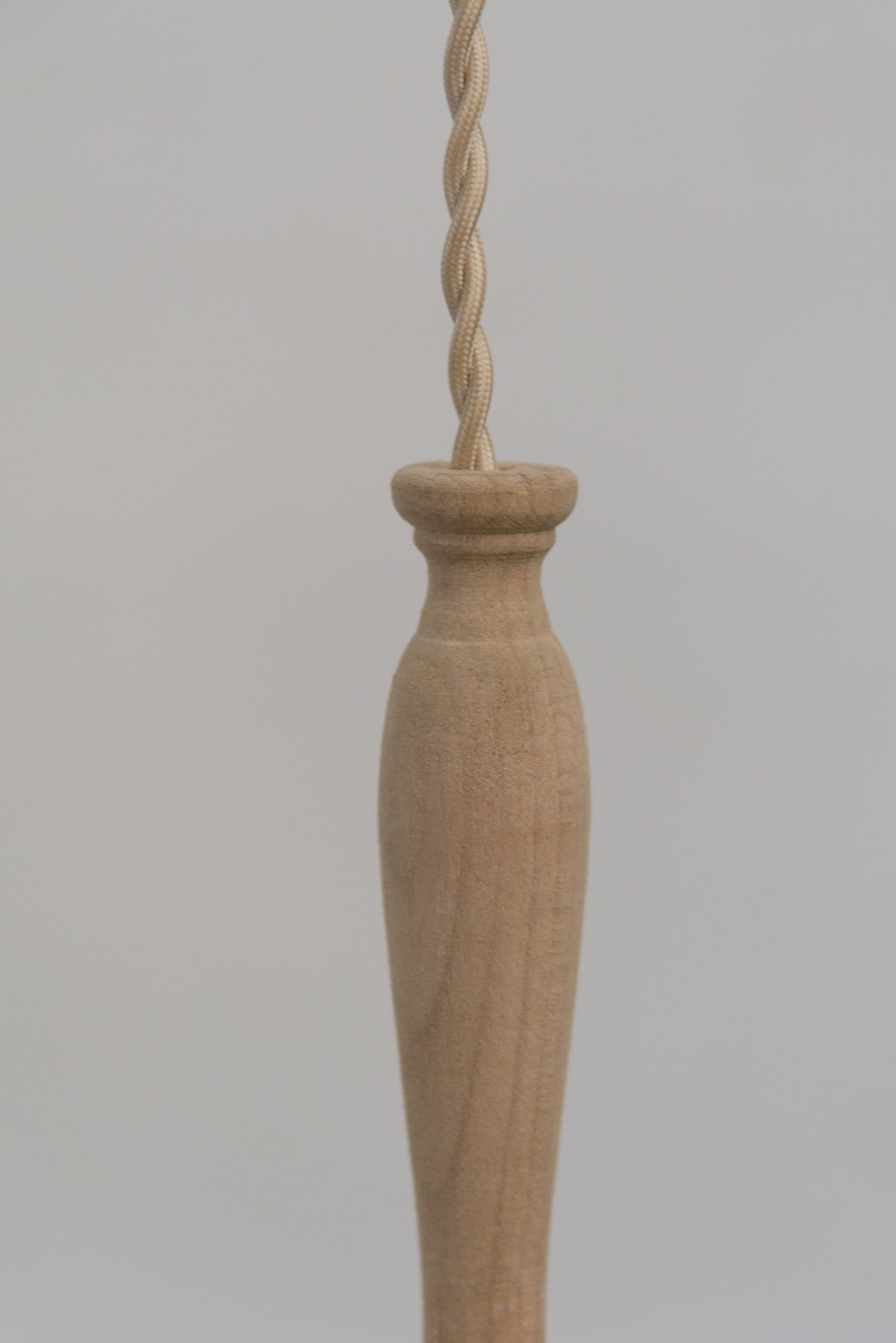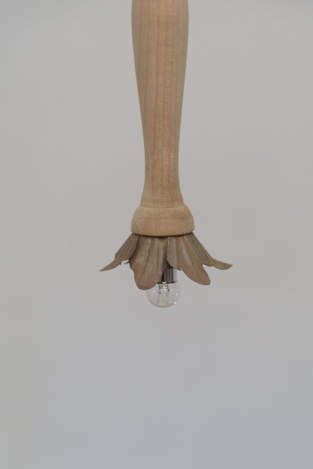 シャンデリアのパーツを加工した真鍮製の小さなシェード。木製部分は古いパーツを当方にて取り付けています。電気部品は日本の新しいものに交換しています。口金はB15Dで引っ掛けシーリング仕様。コードの長さは約2mです。