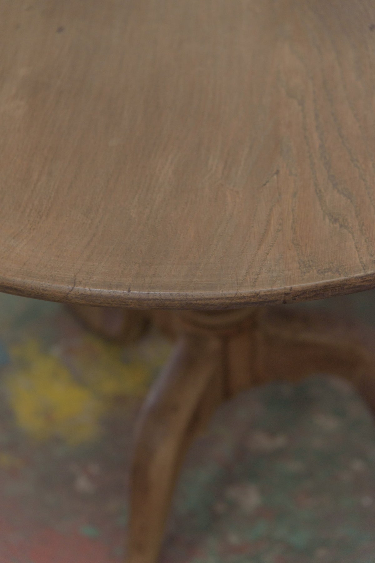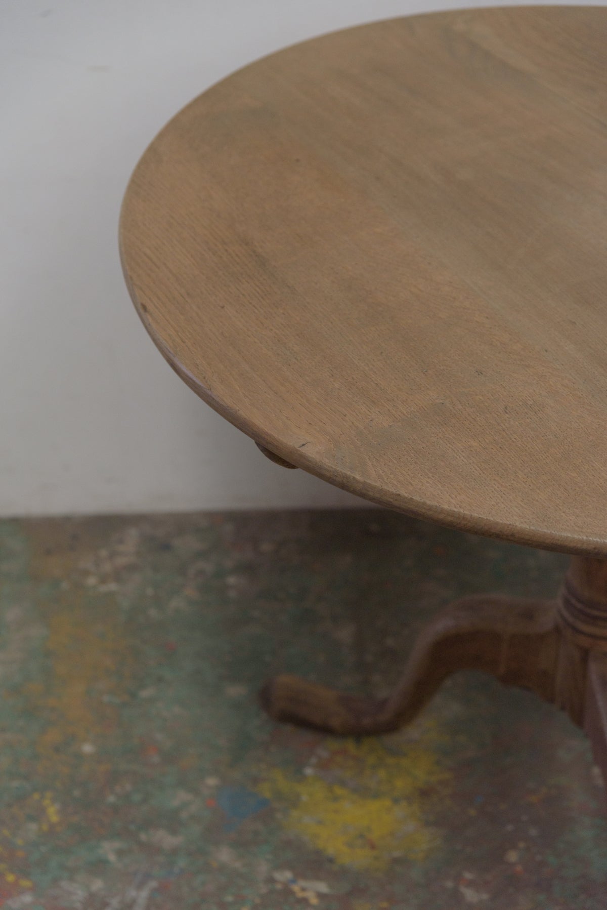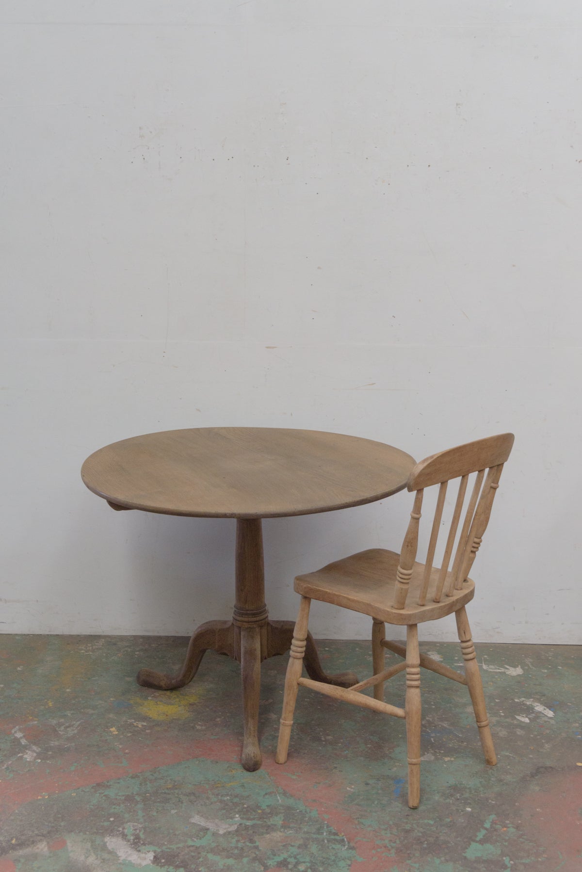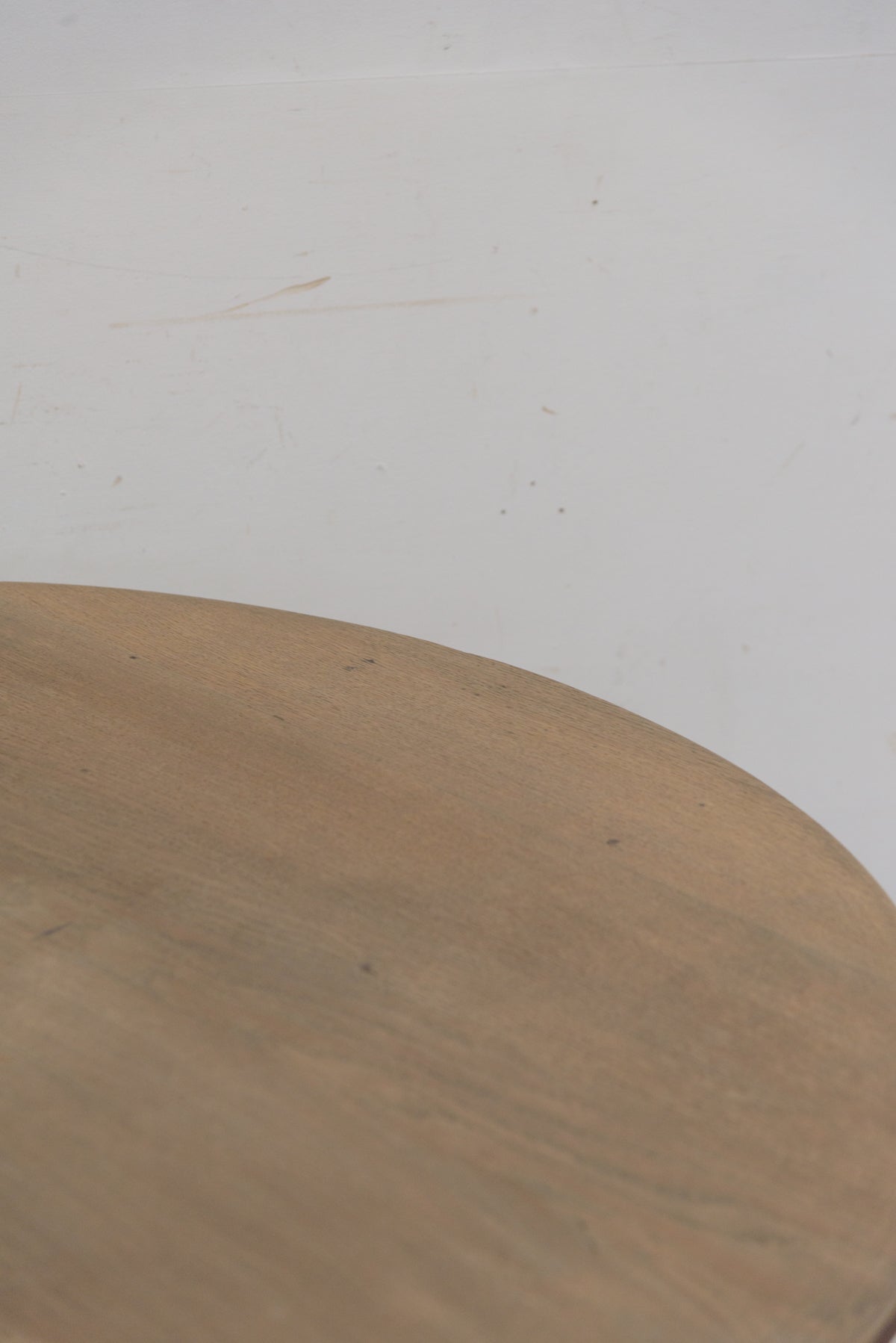 1900年代前半の家具で、材質はオーク。天板の裏にある真鍮のスイッチを押すと天板が立ち上がります。立ち上げた状態も絵になるので、飲食店の補助テーブルとしても。天板の状態も良く、サイズも使いやすい万能なテーブルです。
