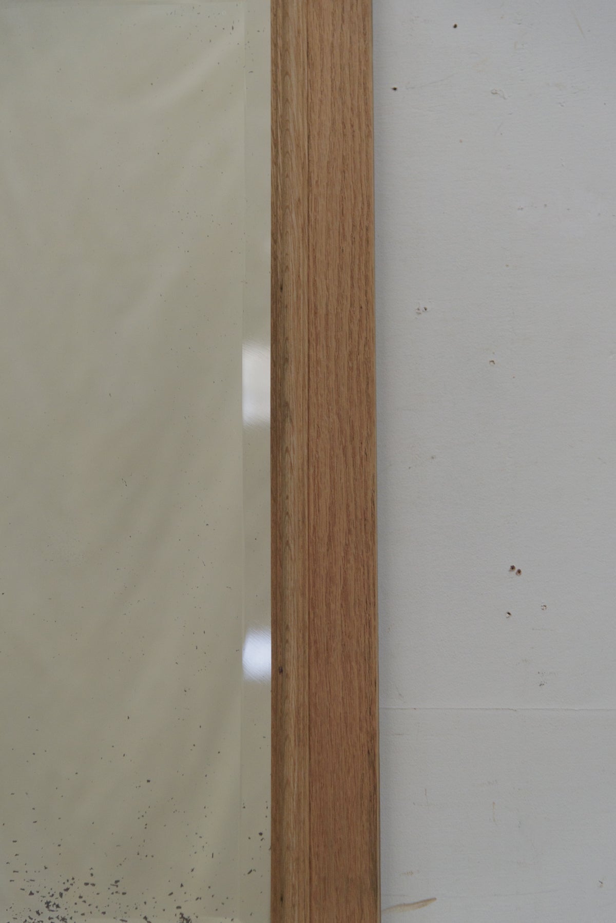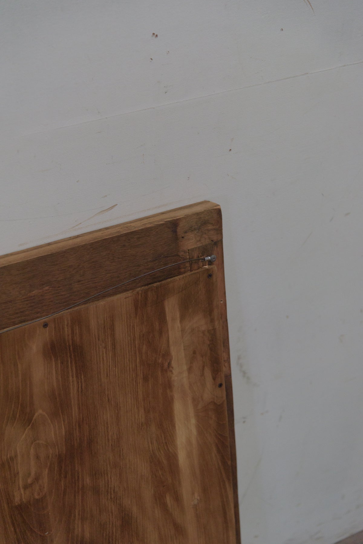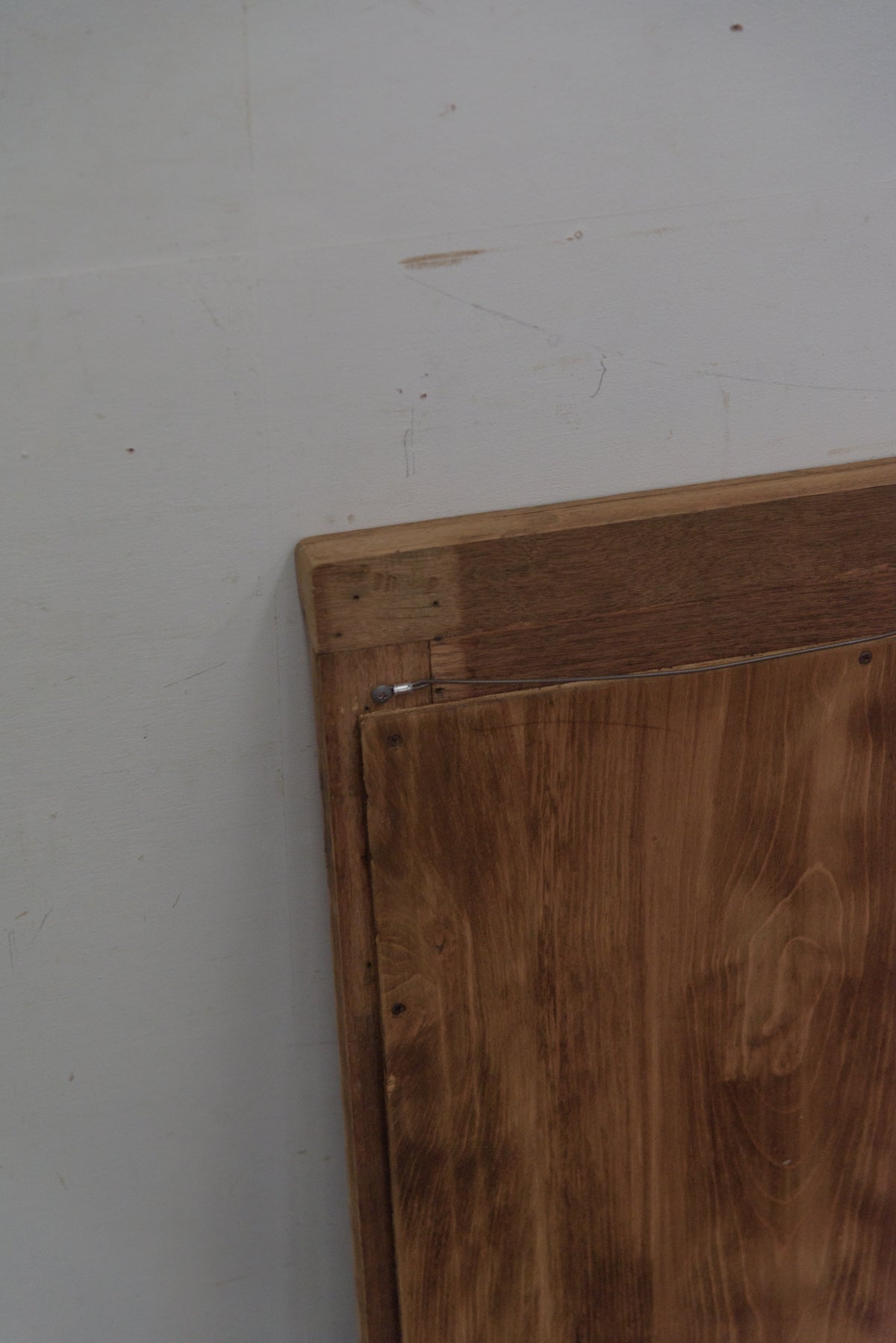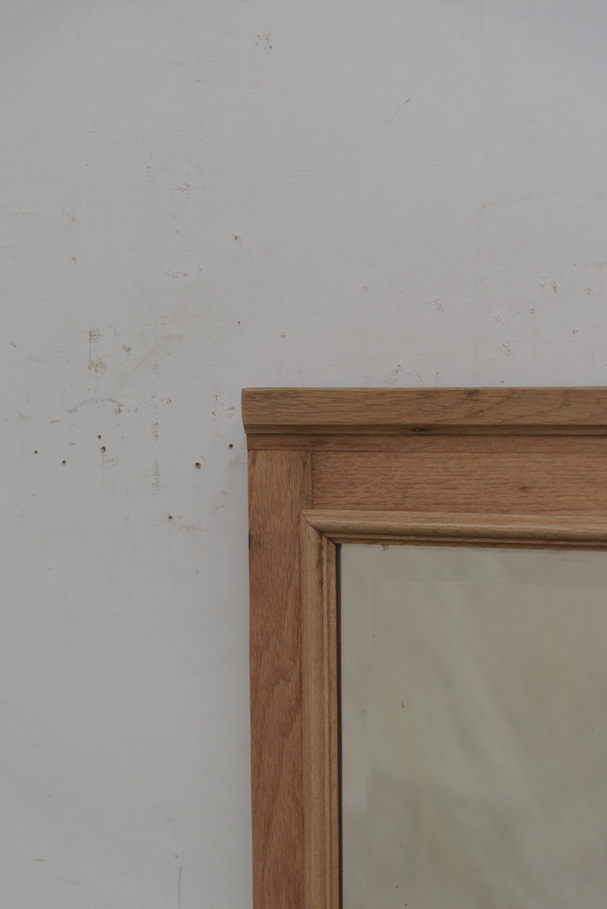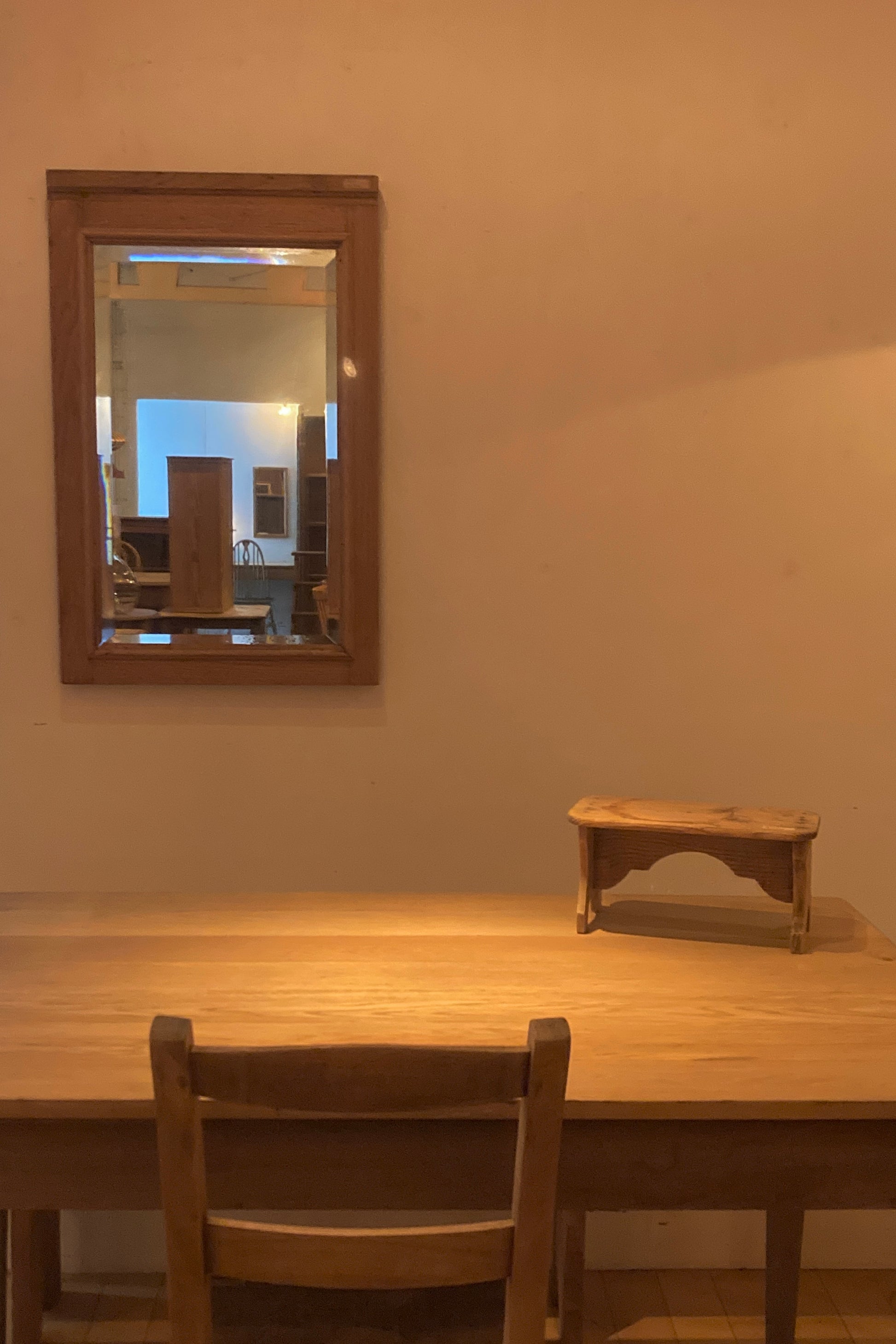 古い鏡ですのでシミや小傷があります。鏡にカットが入っており、木部にも繊細な装飾があるアンティークならではの雰囲気のあるミラーです。