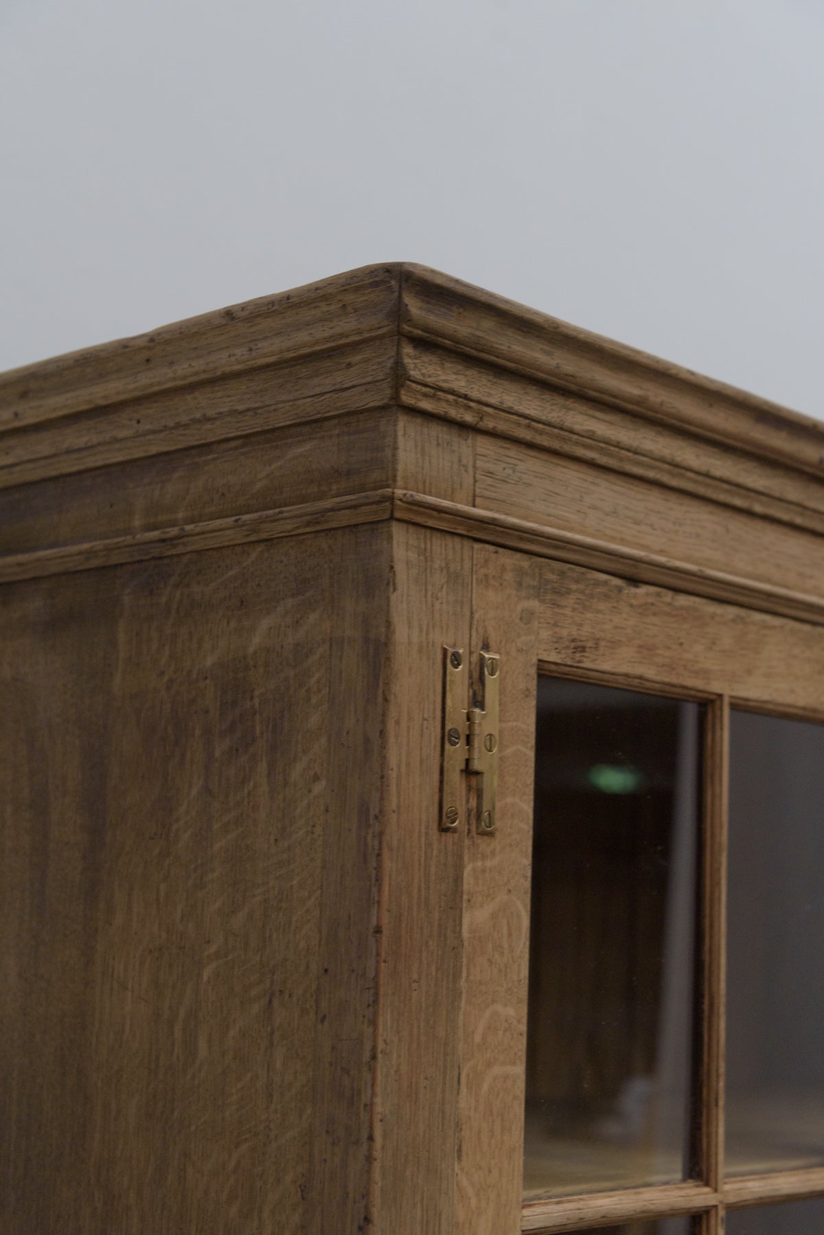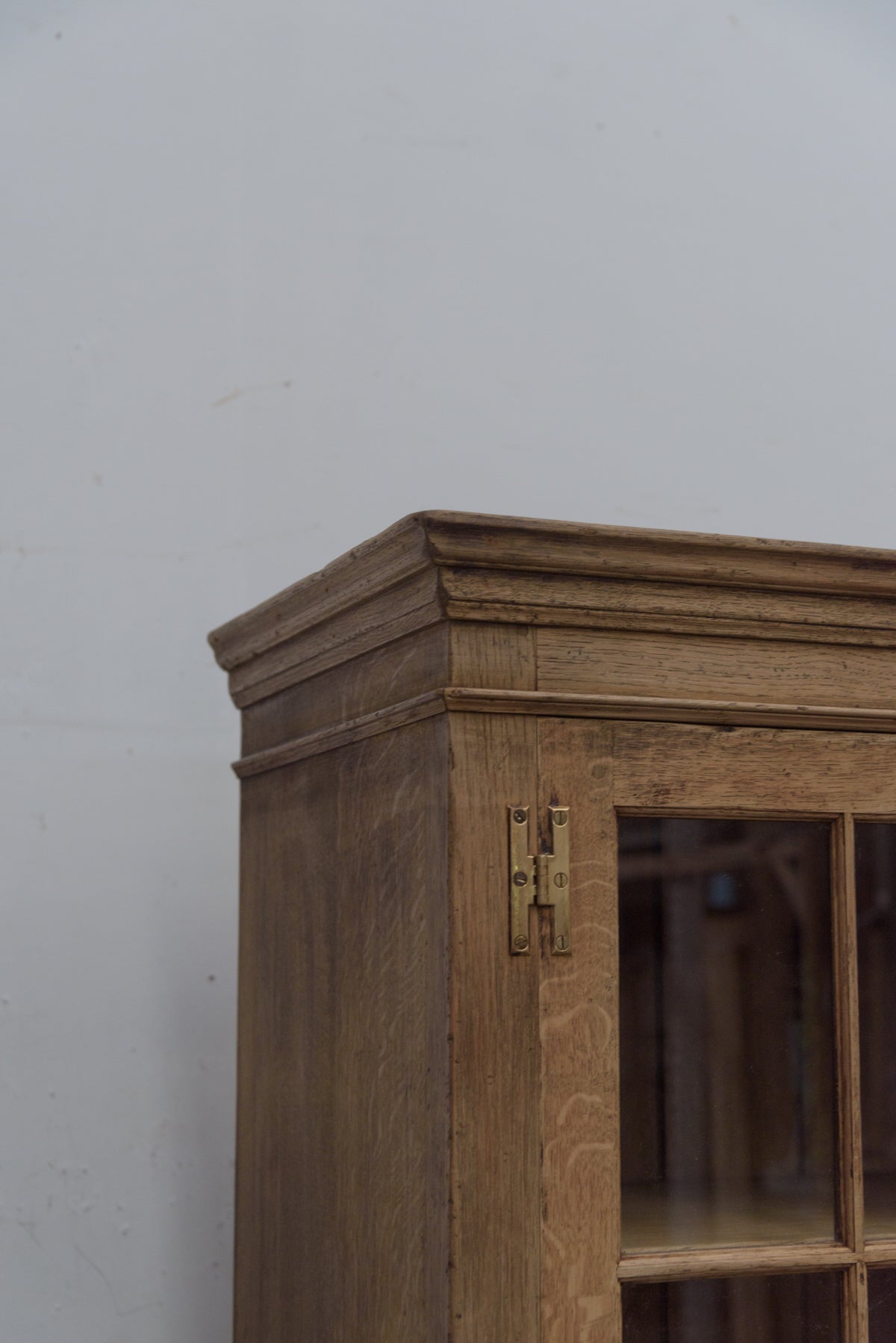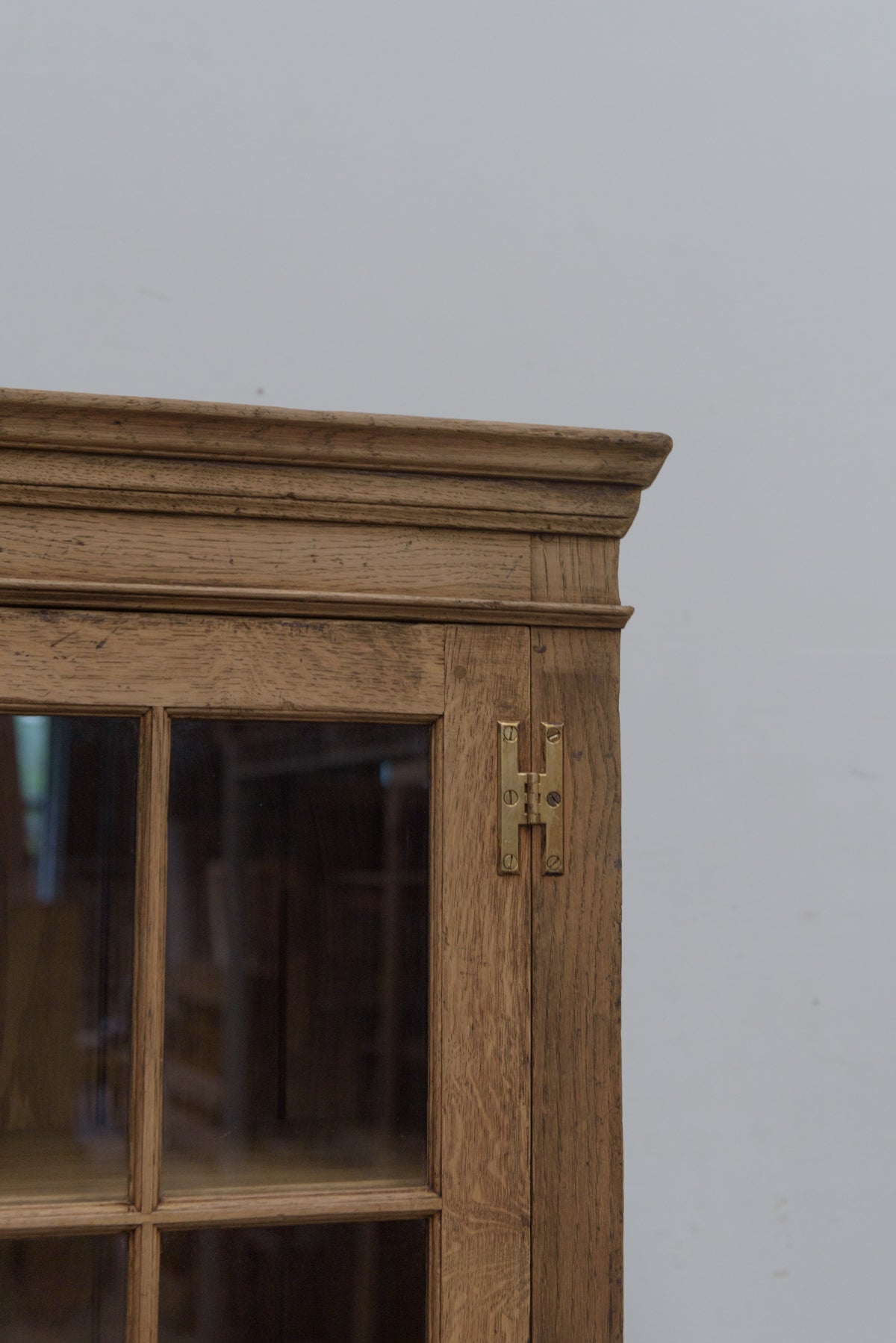 イギリスのアンティークキャビネットです。厚みのあるオーク材を使用したイギリスらしいしっかりした作りの良質なアンティーク家具。シンプルな格子のガラス扉の家具はアンティークでは意外とめずらしく、状態も非常に良いのでおすすめです。
