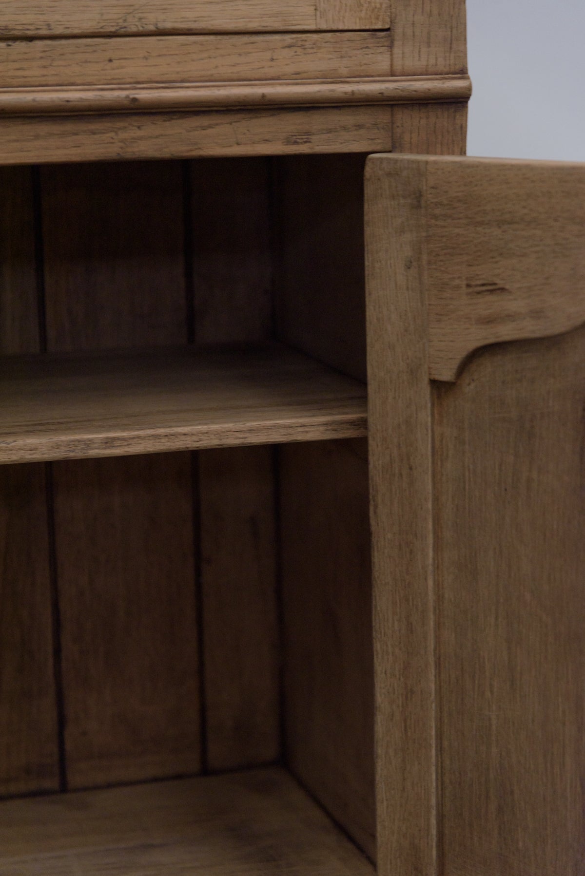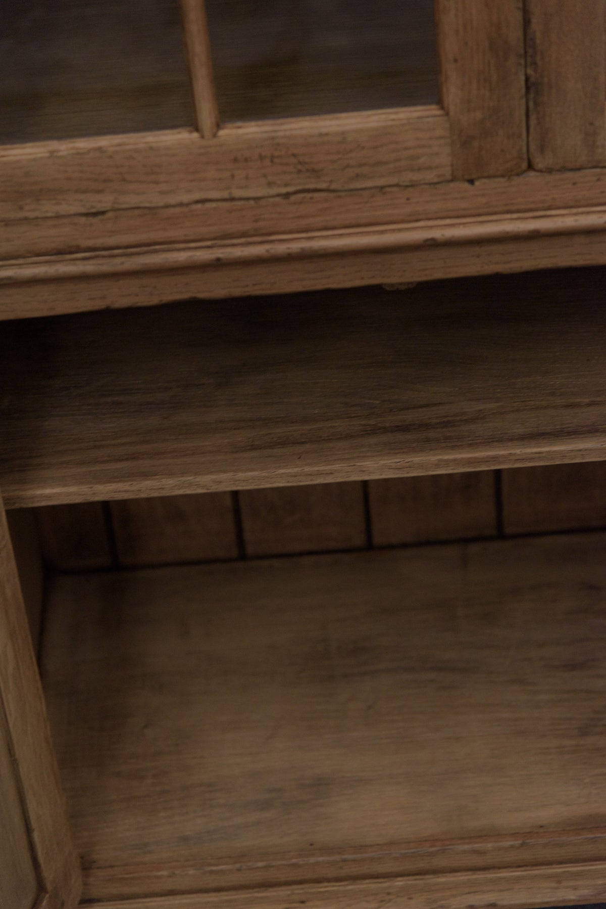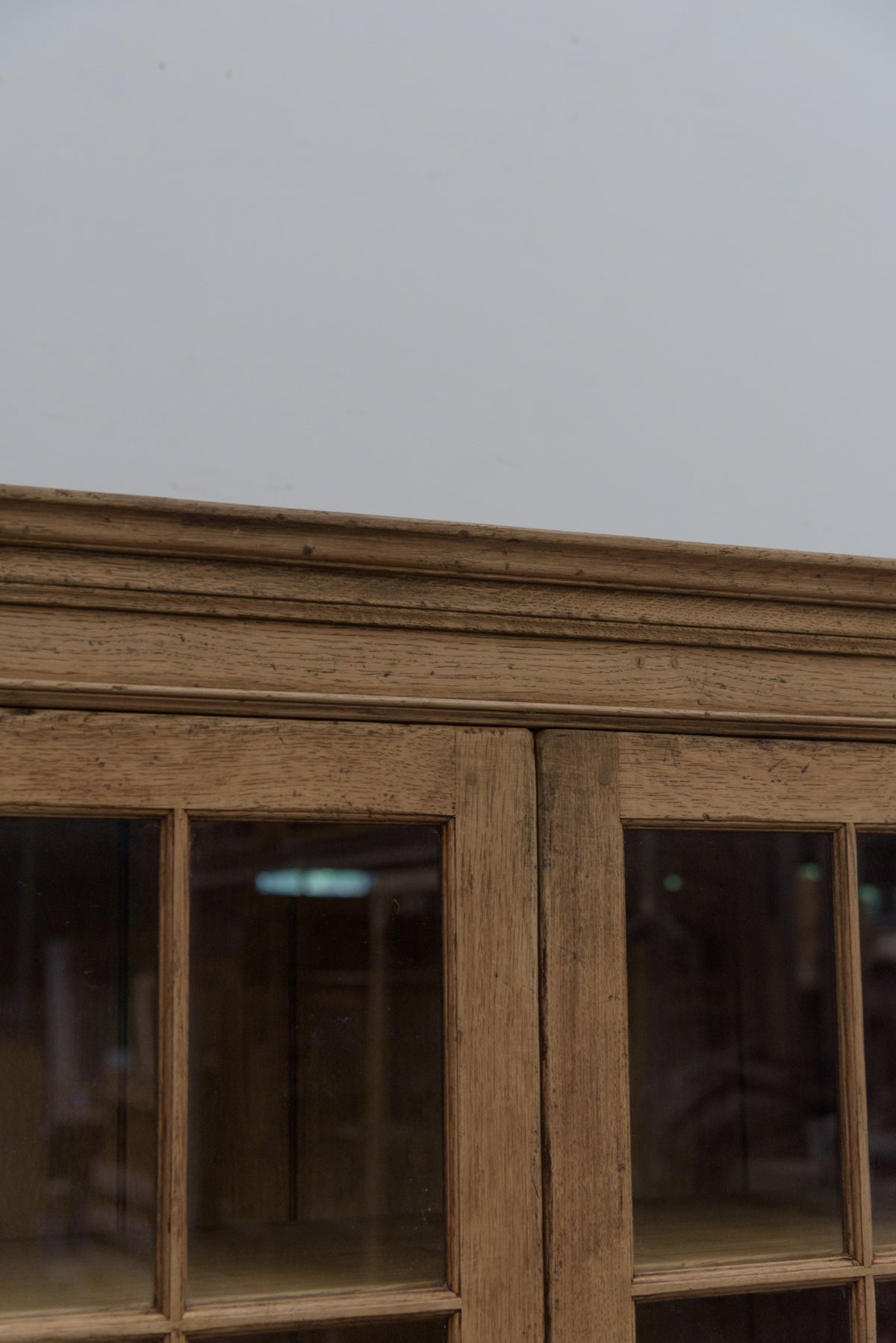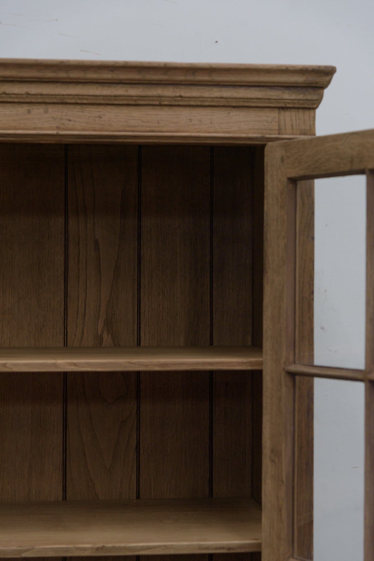 イギリスのアンティークキャビネットです。厚みのあるオーク材を使用したイギリスらしいしっかりした作りの良質なアンティーク家具。シンプルな格子のガラス扉の家具はアンティークでは意外とめずらしく、状態も非常に良いのでおすすめです。