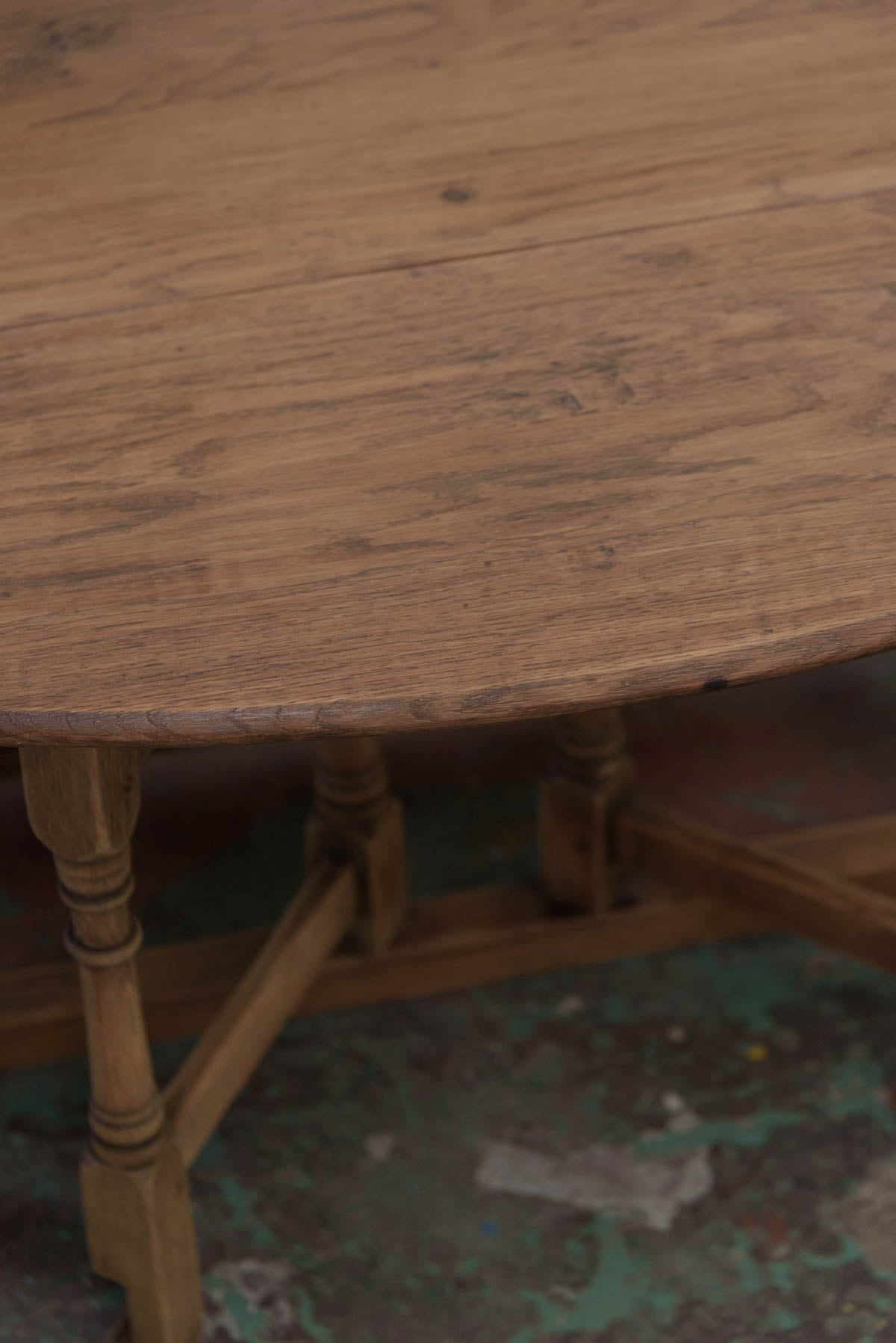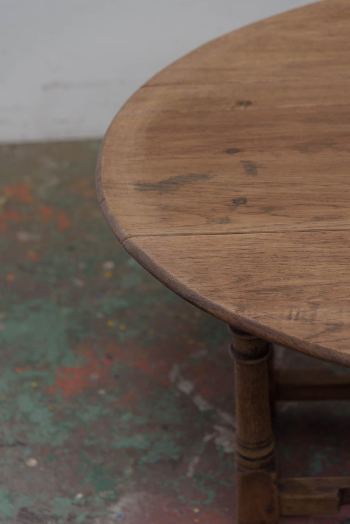 比較的めずらしいコーヒーテーブルタイプです。材質はオーク。天板の両側を折りたたむと奥行きが360㎜、片方のみを折りたたむと610㎜。天板の状態も良く、少人数から大人数まで幅広くお使いいただけます。
