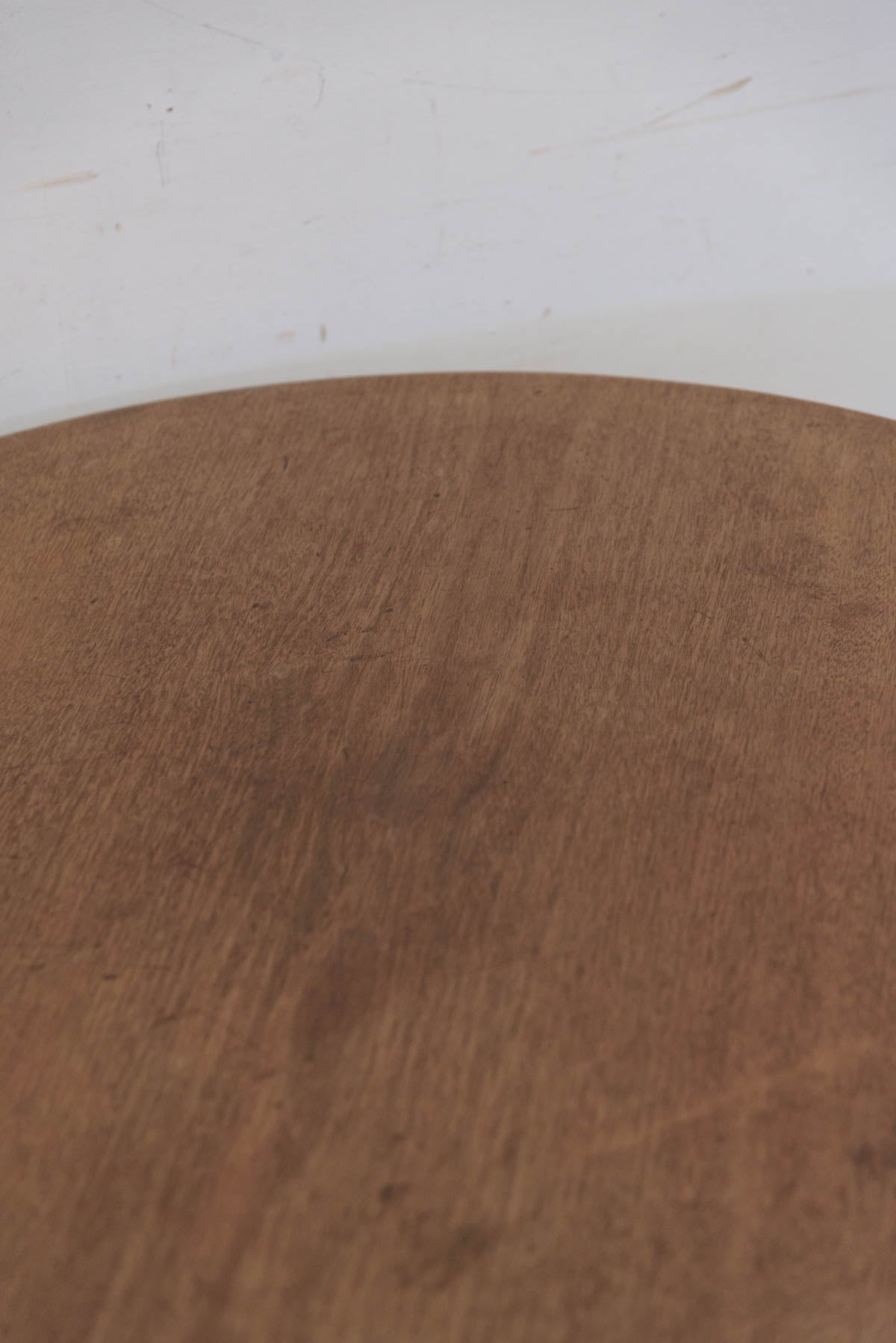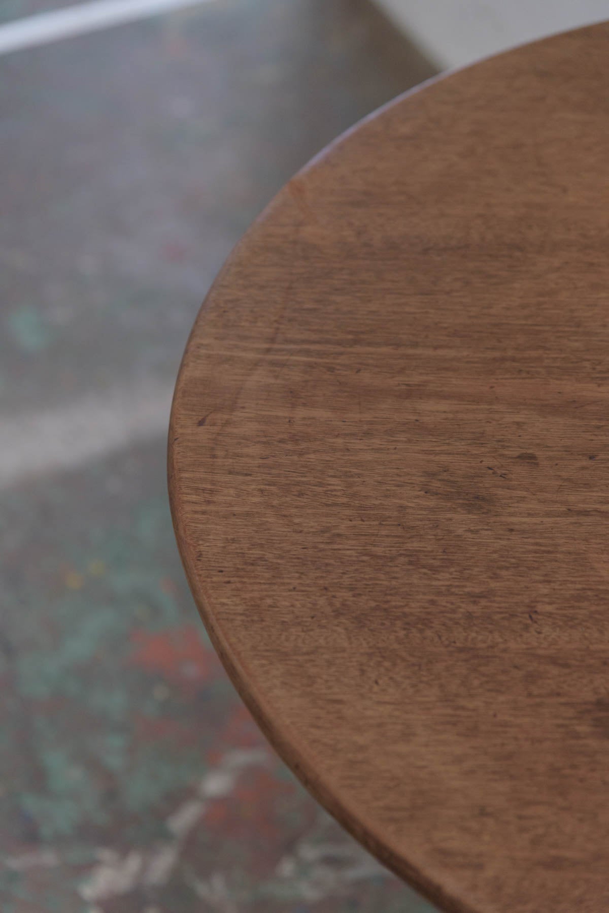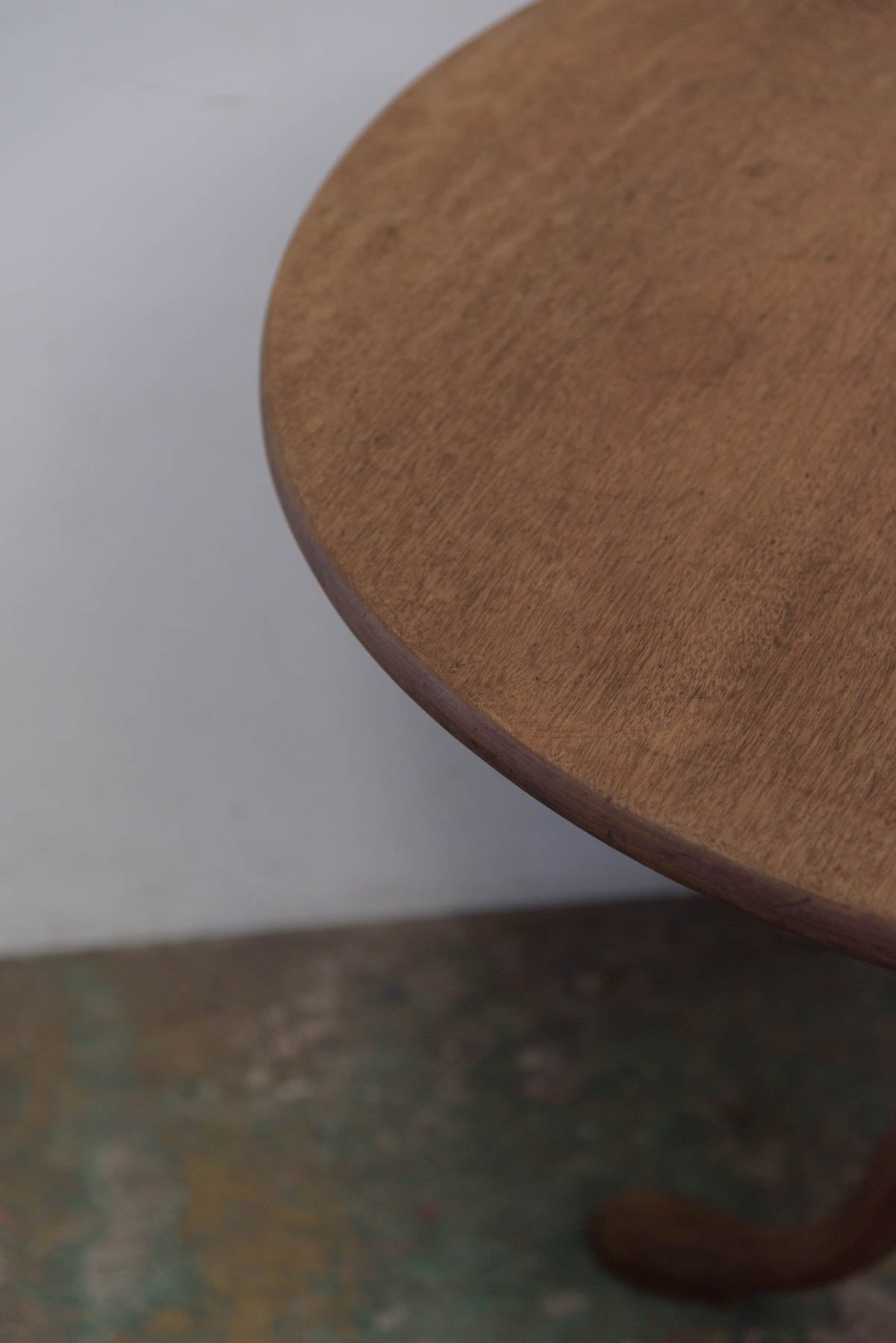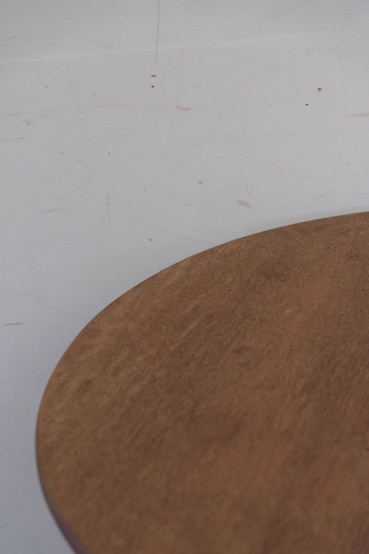 1900年代前半の家具です。真鍮のボタンでロックを外すと天板が立ち上がります。ヨーロッパではワインテーブルと呼ばれ、来客用としてサロンや居間で使用されていました。古い天板の質感が良いので立ち上げた状態でも絵になります。飲食店などの補助的なテーブルとしても。畳む必要のない場合は、ビスでの天板固定も承ります。