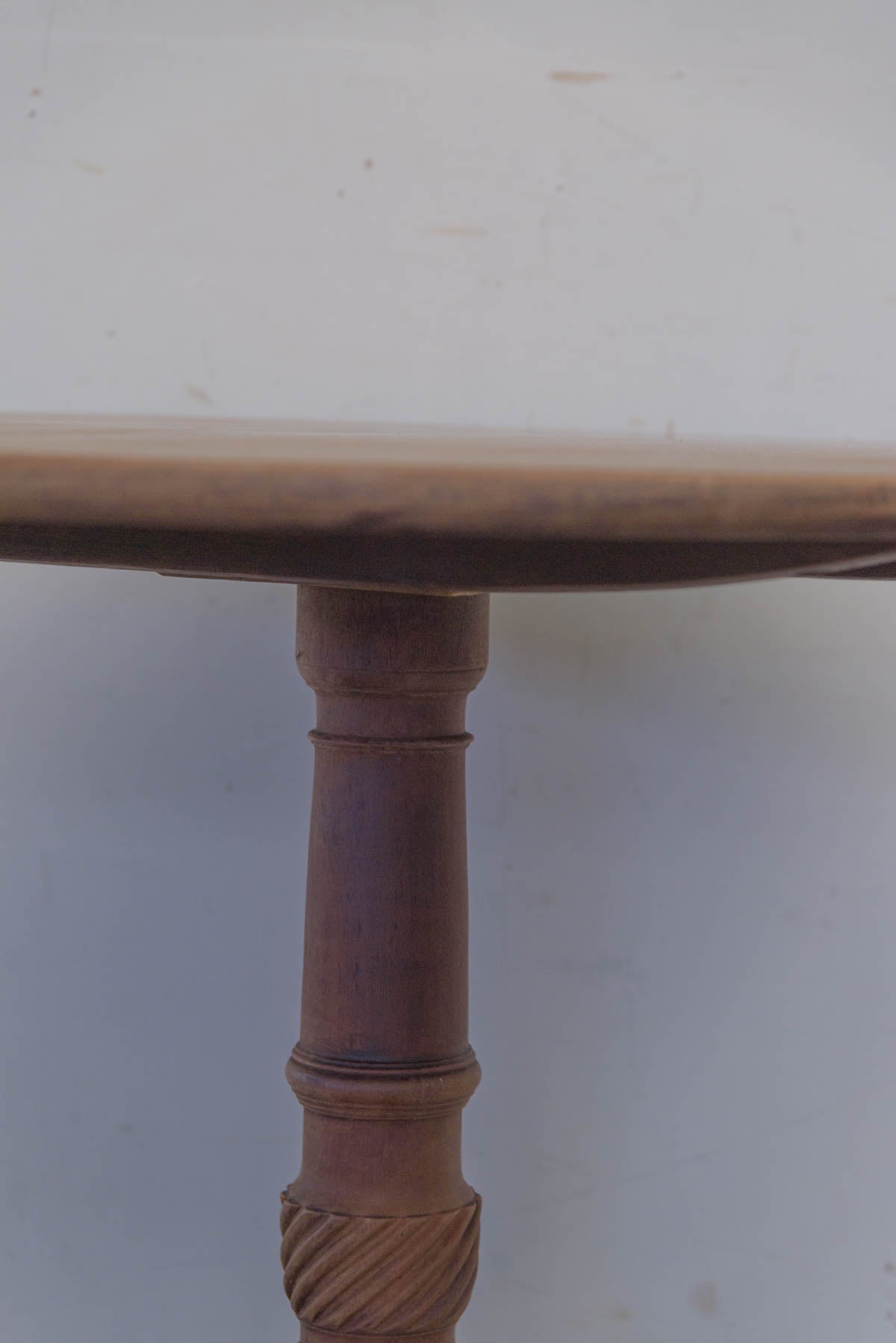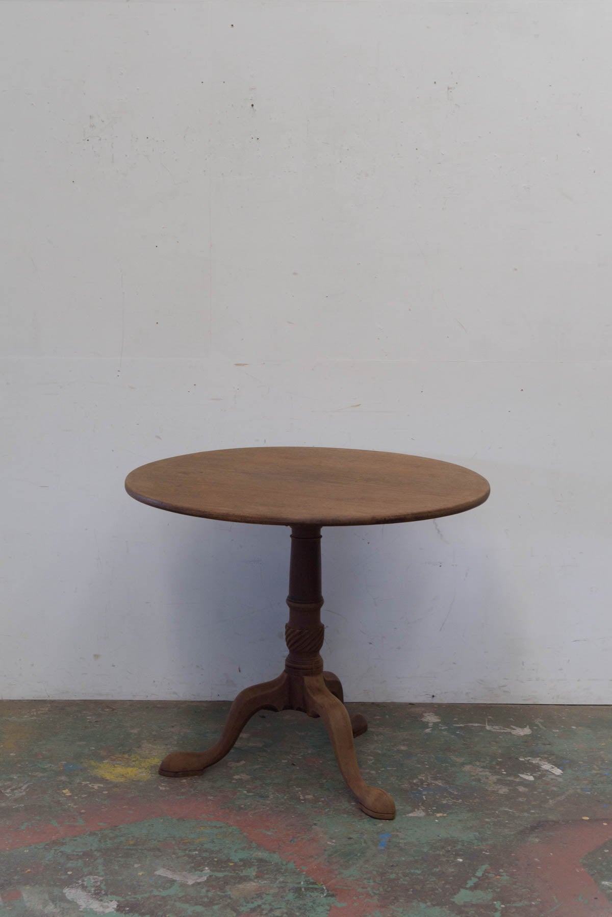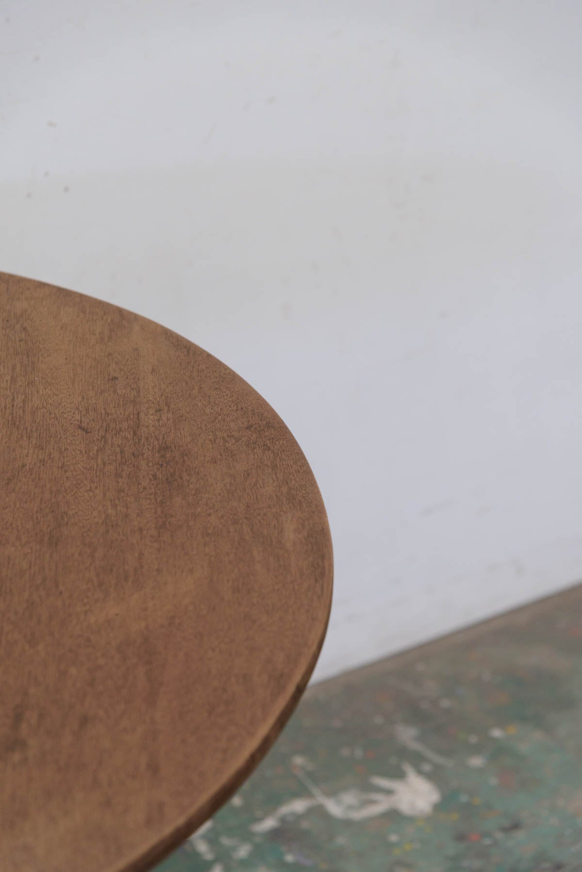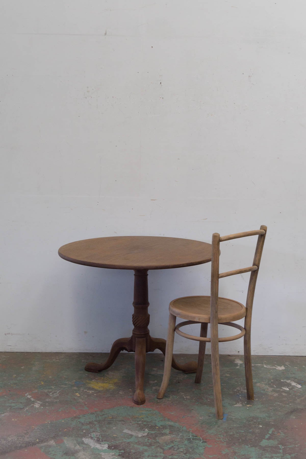 1900年代前半の家具です。真鍮のボタンでロックを外すと天板が立ち上がります。ヨーロッパではワインテーブルと呼ばれ、来客用としてサロンや居間で使用されていました。古い天板の質感が良いので立ち上げた状態でも絵になります。飲食店などの補助的なテーブルとしても。畳む必要のない場合は、ビスでの天板固定も承ります。