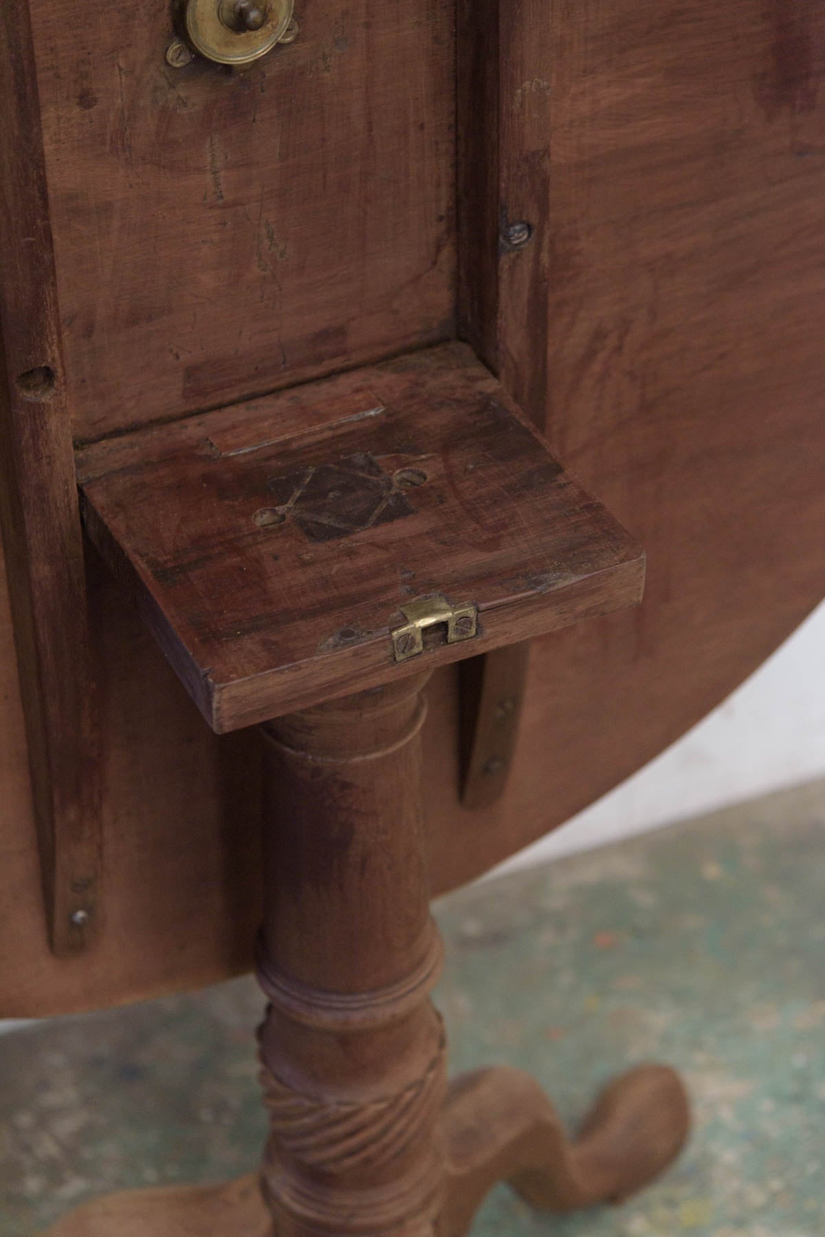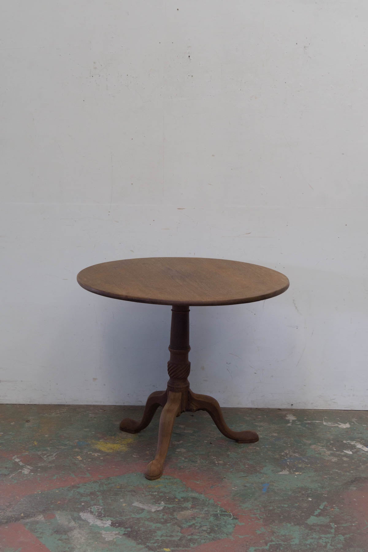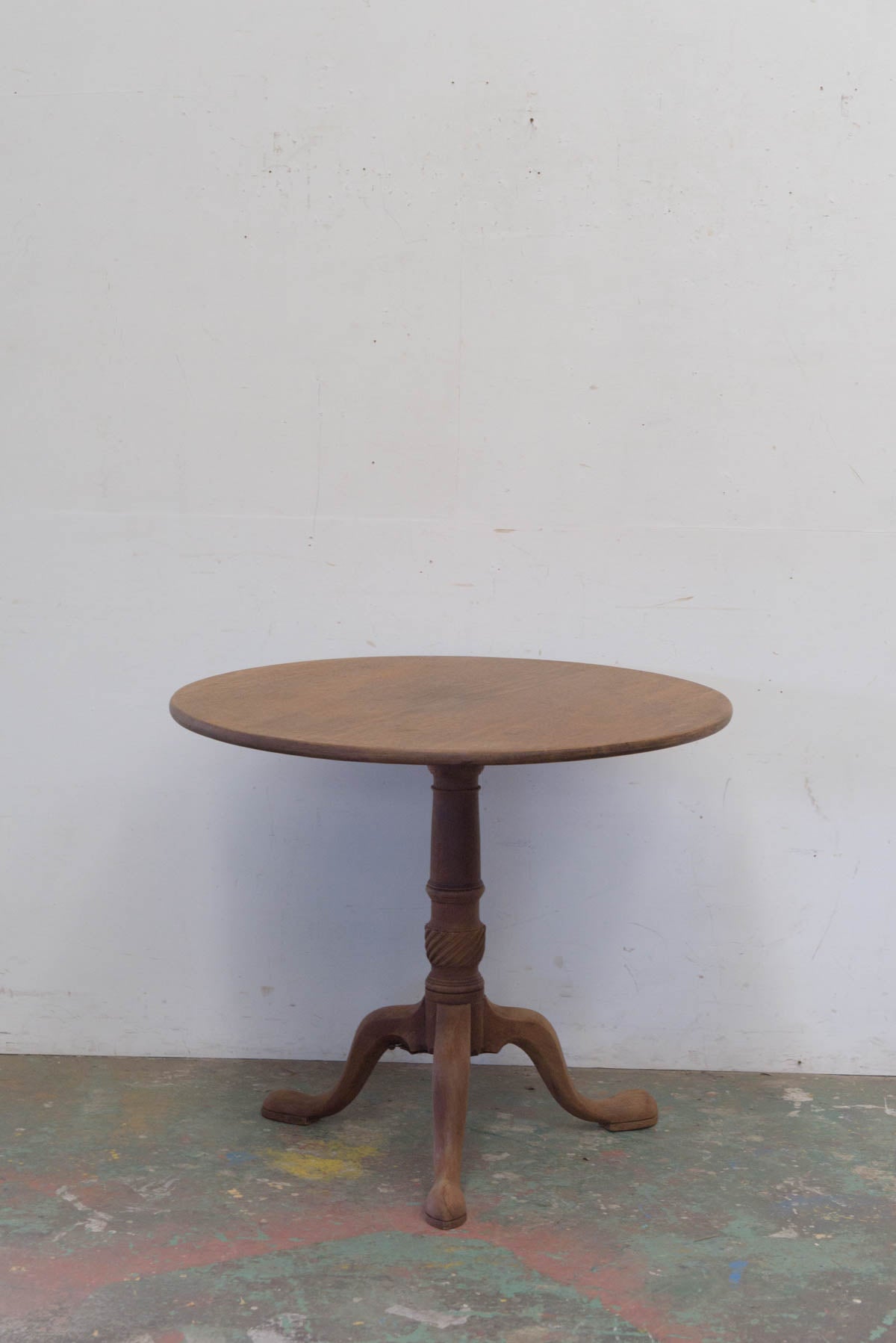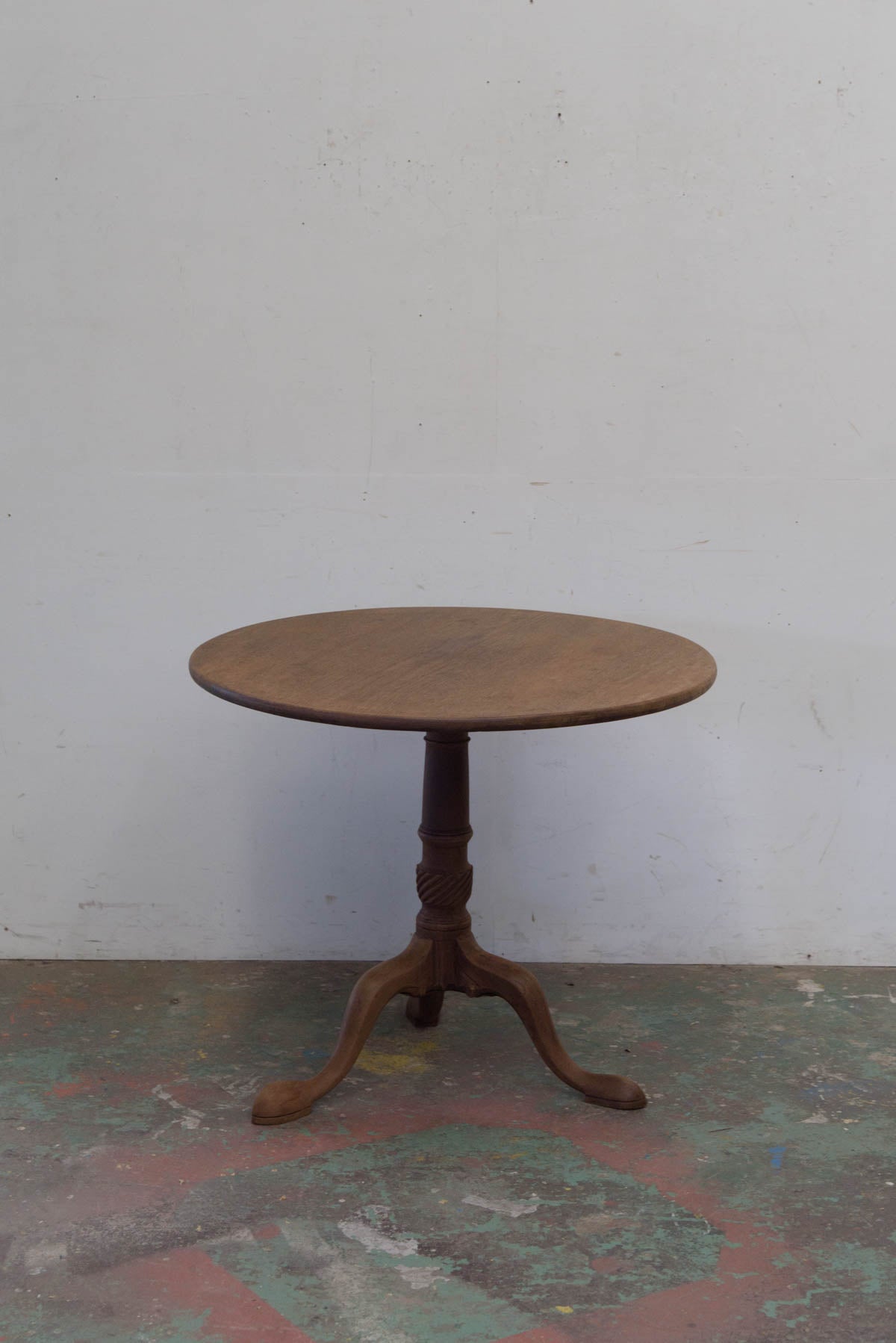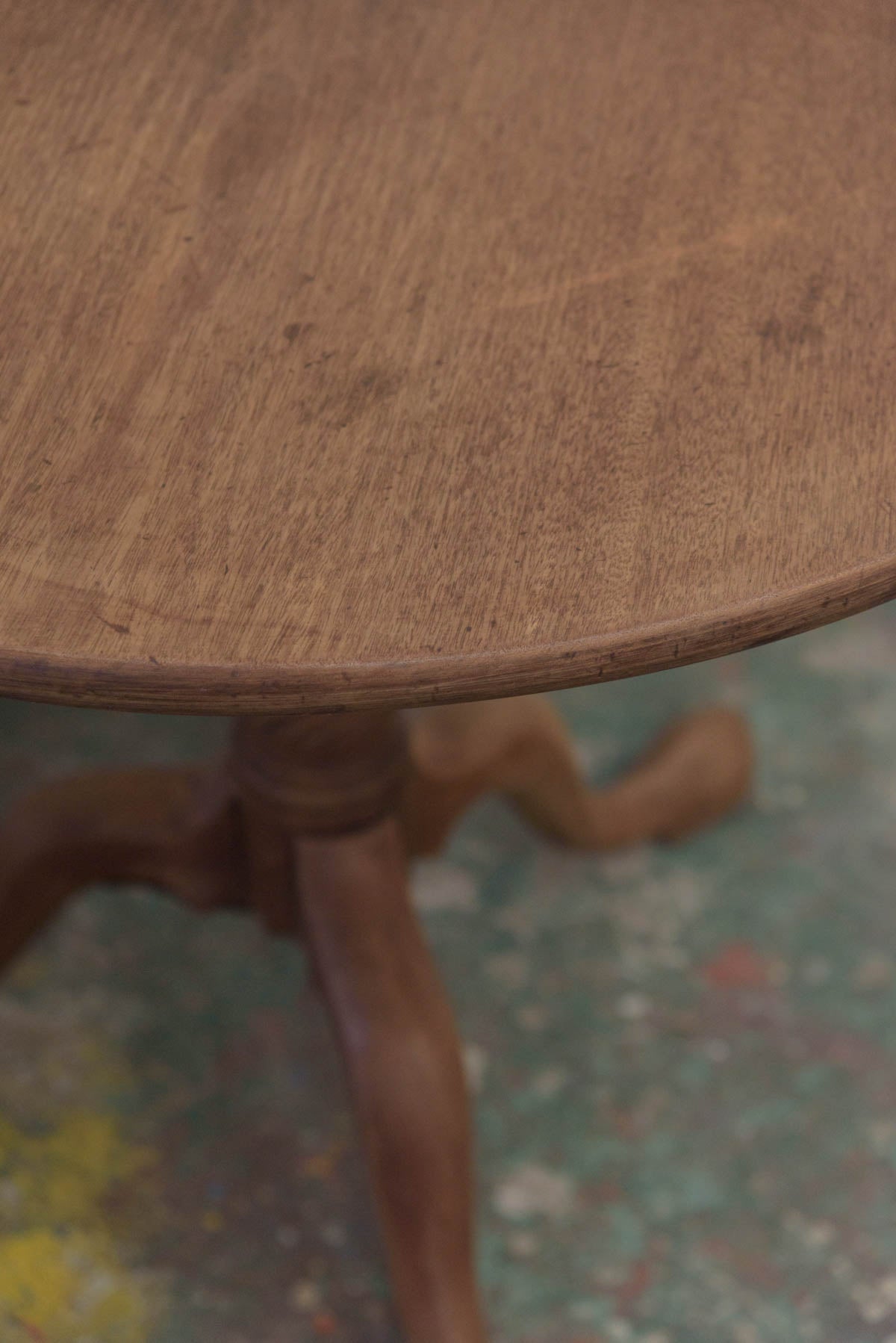 1900年代前半の家具です。真鍮のボタンでロックを外すと天板が立ち上がります。ヨーロッパではワインテーブルと呼ばれ、来客用としてサロンや居間で使用されていました。古い天板の質感が良いので立ち上げた状態でも絵になります。飲食店などの補助的なテーブルとしても。畳む必要のない場合は、ビスでの天板固定も承ります。