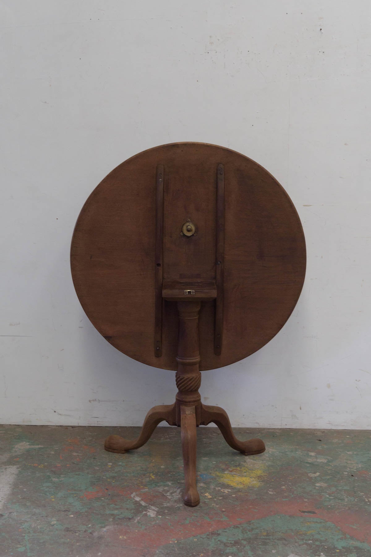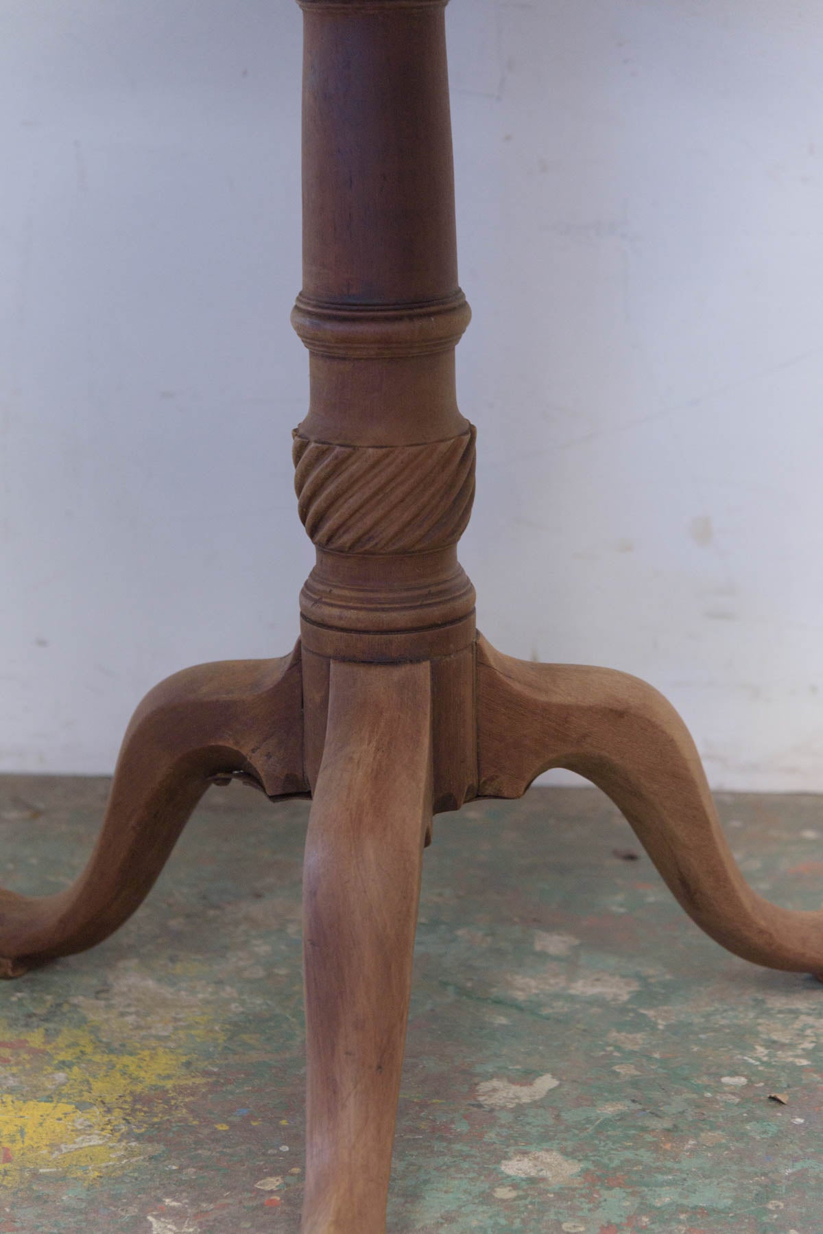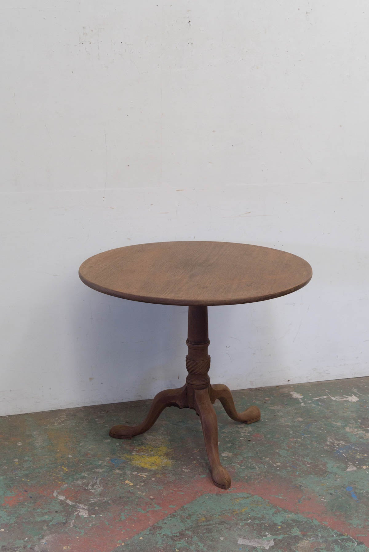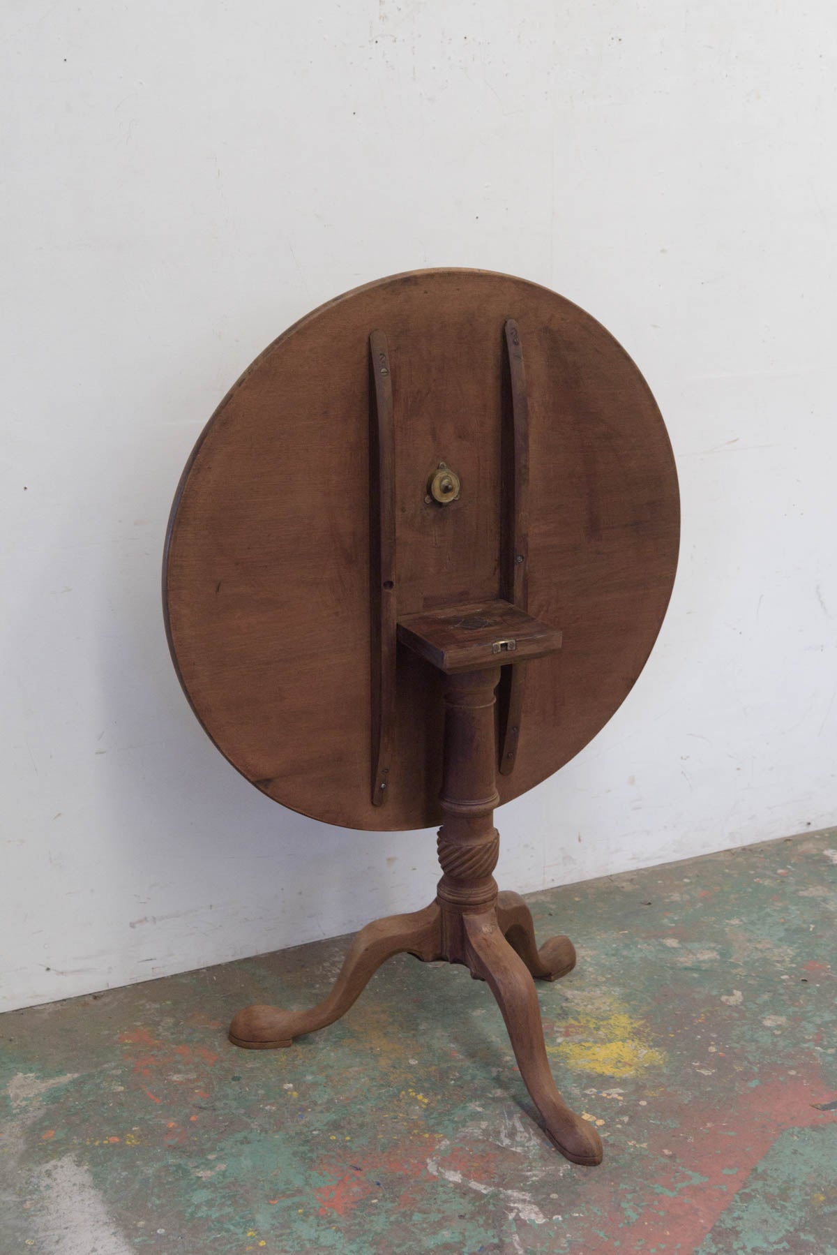 1900年代前半の家具です。真鍮のボタンでロックを外すと天板が立ち上がります。ヨーロッパではワインテーブルと呼ばれ、来客用としてサロンや居間で使用されていました。古い天板の質感が良いので立ち上げた状態でも絵になります。飲食店などの補助的なテーブルとしても。畳む必要のない場合は、ビスでの天板固定も承ります。