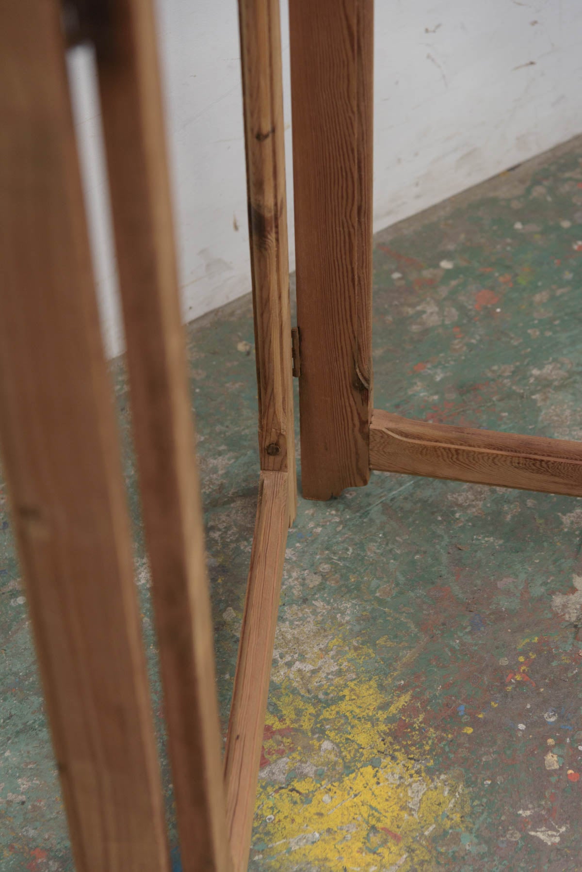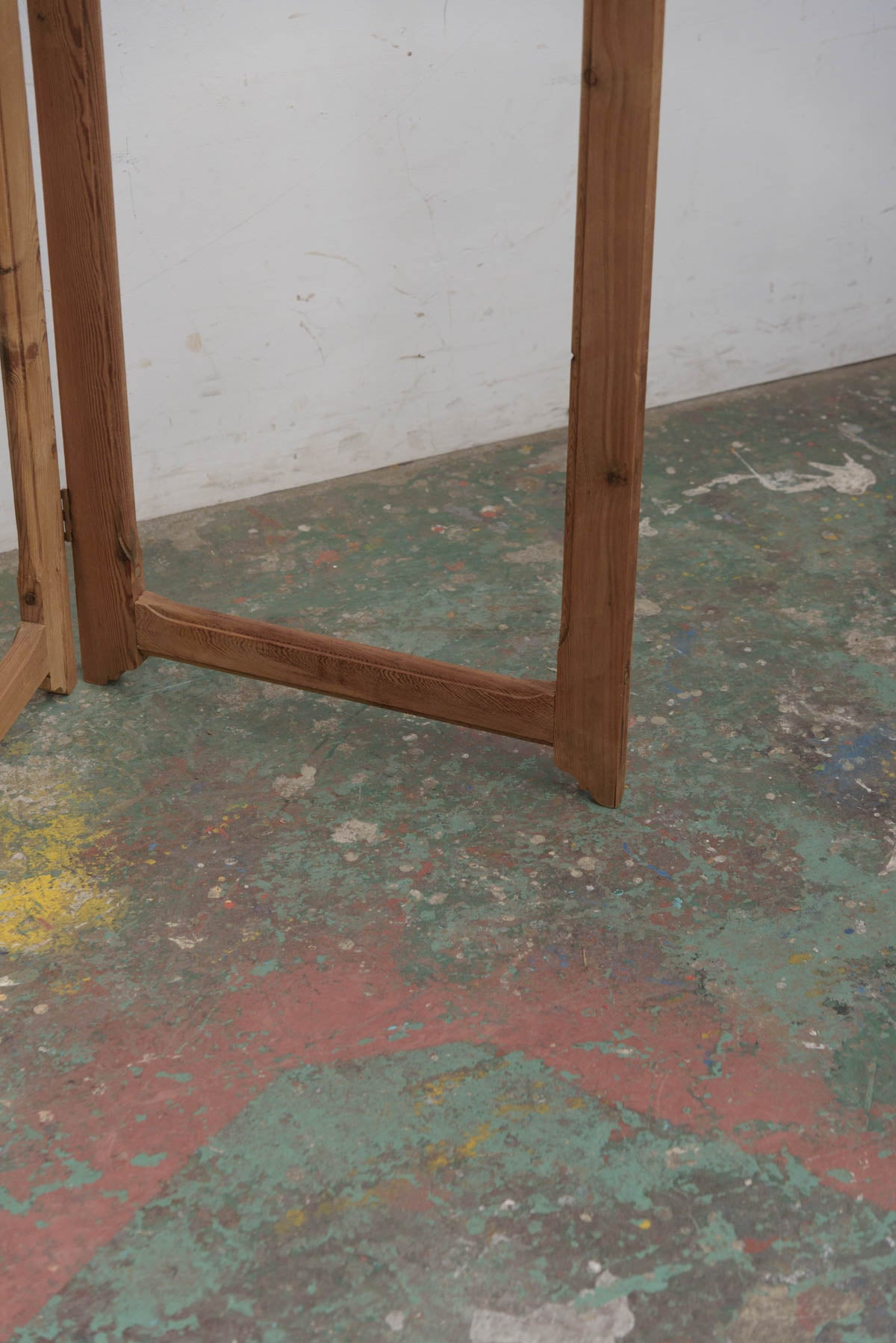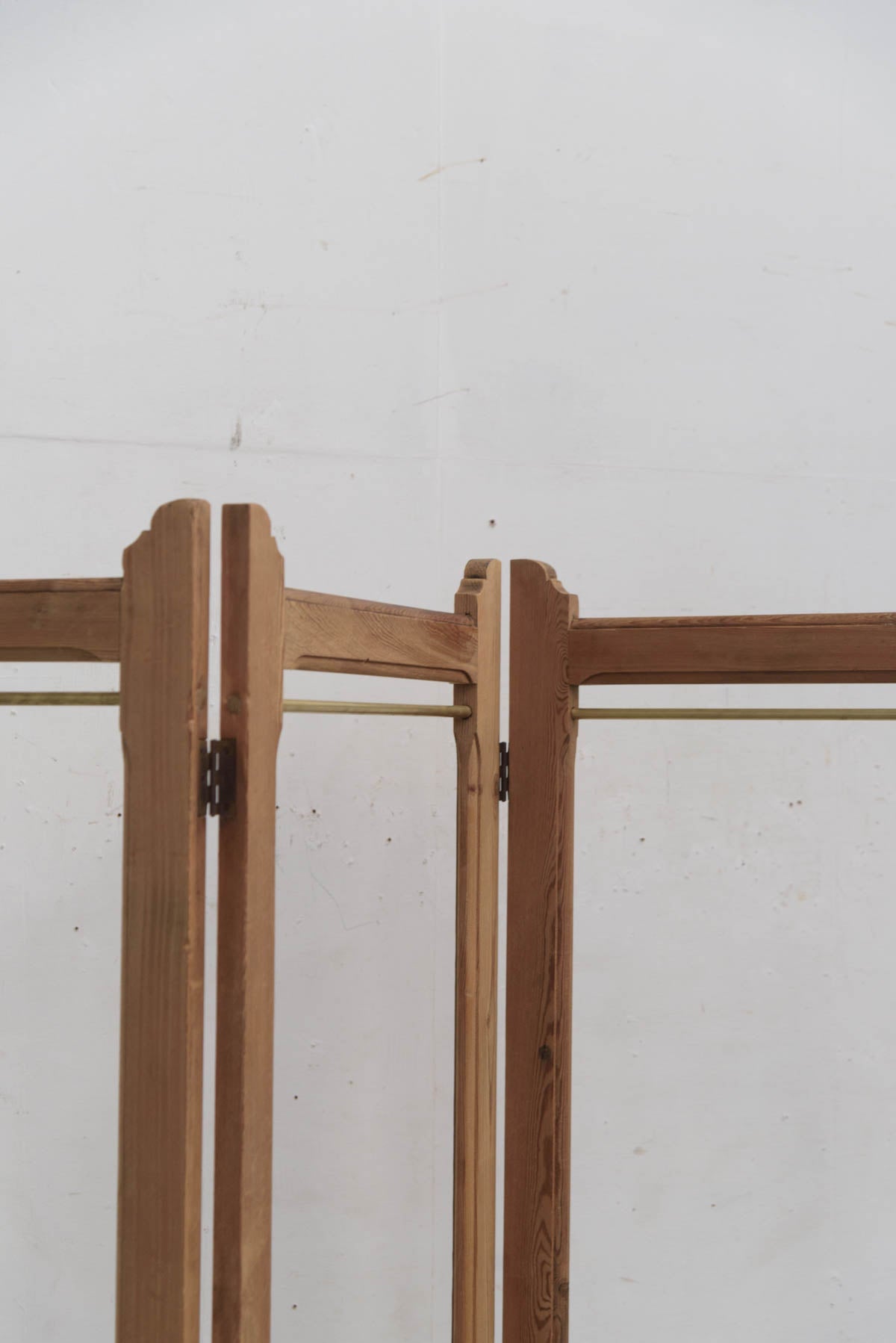 ベルギーで仕入れたパーテーションに真鍮ポールを取り付けています。