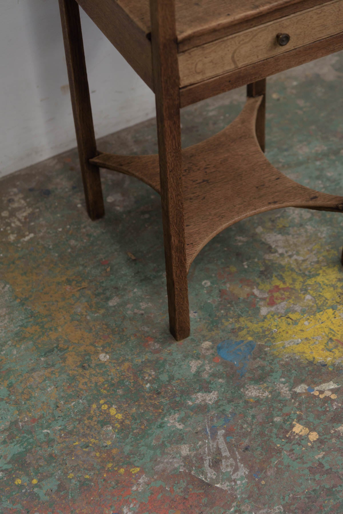 ベルギーの引き出し付きの小さなシェルフ。無駄のないシンプルで端正なデザインの家具。オーク材の質感も良く、小さいですが非常にたたずまいの良いシェルフです。