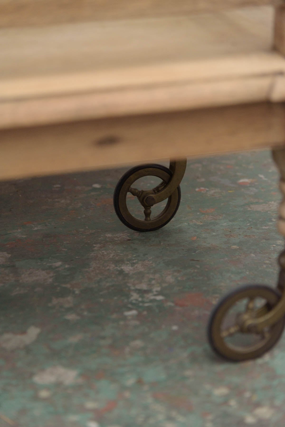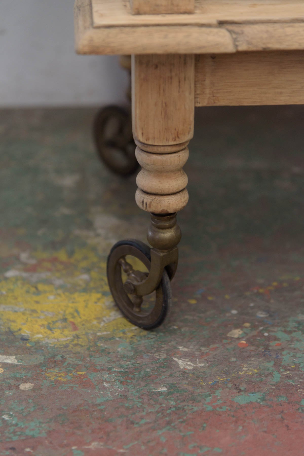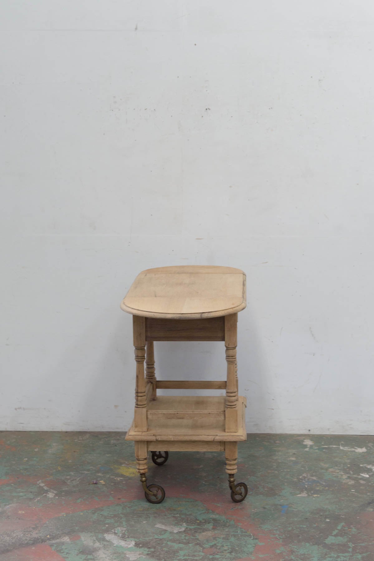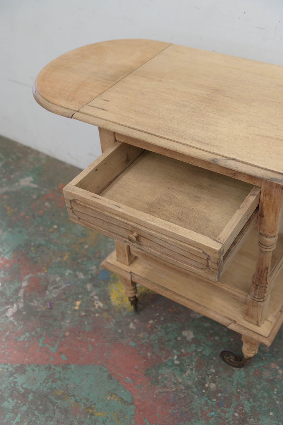 ベルギーのキッチンワゴンです。めずらしいオーバルのバタフライ天板に引き出し付きです。キャスターの動きも良く、しっかり実用できます。1950ー60年ごろの家具です。