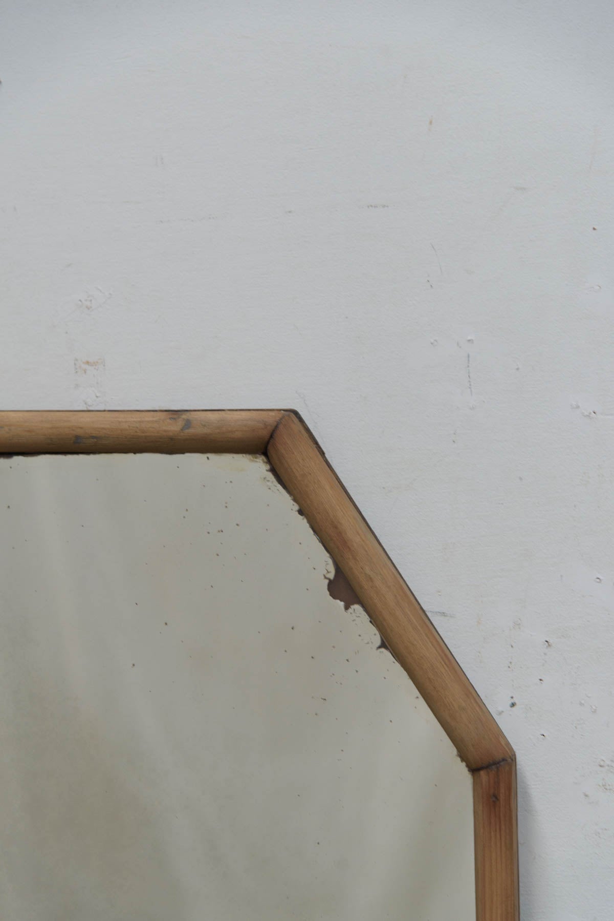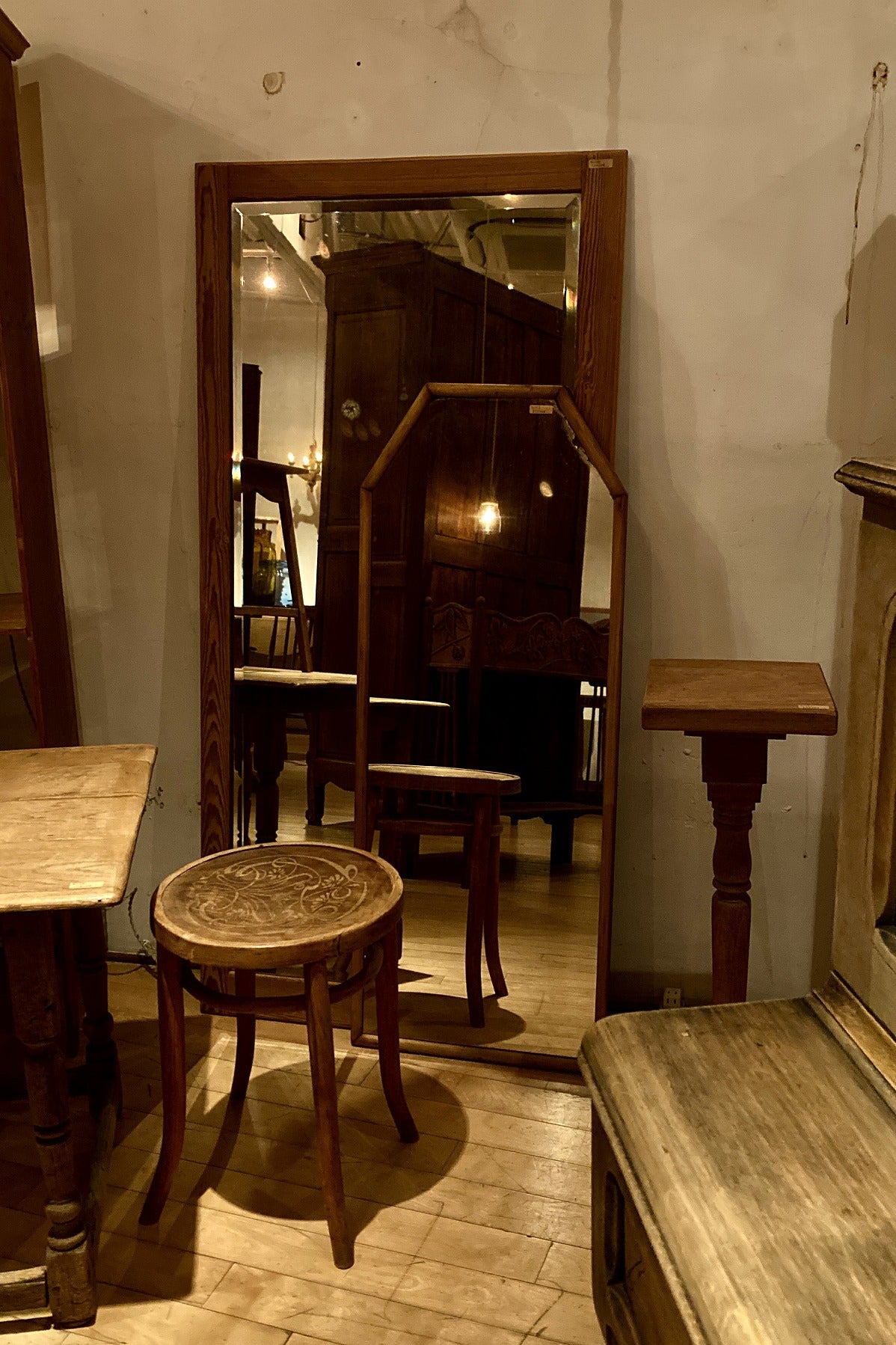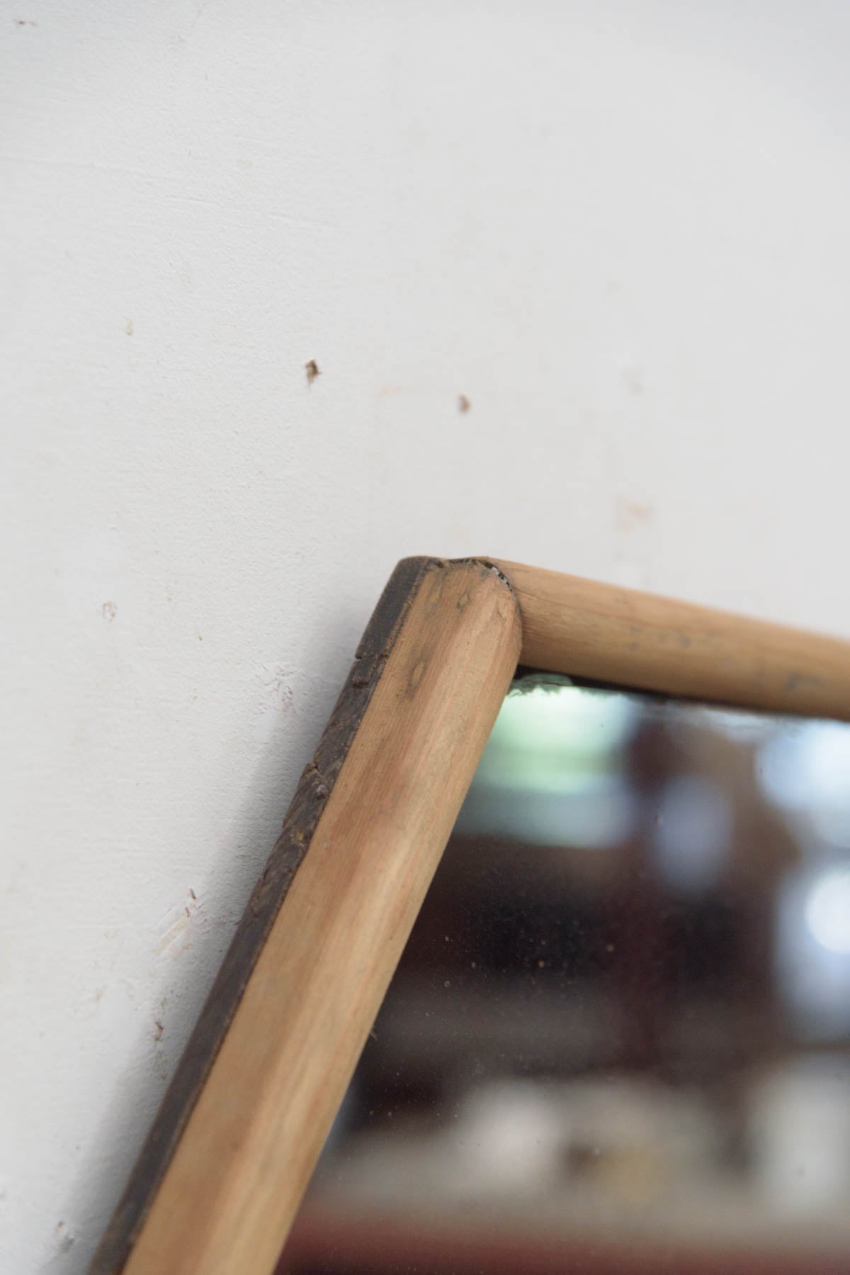 枠はオーク材、鏡も古いので部分的にはがれや傷などありますが、枠の細さのバランスも良く雰囲気のあるミラーです。