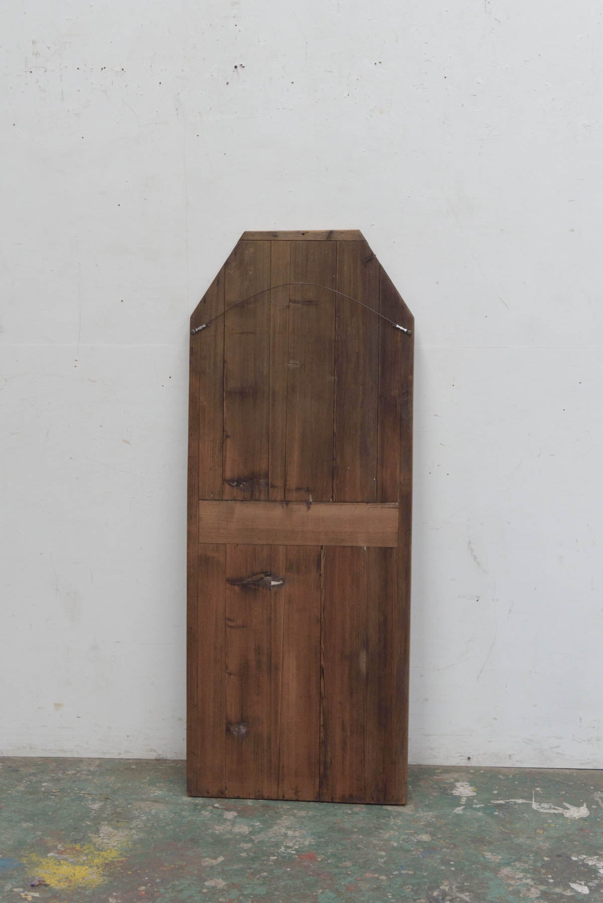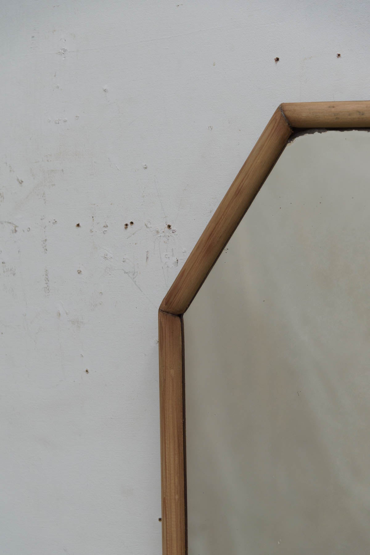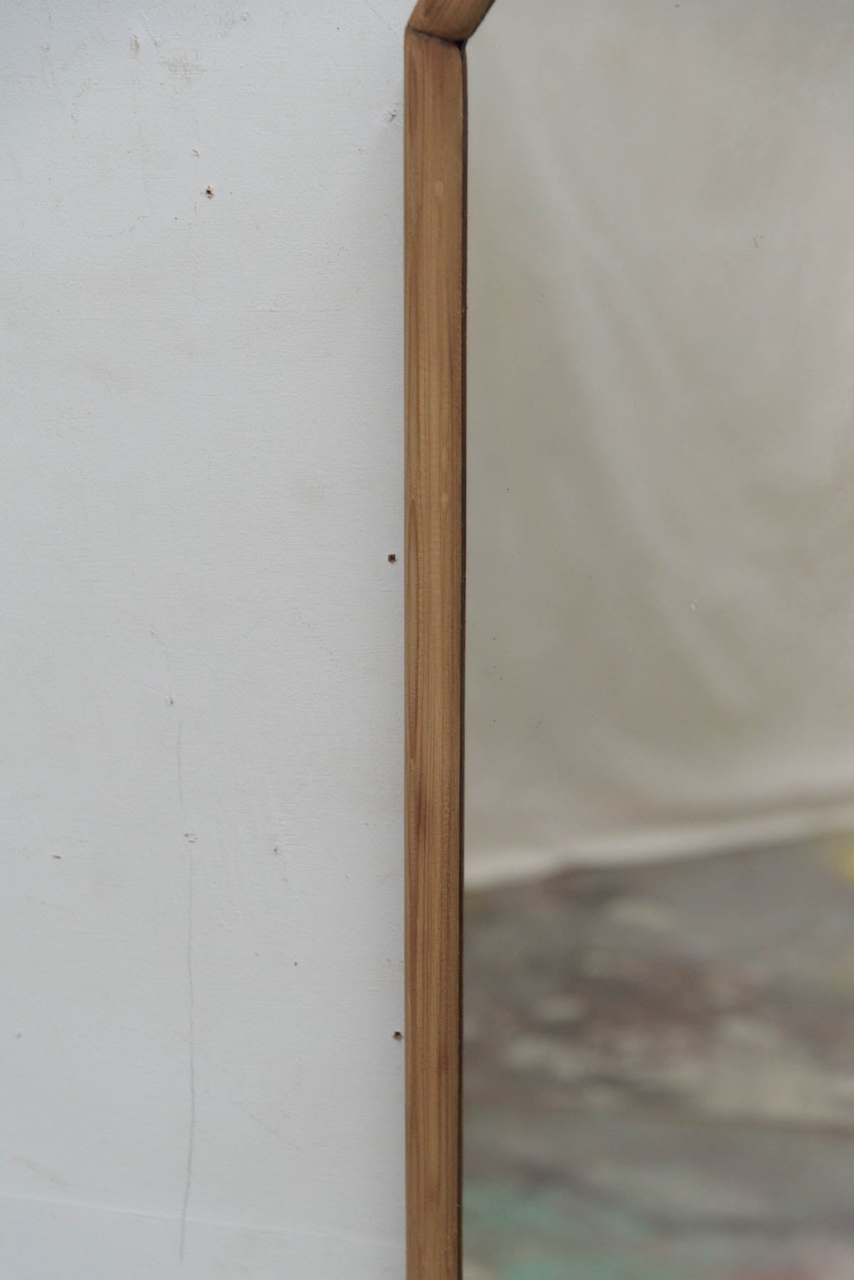 枠はオーク材、鏡も古いので部分的にはがれや傷などありますが、枠の細さのバランスも良く雰囲気のあるミラーです。