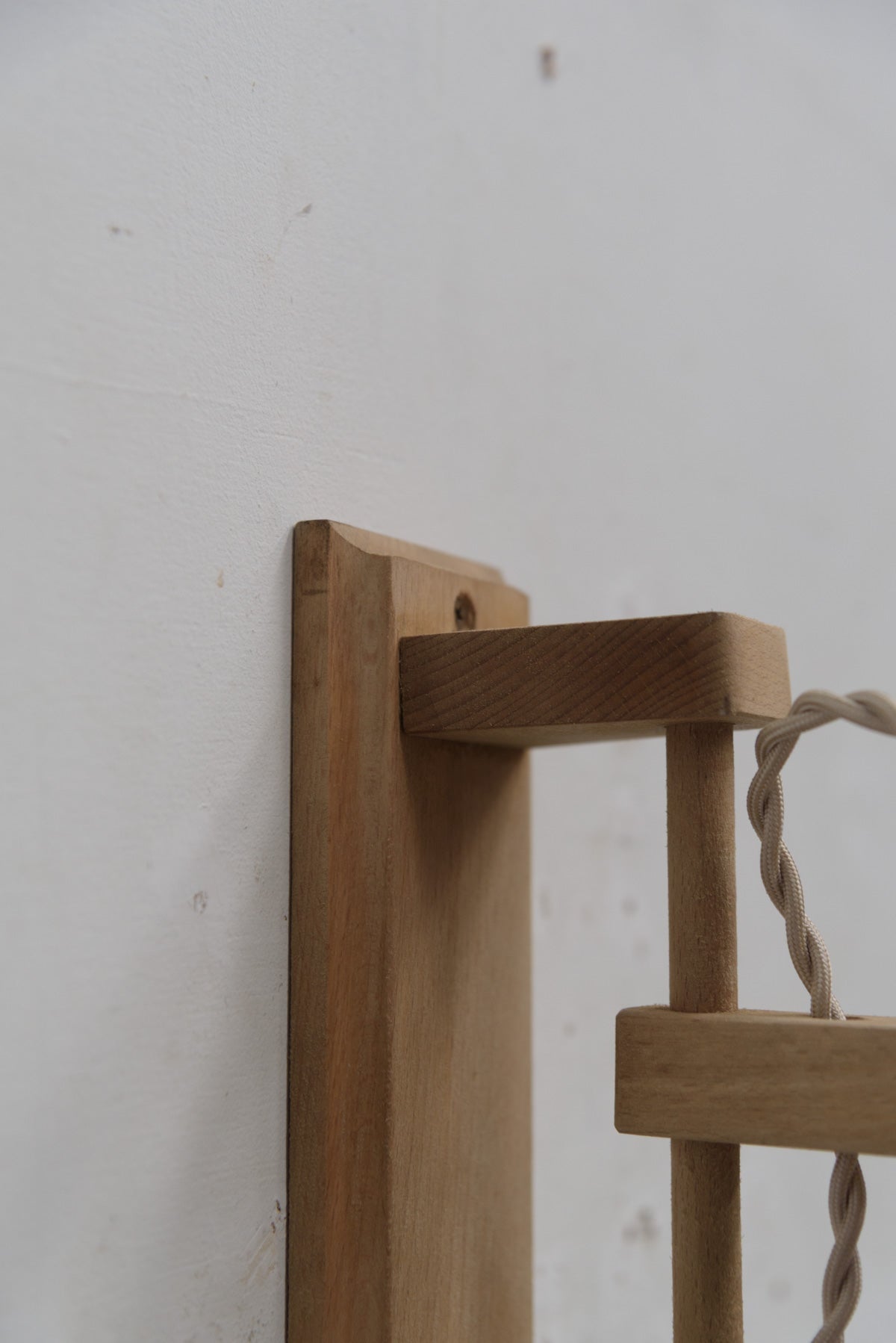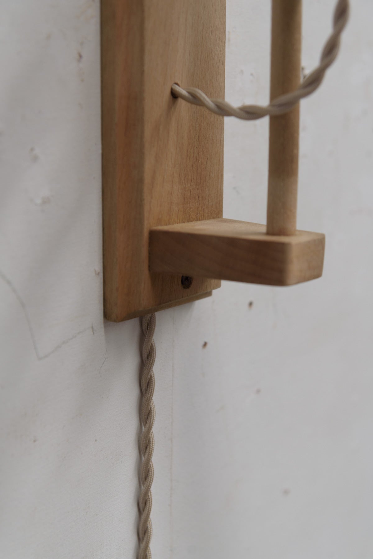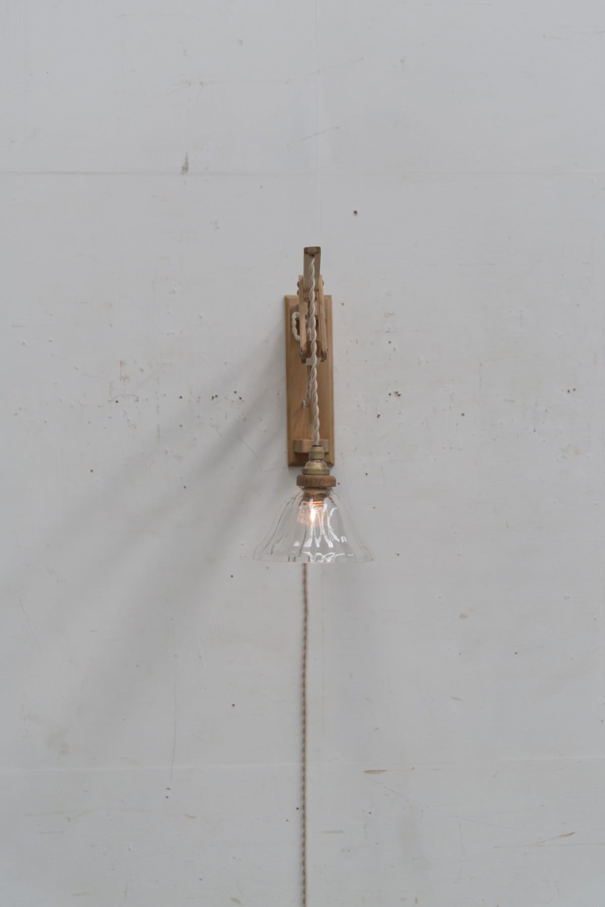 チェコの木製ブラケットランプ。1960ー70年ごろの照明です。ガラスシェードは、ベルギーで仕入れたものを取り付けています。