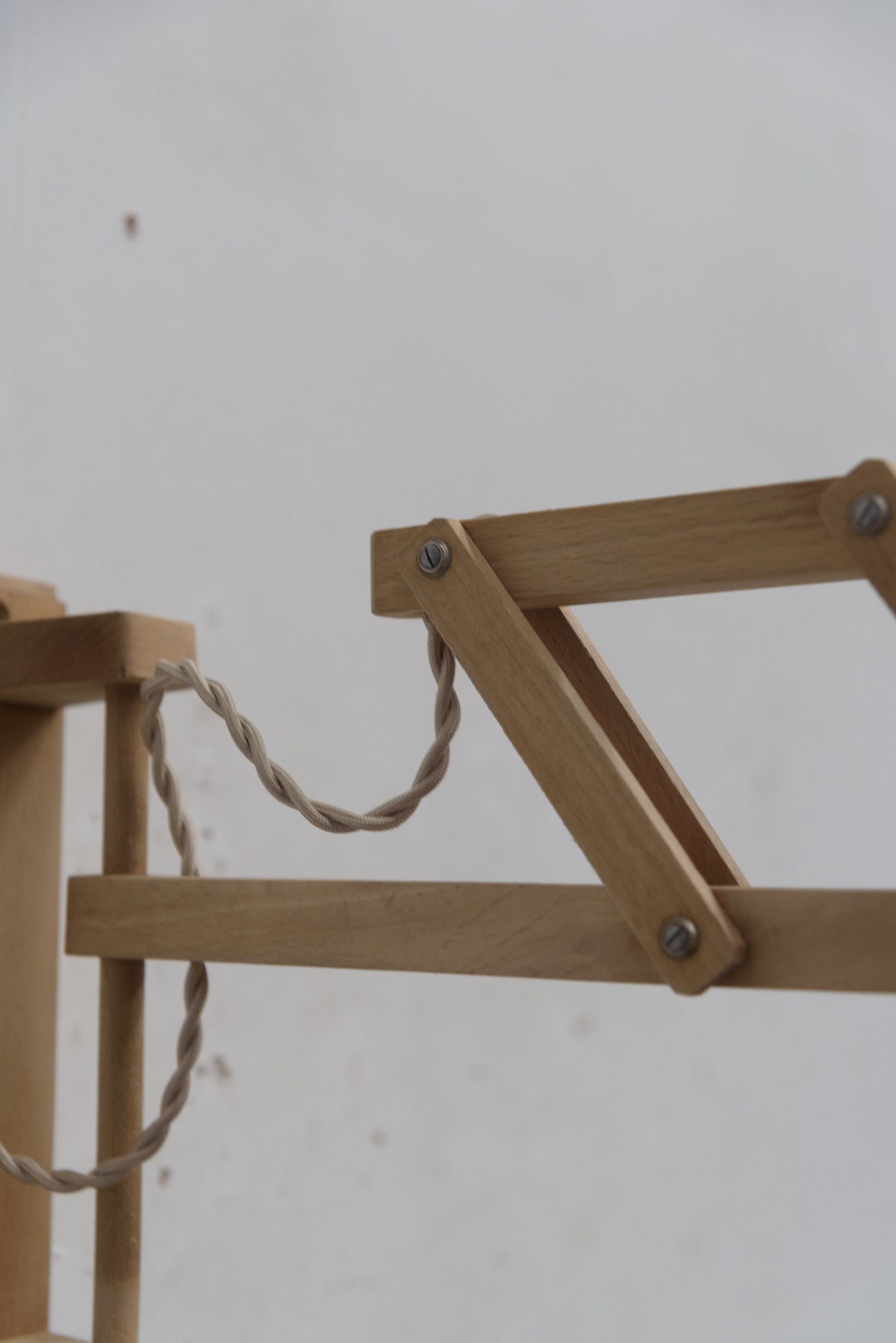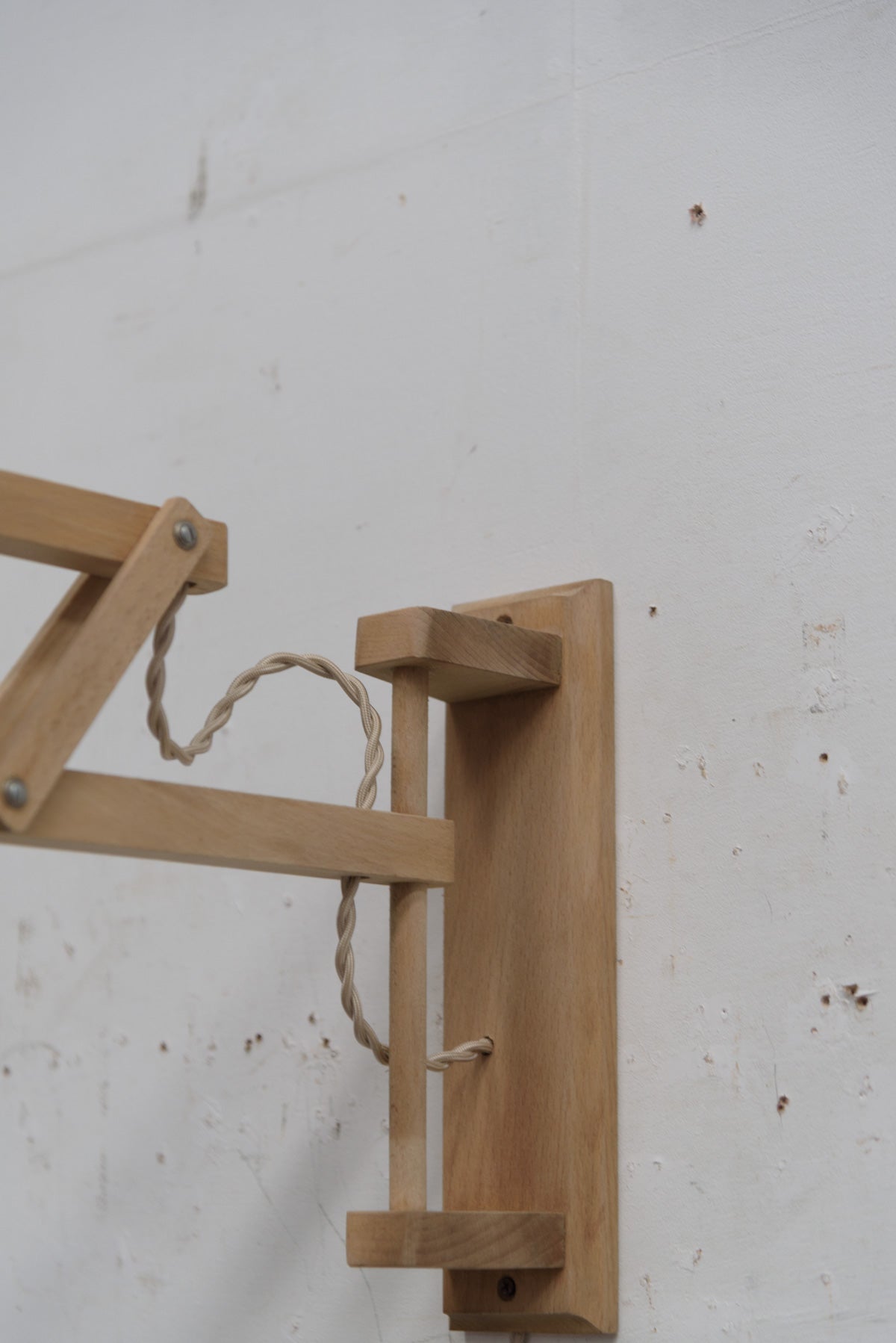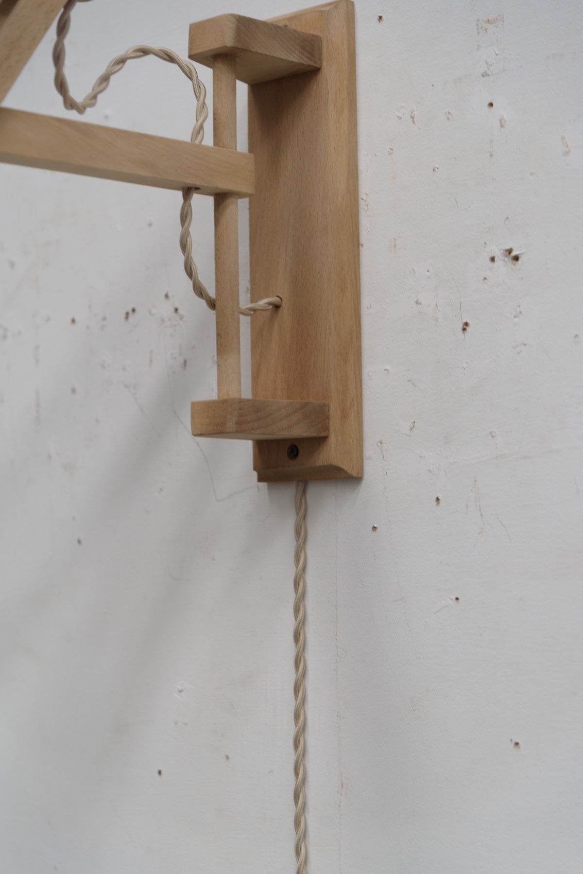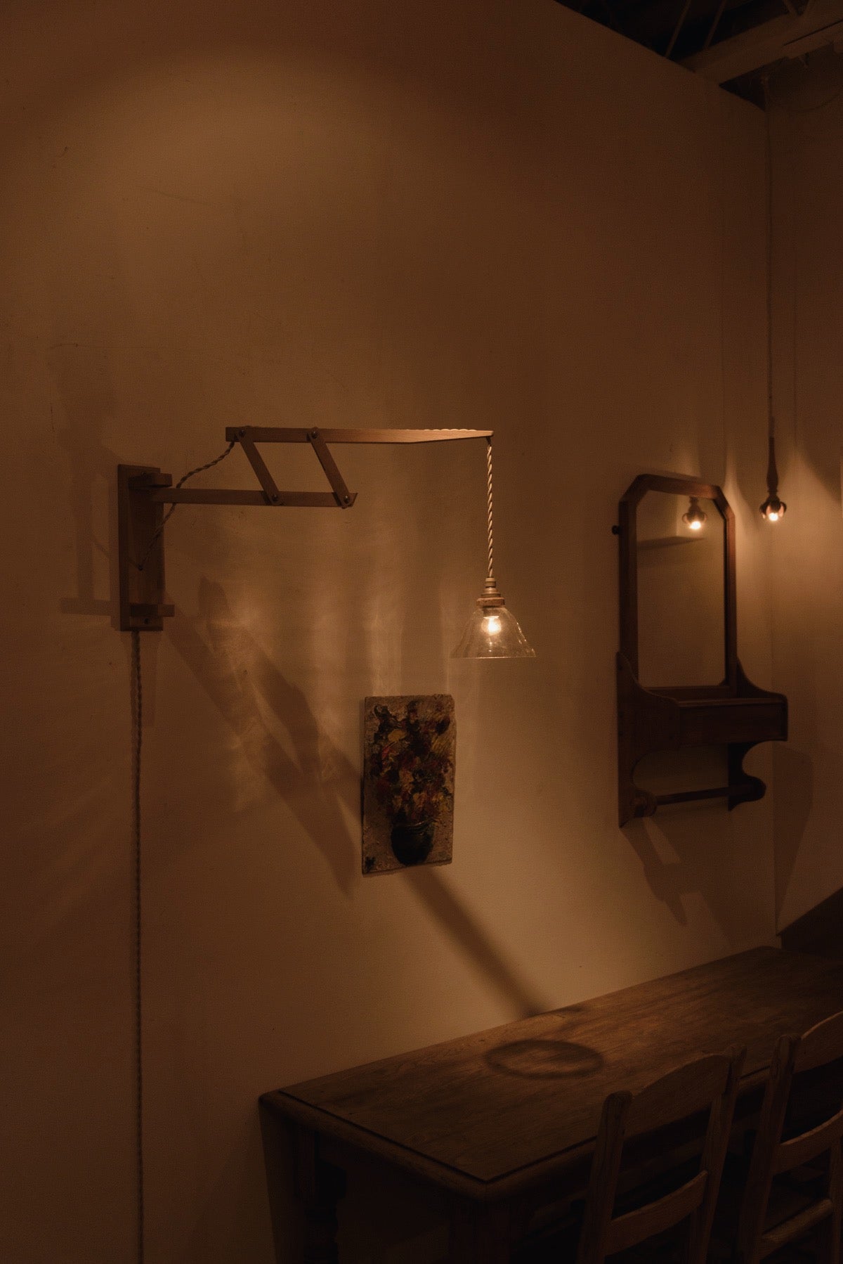 チェコの木製ブラケットランプ。1960ー70年ごろの照明です。ガラスシェードは、ベルギーで仕入れたものを取り付けています。