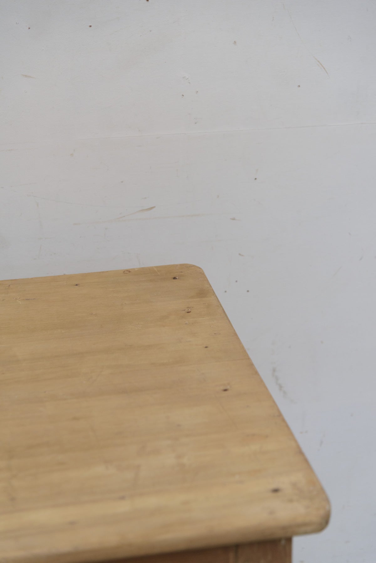 材質はパイン材、脚が細めで奥行きも大きすぎずシャープな印象のテーブルです。天板も比較的状態が良く、ぐらつきもないのでダイニングテーブルとしてしっかり実用できます。