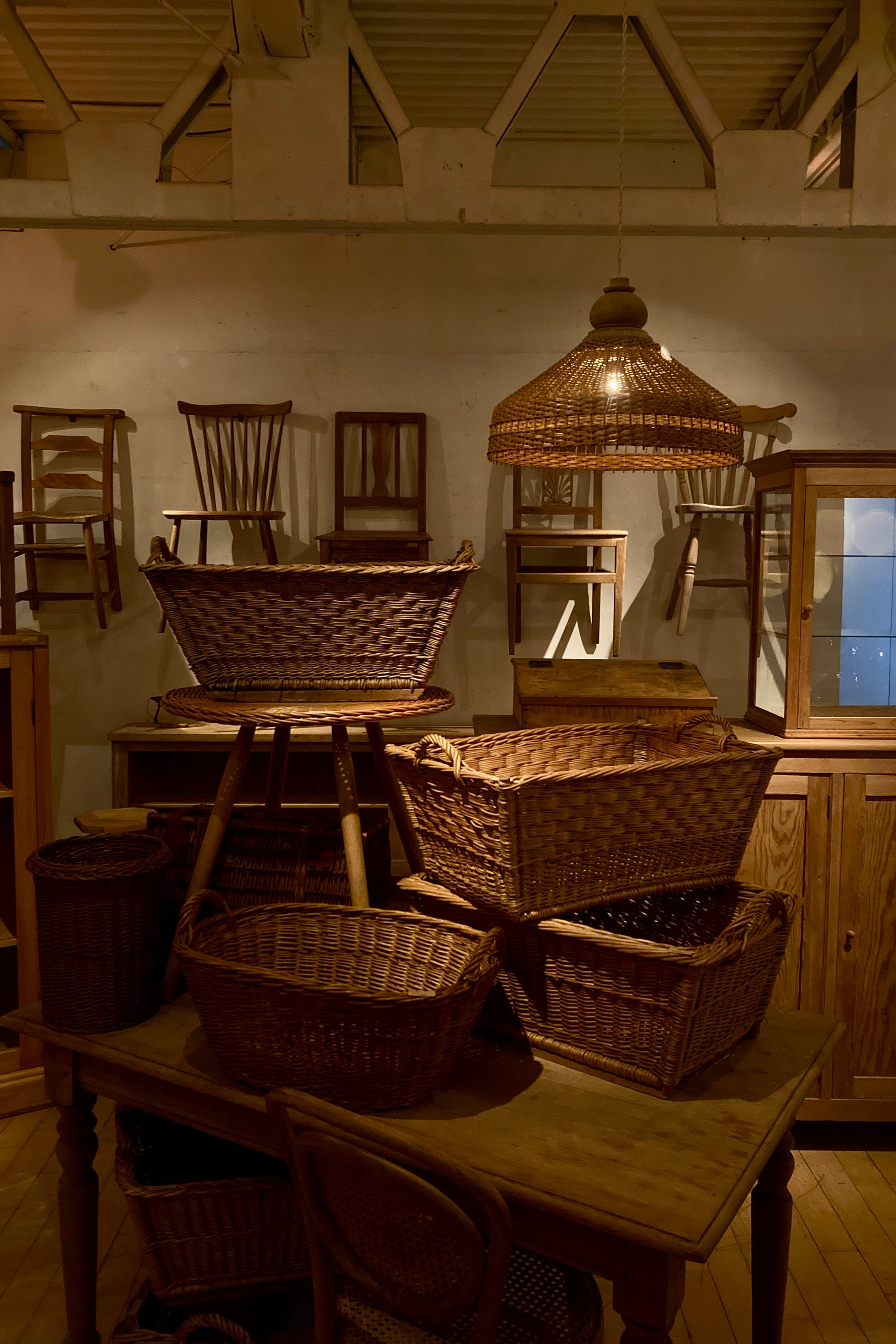 チェコのラタン製のペンダントランプです。