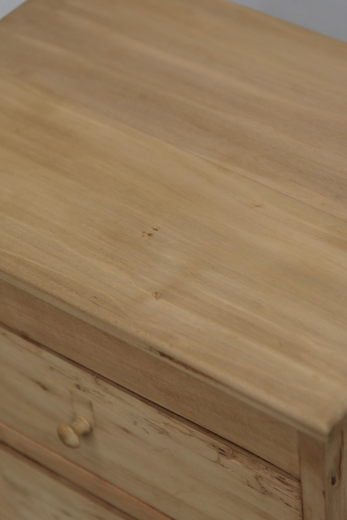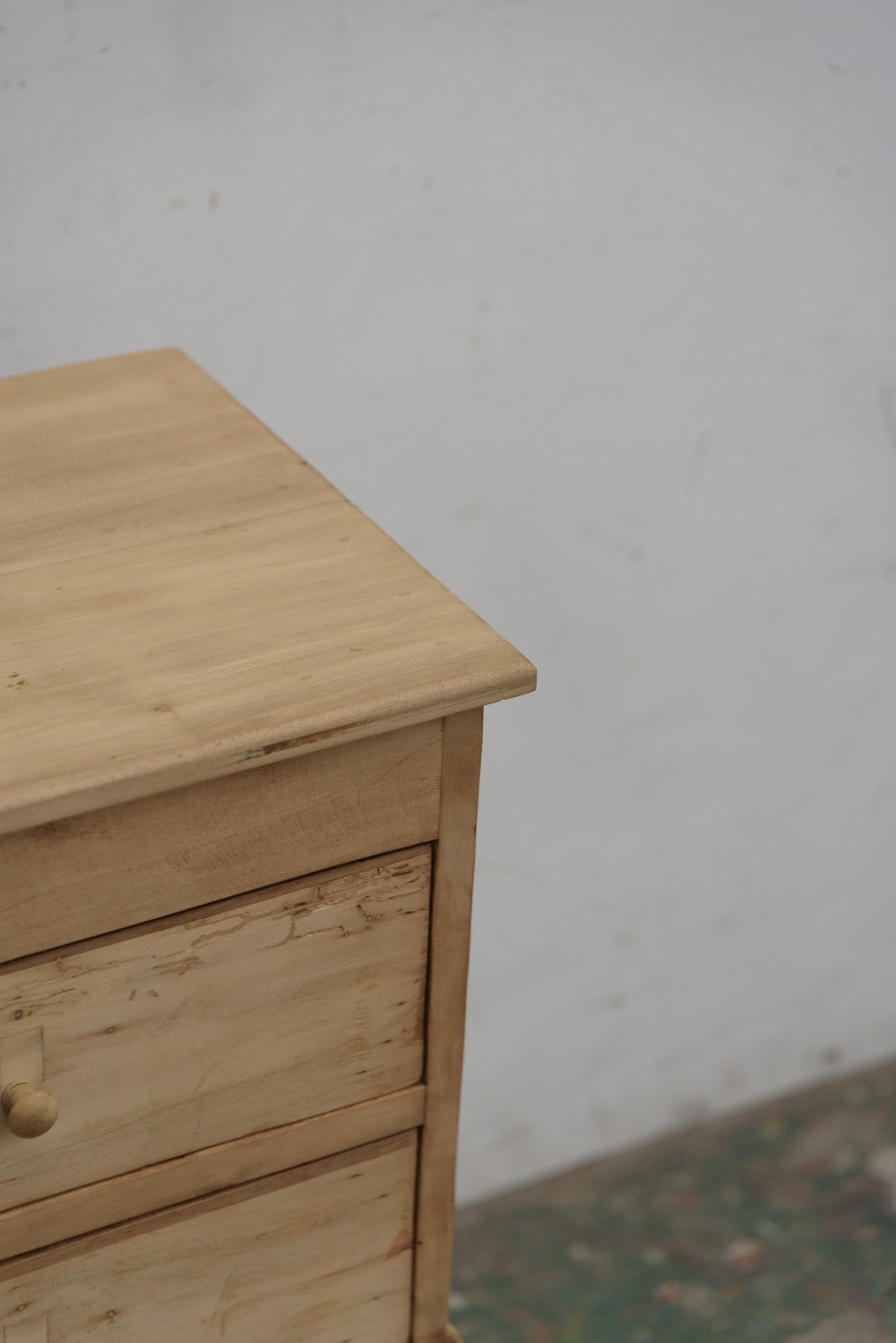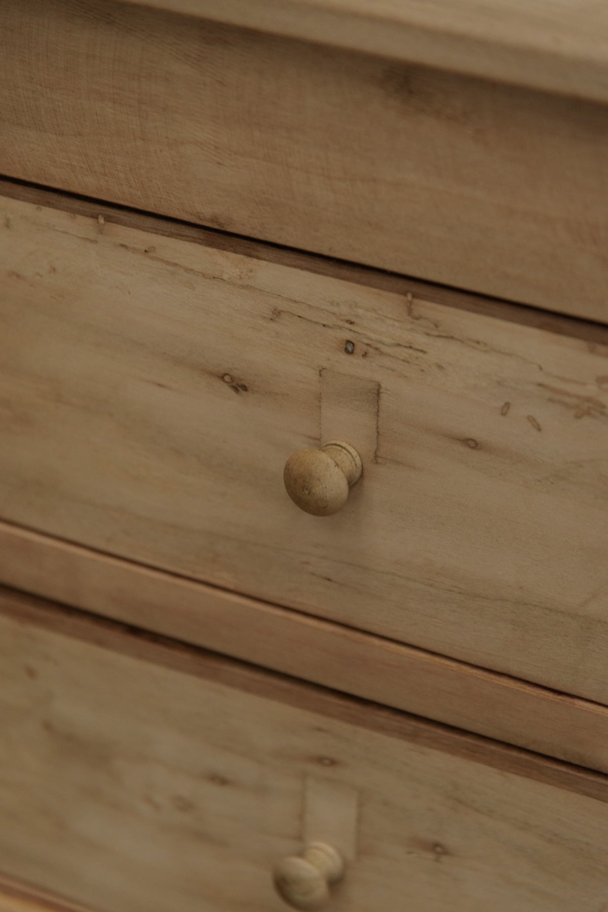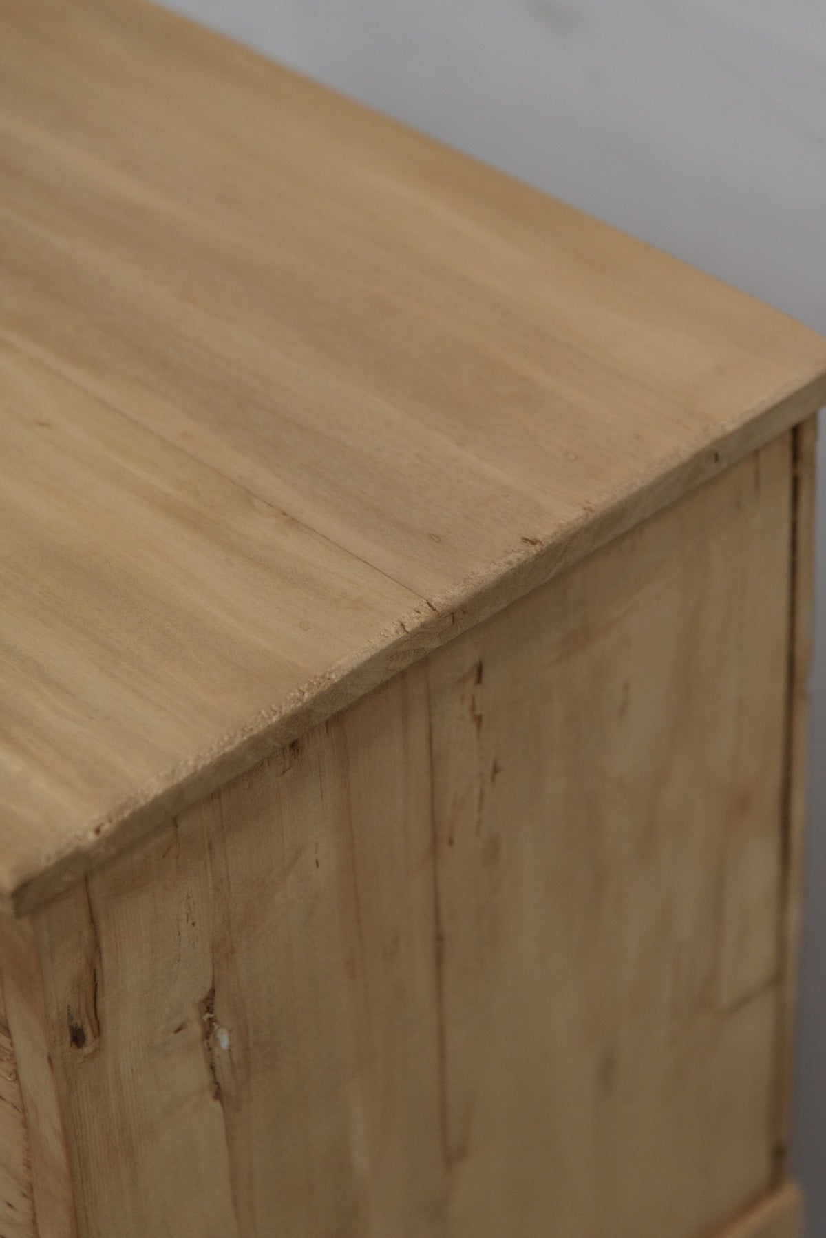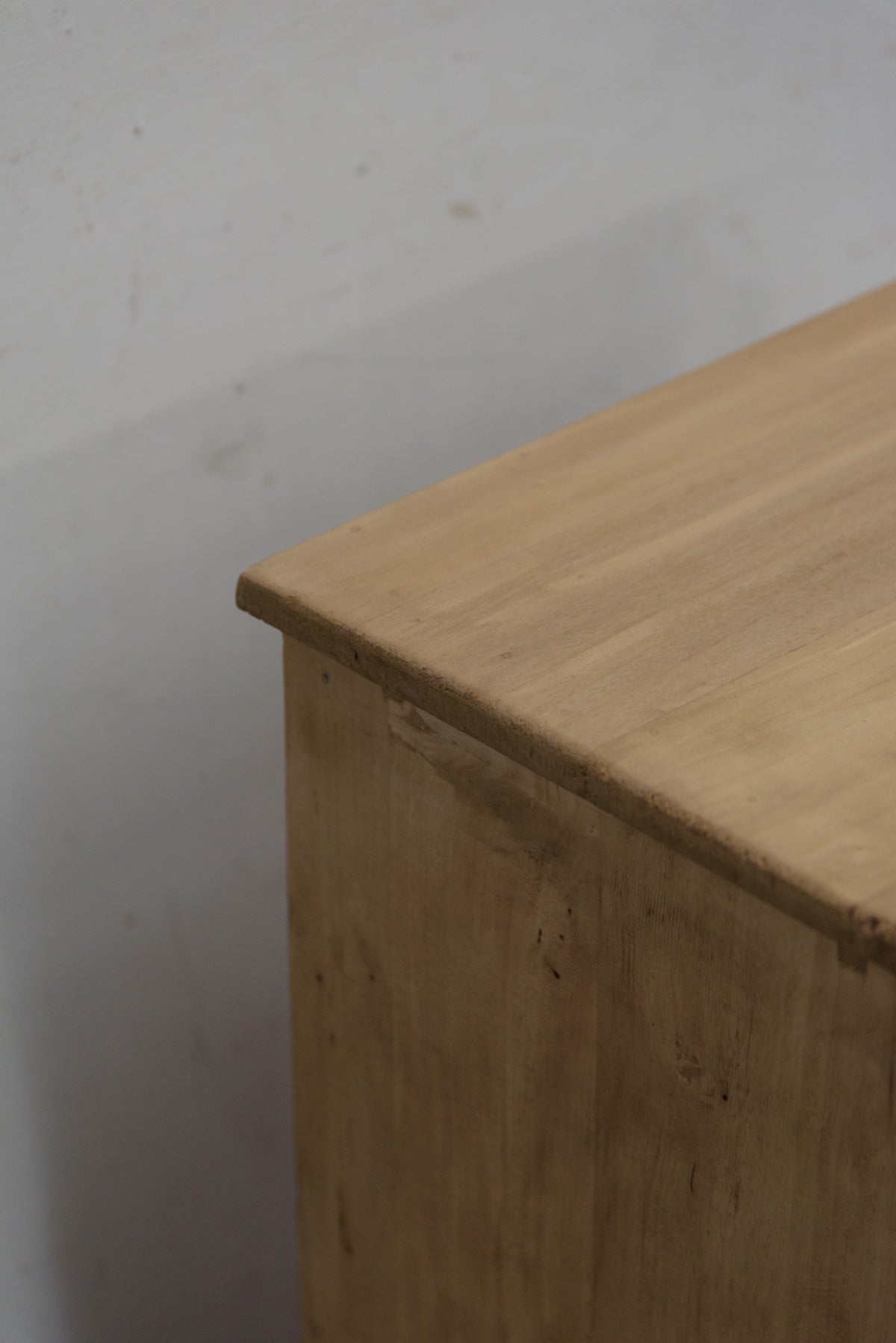 ヨーロッパのアンティークだと引き出しの家具は大きなものが多いですが、こちらはめずらしいサイズの細長い小さなチェストです。引き出しの動きも良く、場所も取らない実用向きの家具です。