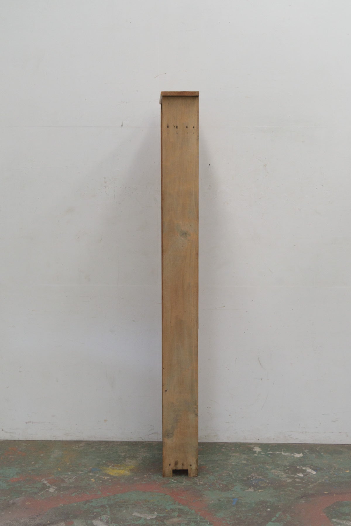 工業用の棚です。使っていた人が修理して手を加えていった形跡が魅力的な業務用の家具。縦長なのもおもしろく、小さな引き出し付きです。細長い家具ですので壁に固定してお使いください。
