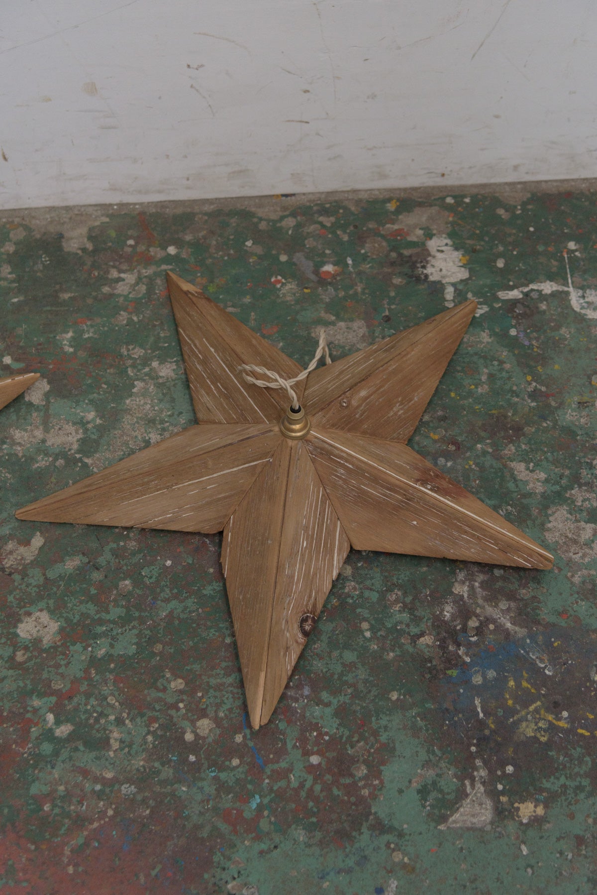 ベルギーで仕入れた木製の星のオーナメントを加工したランプです。