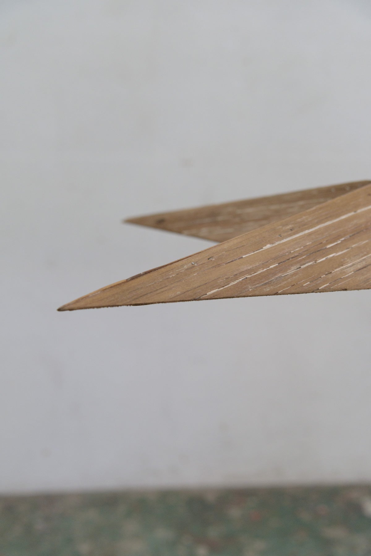 もともとは魔除けとして家の外壁にかけて使われていたもので、古い木製のものはめずらしく、目を引くオブジェのようなペンダントライトに仕上がっています。電気部品は日本の新しいものに交換しています。口金はE17で引っ掛けシーリング仕様。コードの長さは約2mです。