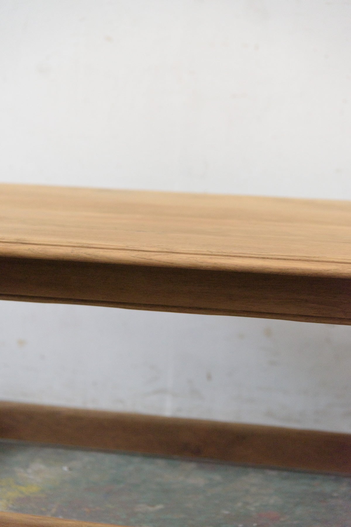 1950ー60年ごろのオーク材の端正なたたずまいのテーブルです。ぐらつきもなく天板の状態も良いのでしっかり実用できます。