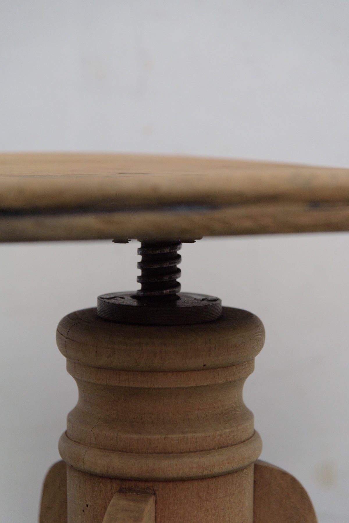 ピアノ用に作られたスツールだと思われます。座面を回転させて高さの調節ができます。材質はオーク、1900ー1930年ごろの古い家具のため座面に反りがありますが、使い込んだ風合いが素晴らしいスツールです。