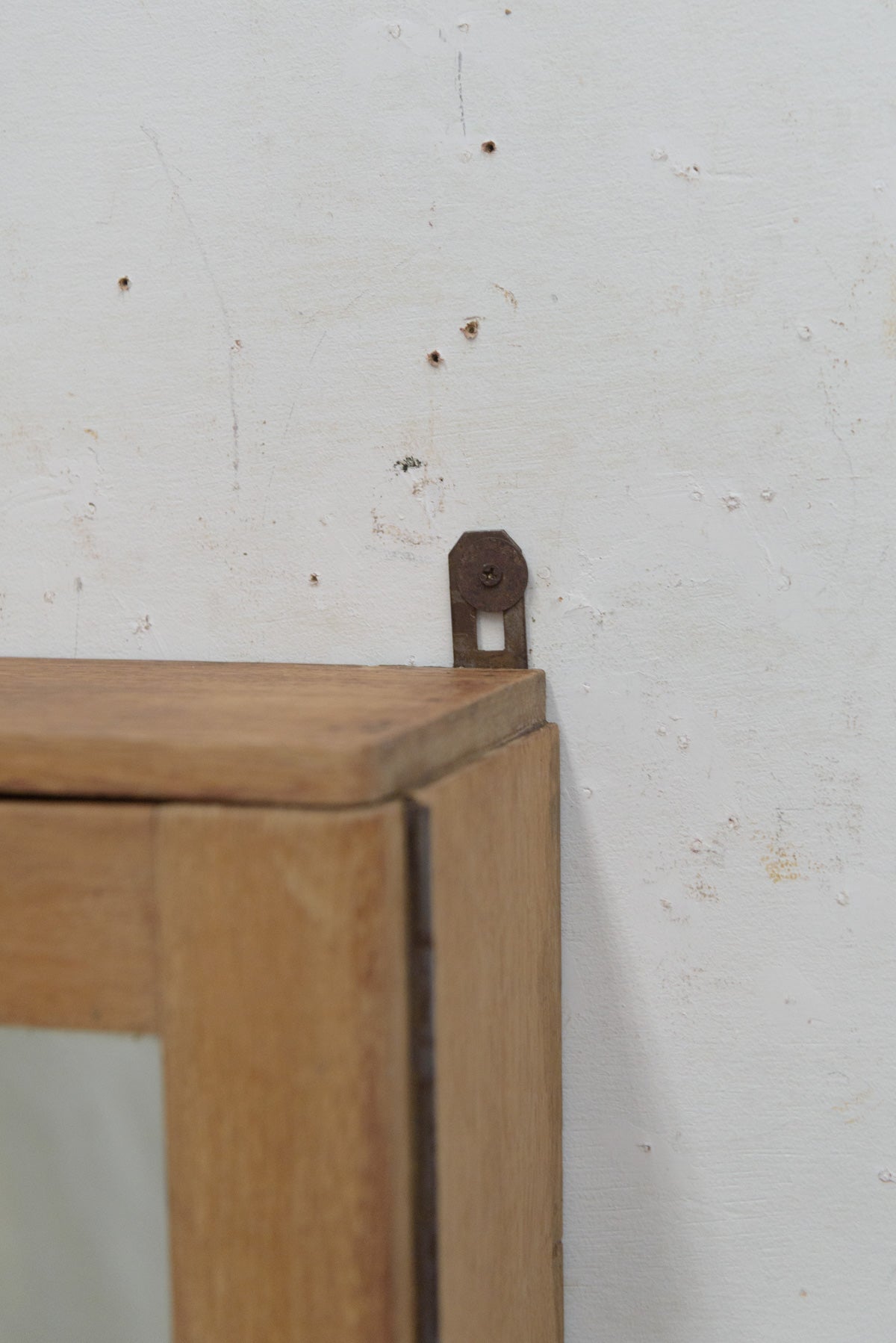 1960ー70年ごろのフランスの家具です。ヨーロッパでは洗面所やキッチン等で使われている小型の収納家具。材質は明るい色のオーク材で引出しや扉の動きも良く、棚板は固定されています。