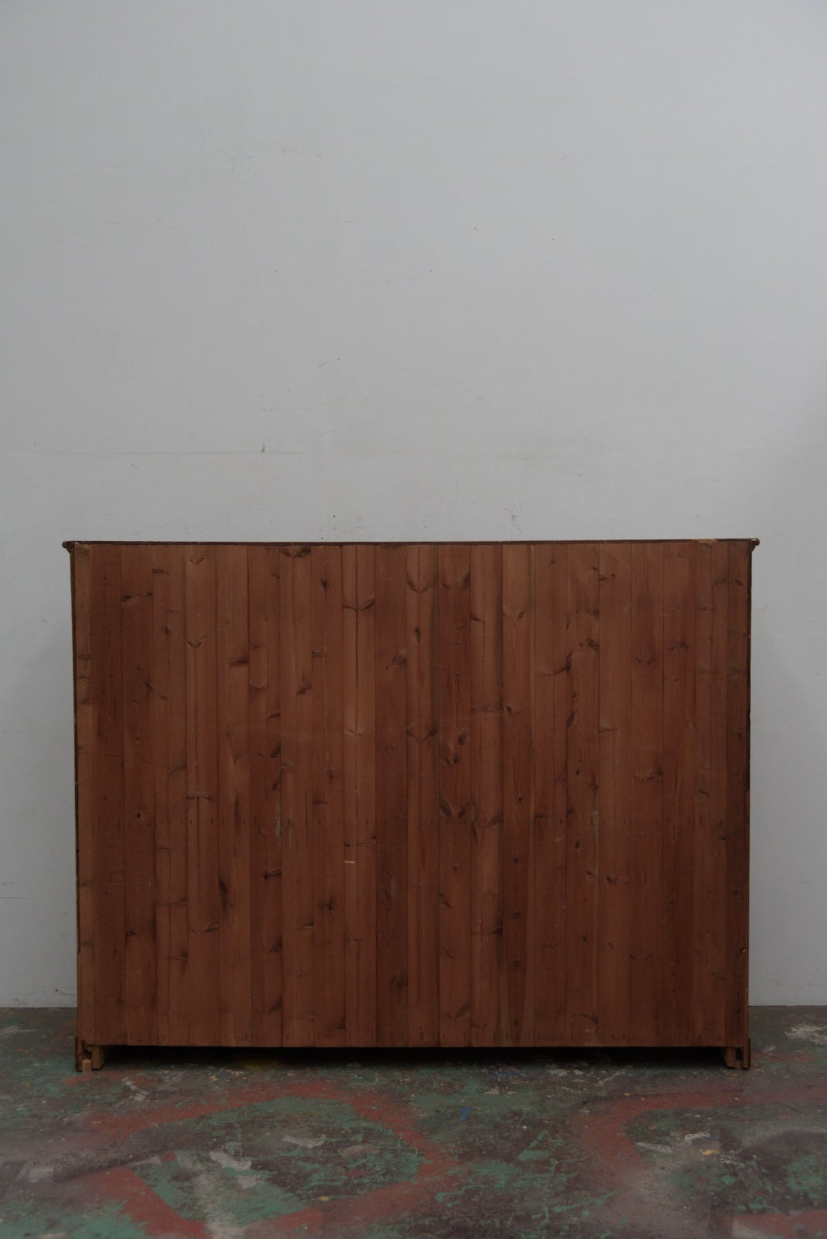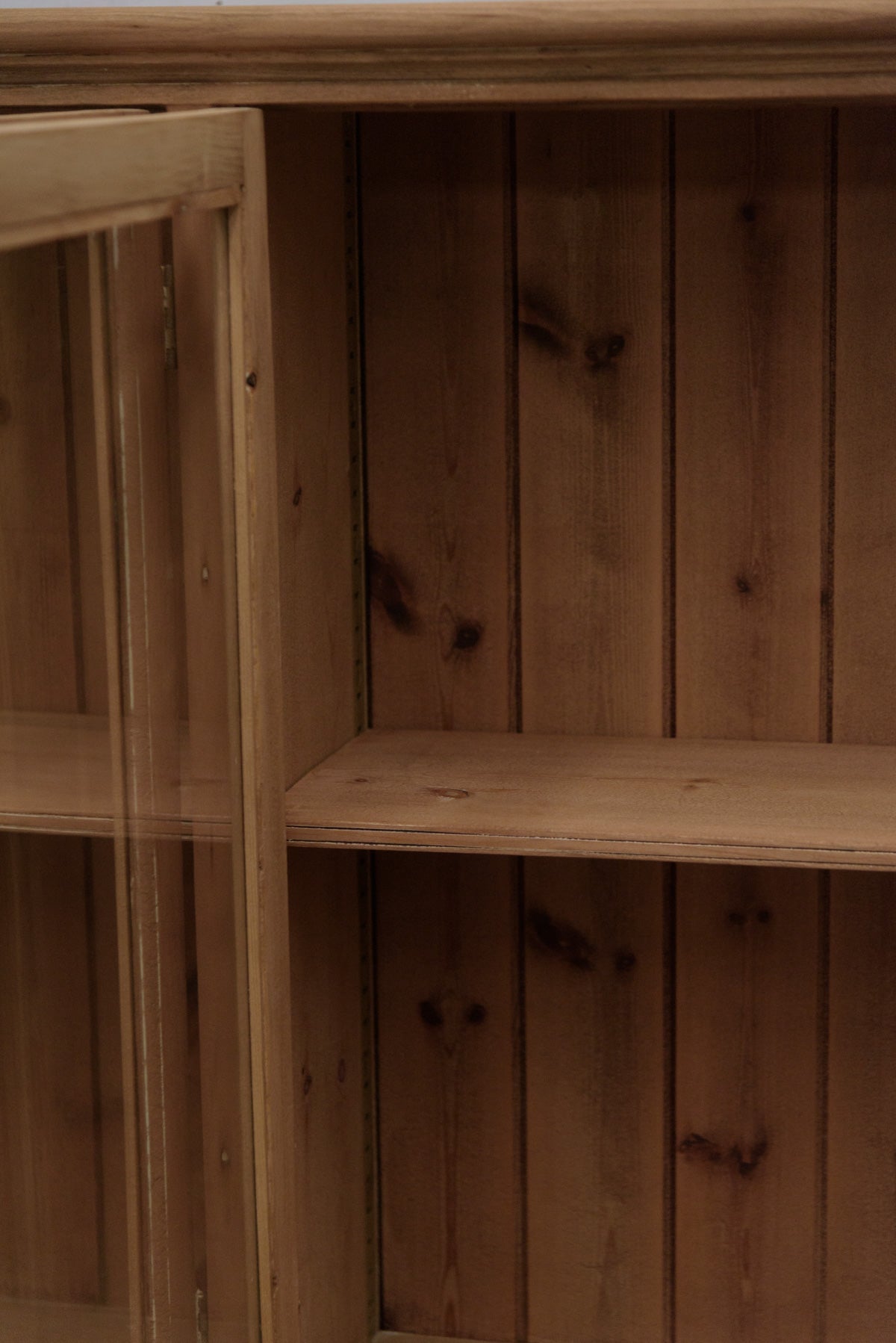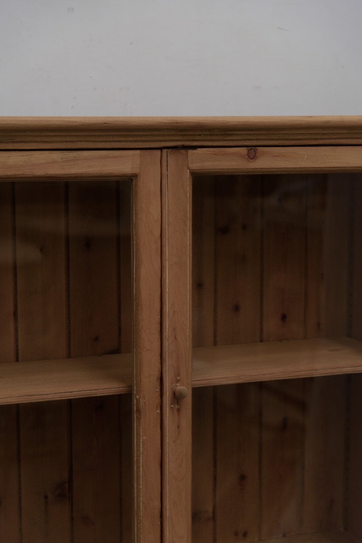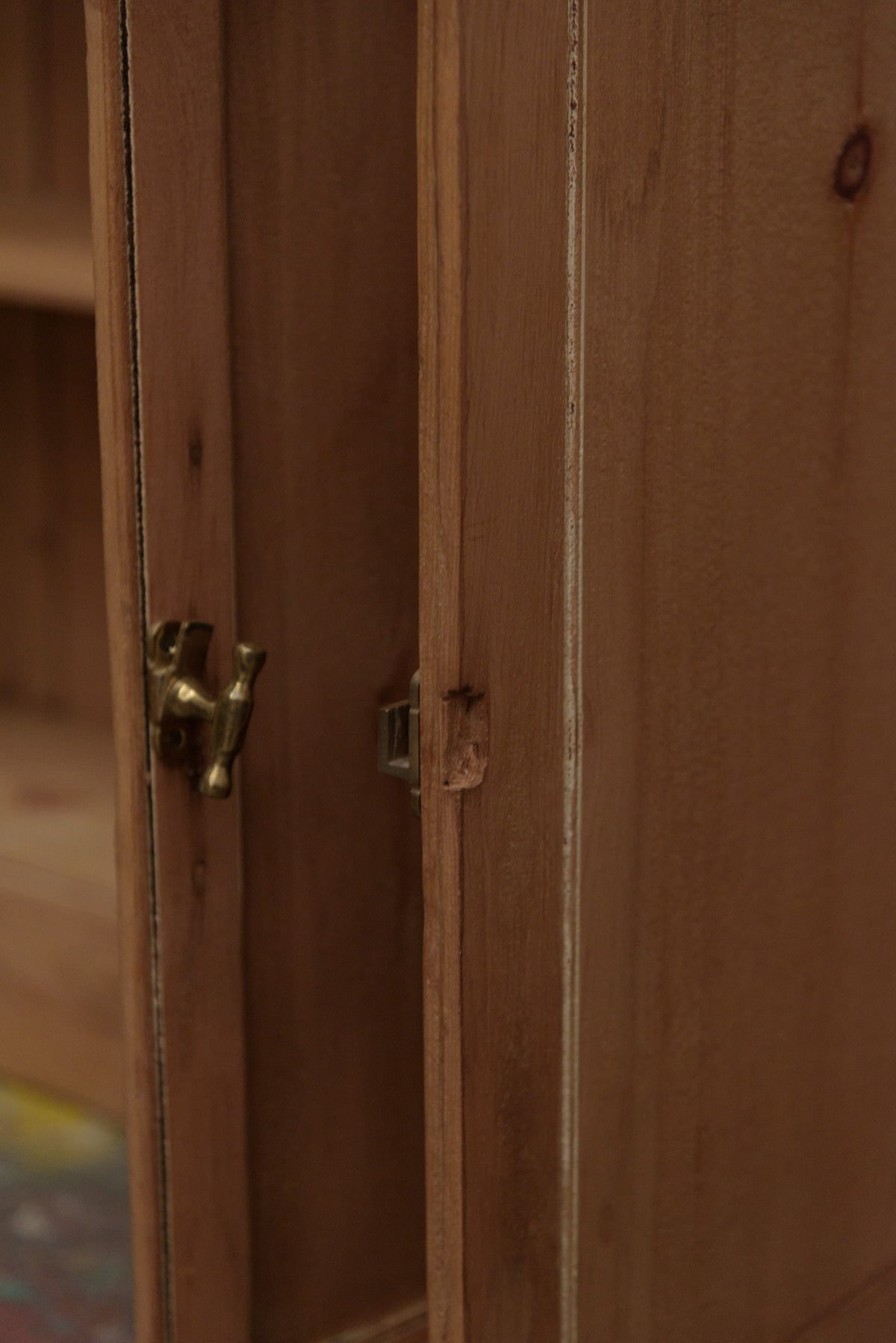 材質はパイン、1950ー60年ごろの家具です。シンプルで奥行きも小さい8枚扉の家具は非常にめずらしく、サイズ感やたたずまいの良さも間違いありません。棚板は可動式。