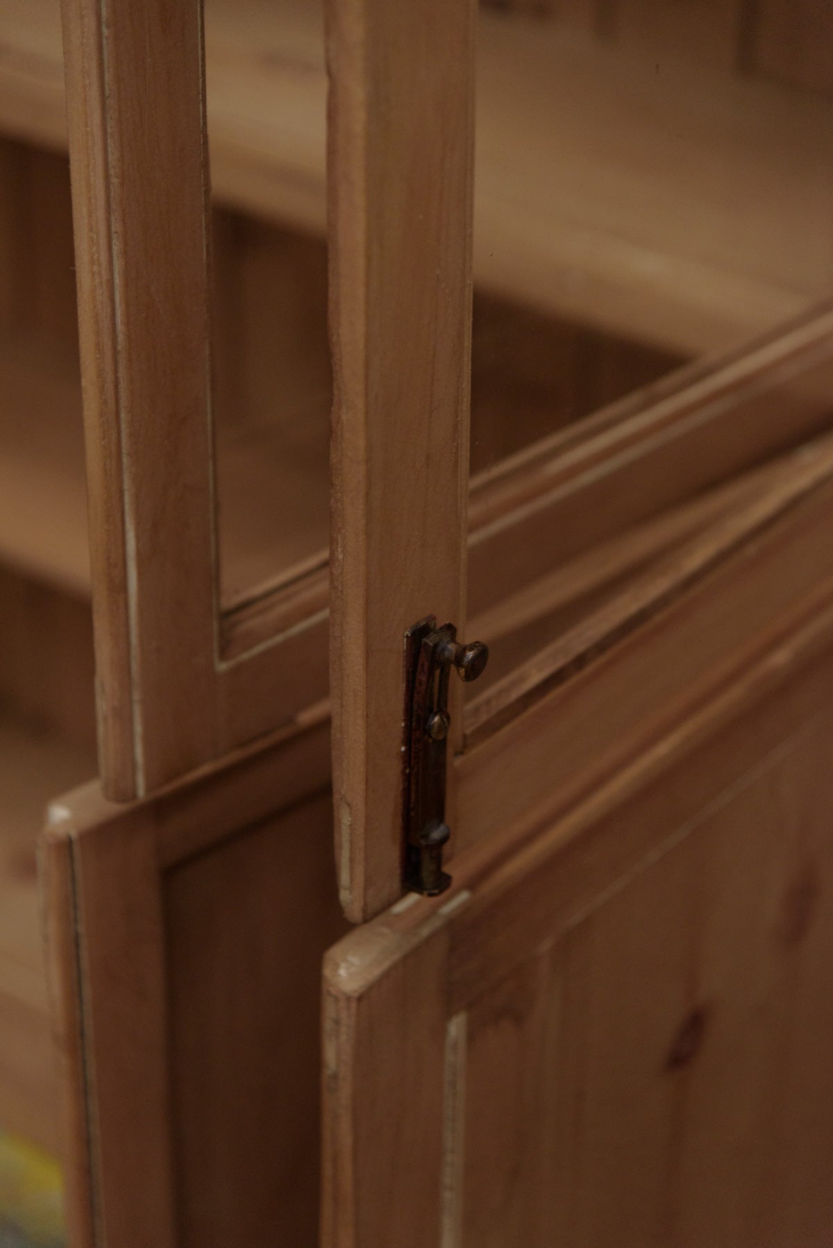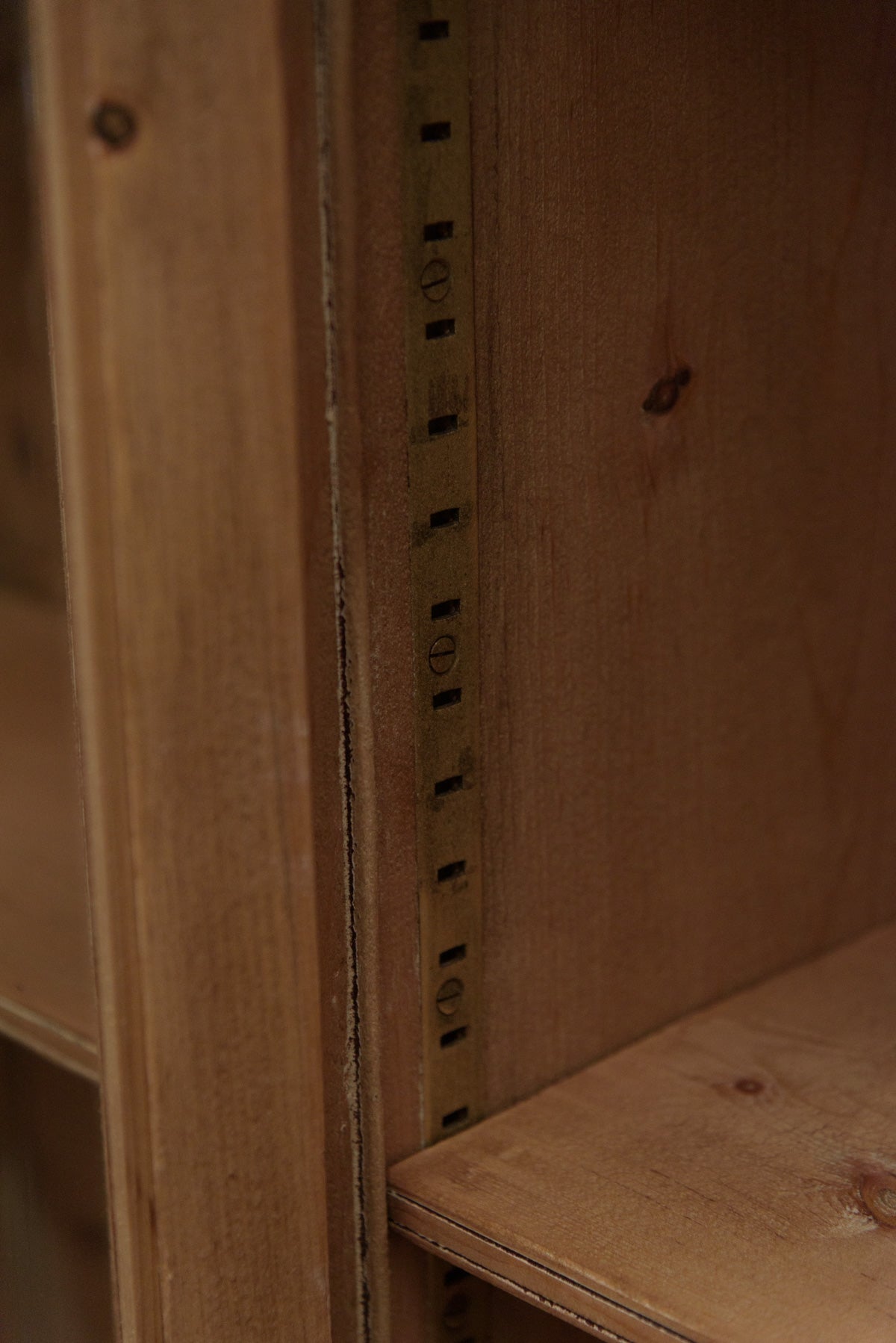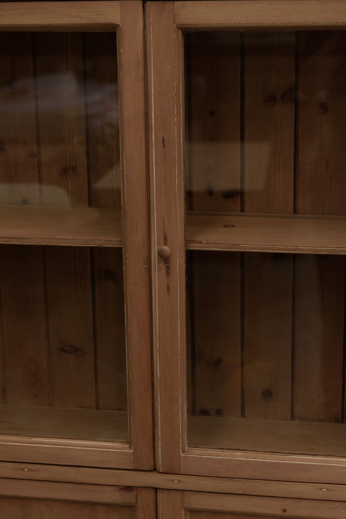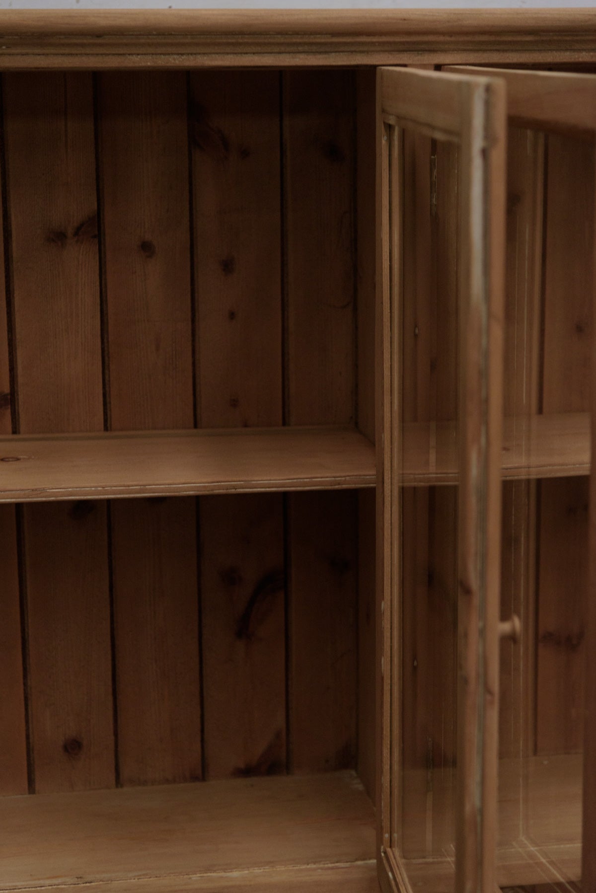 材質はパイン、1950ー60年ごろの家具です。シンプルで奥行きも小さい8枚扉の家具は非常にめずらしく、サイズ感やたたずまいの良さも間違いありません。棚板は可動式。