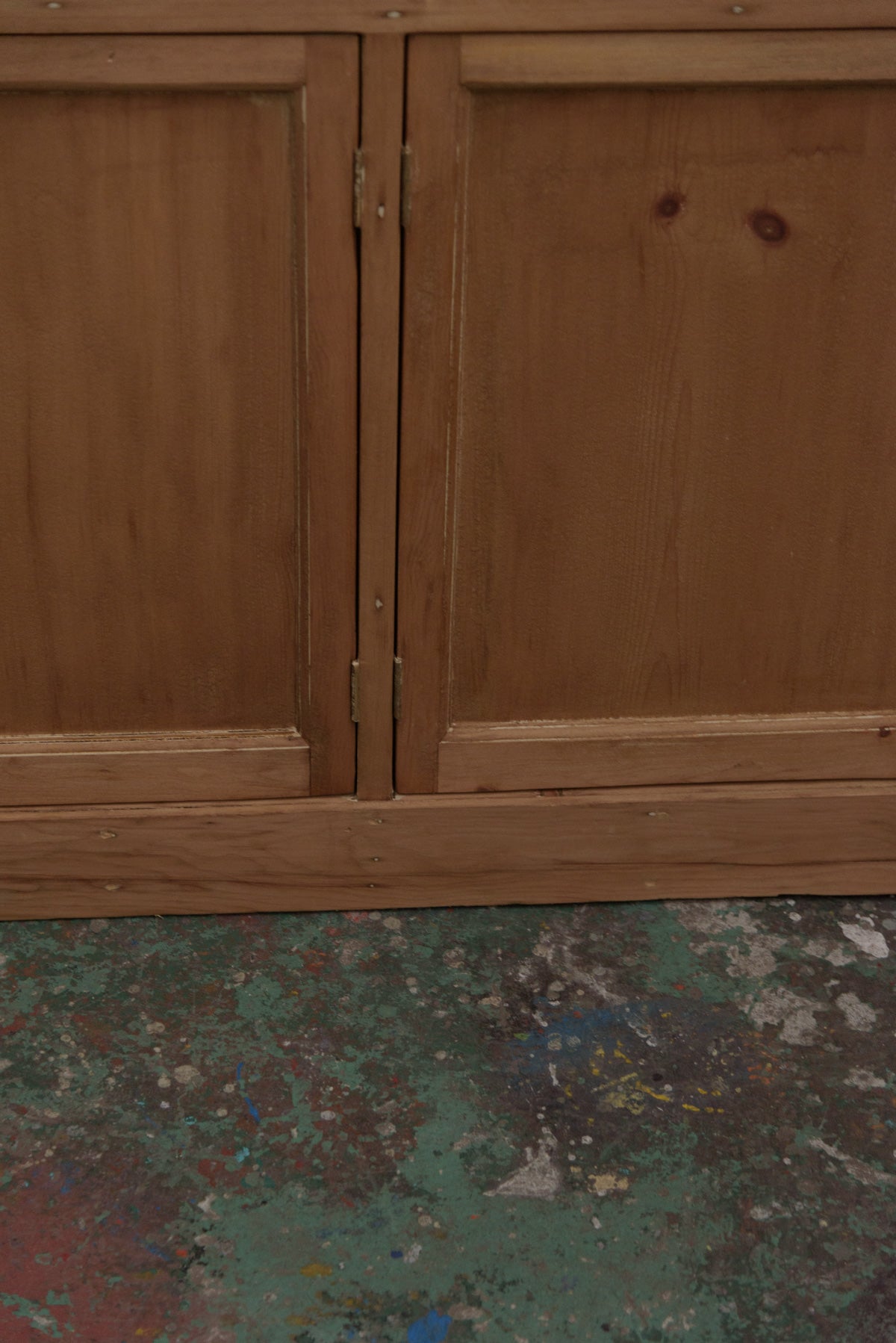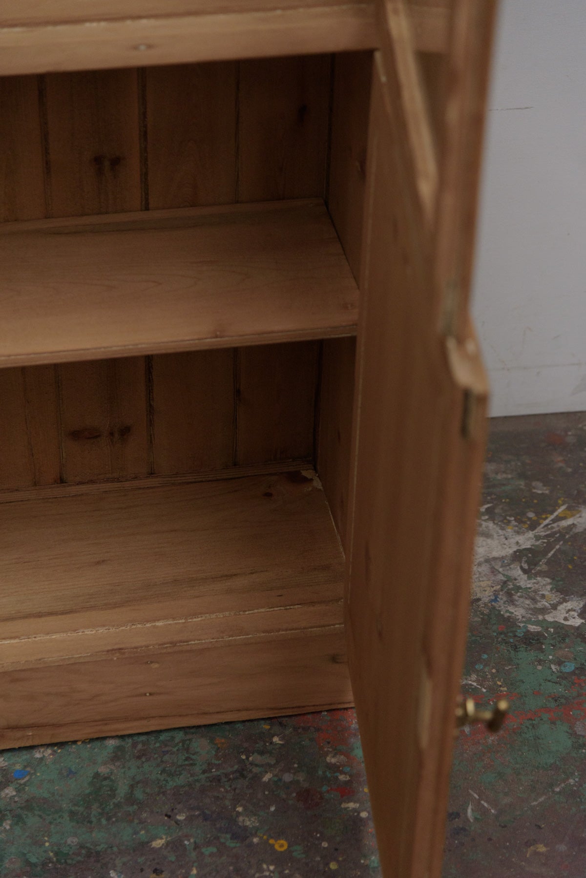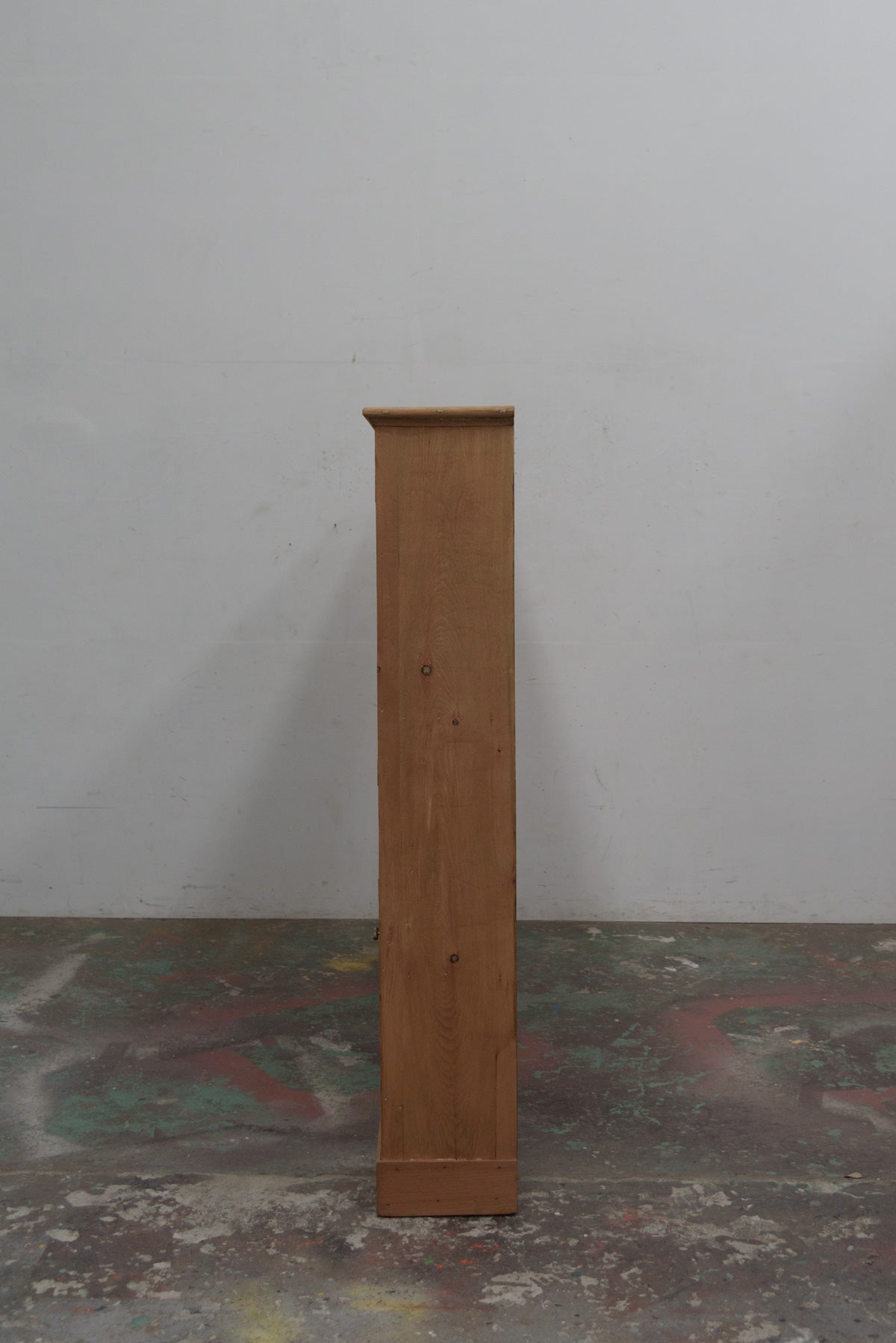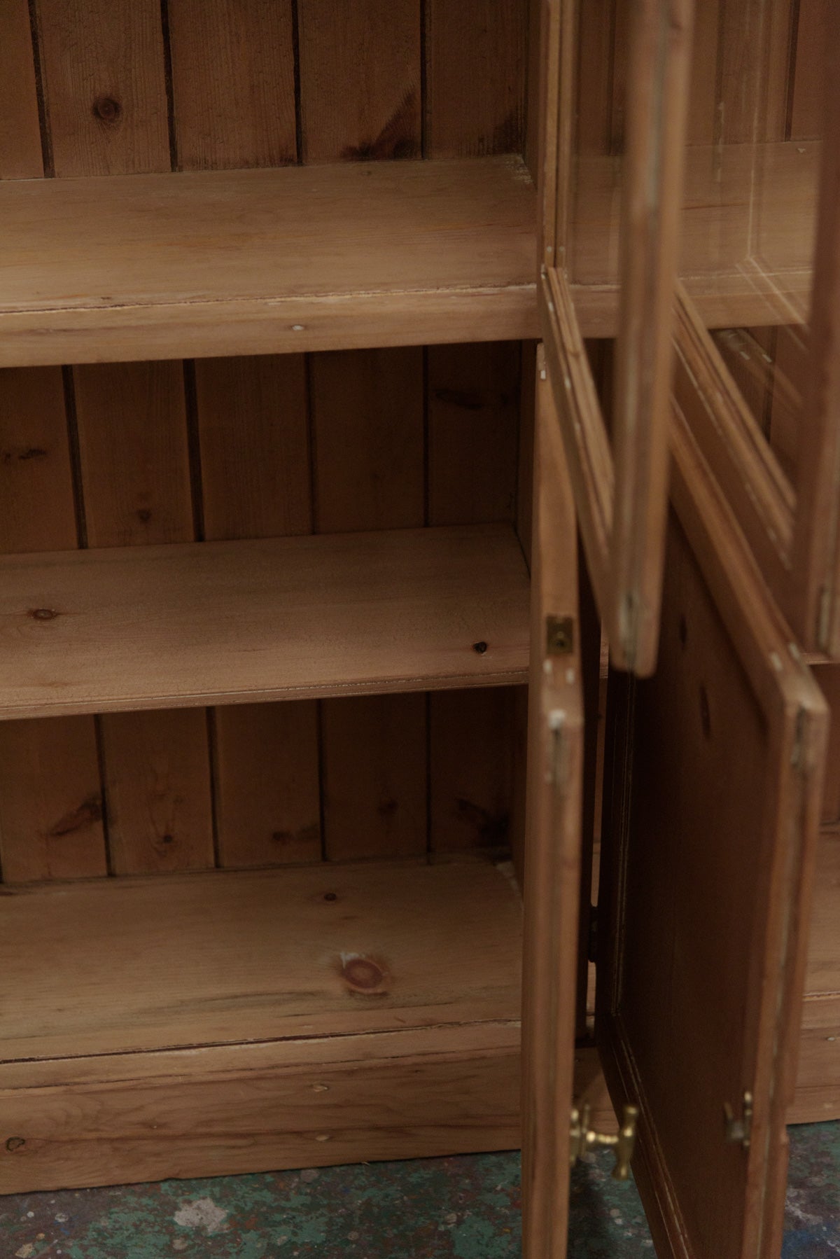 材質はパイン、1950ー60年ごろの家具です。シンプルで奥行きも小さい8枚扉の家具は非常にめずらしく、サイズ感やたたずまいの良さも間違いありません。棚板は可動式。