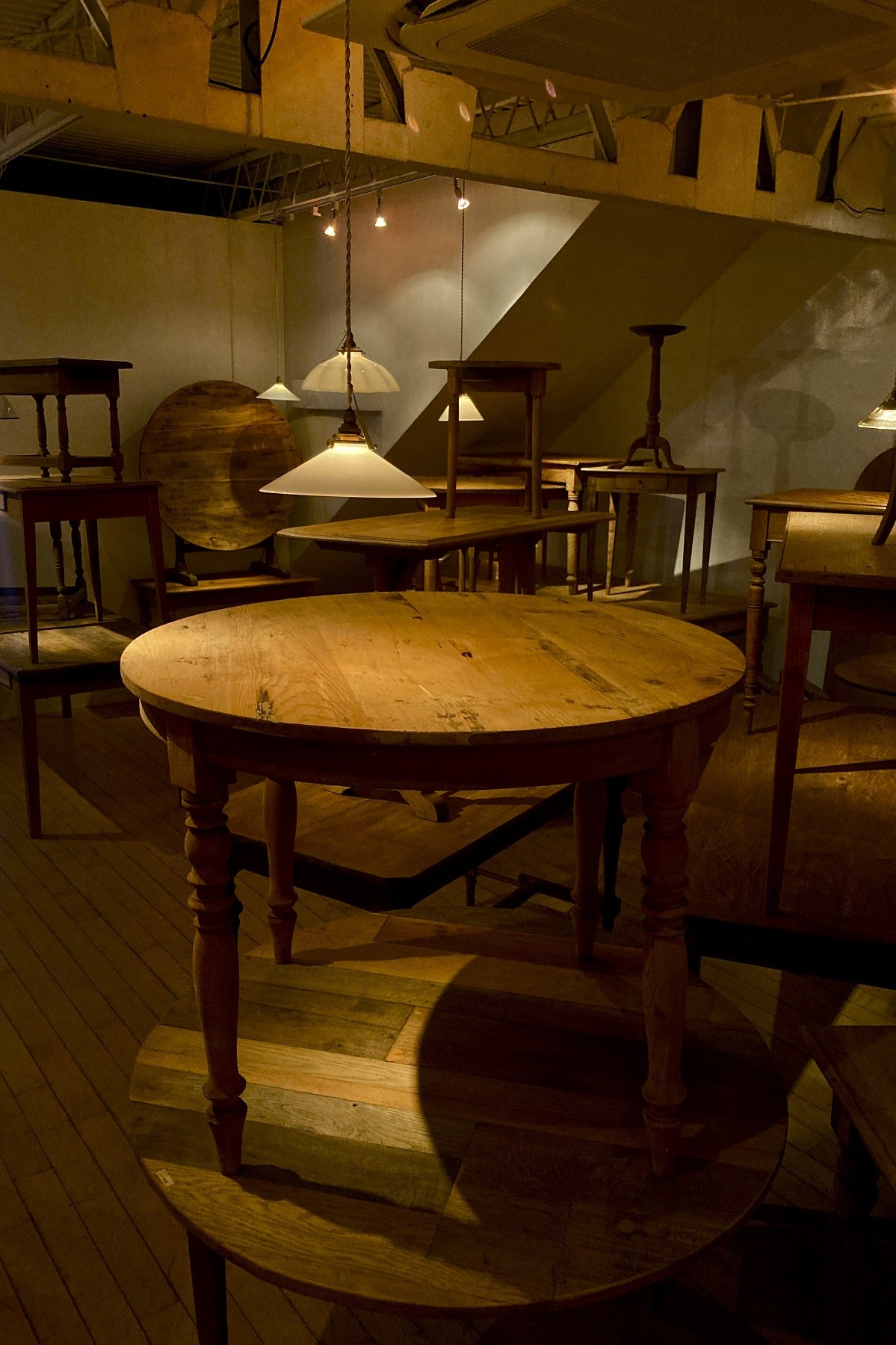 ベルギーで仕入れたパイン材のラウンドテーブル。