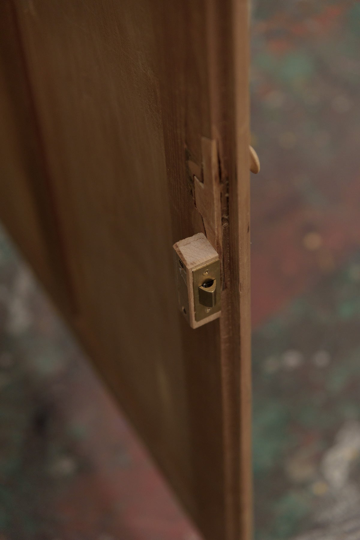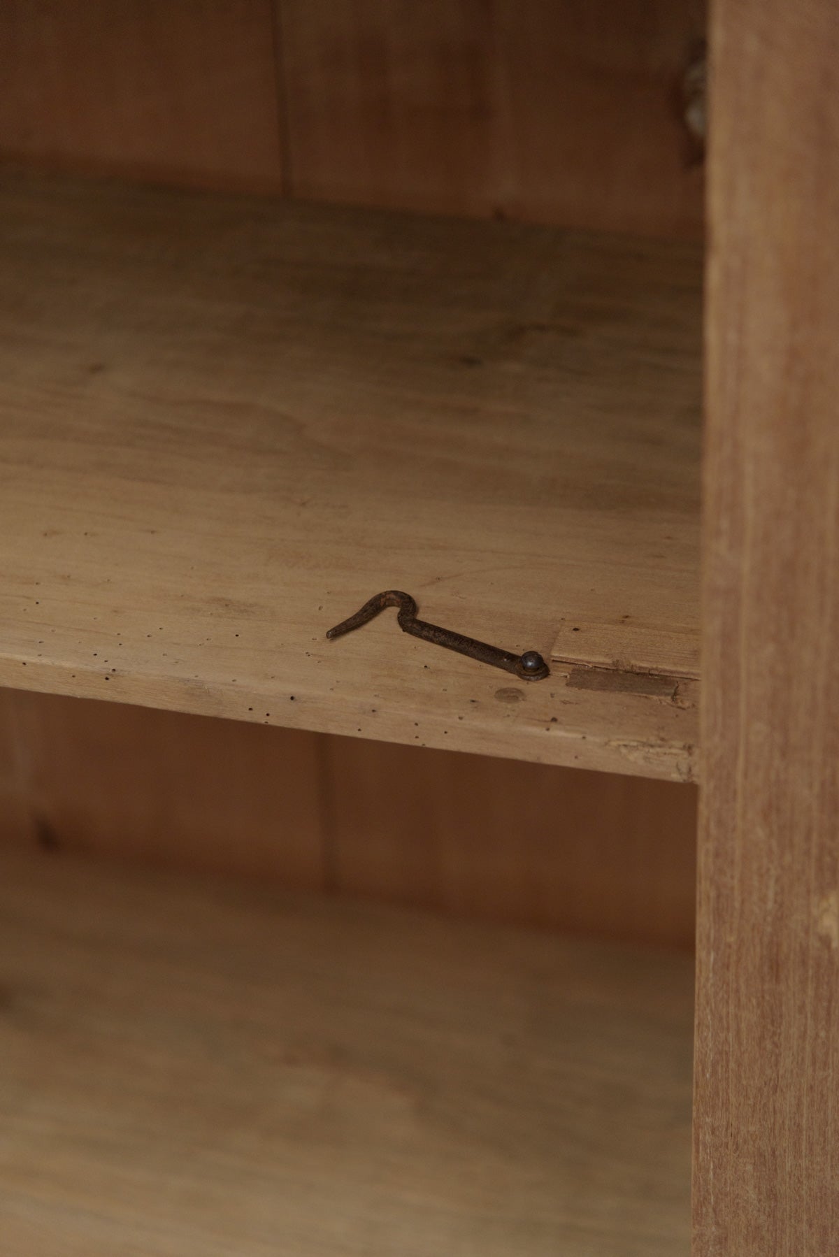 1940ー50年ごろのシンプルな木製キャビネットの塗装を落としています。棚板は取り外せます。高さが低めで上にランプや絵を飾るのが楽しめそうな家具です。扉の動きも調整済み。材質はパイン。