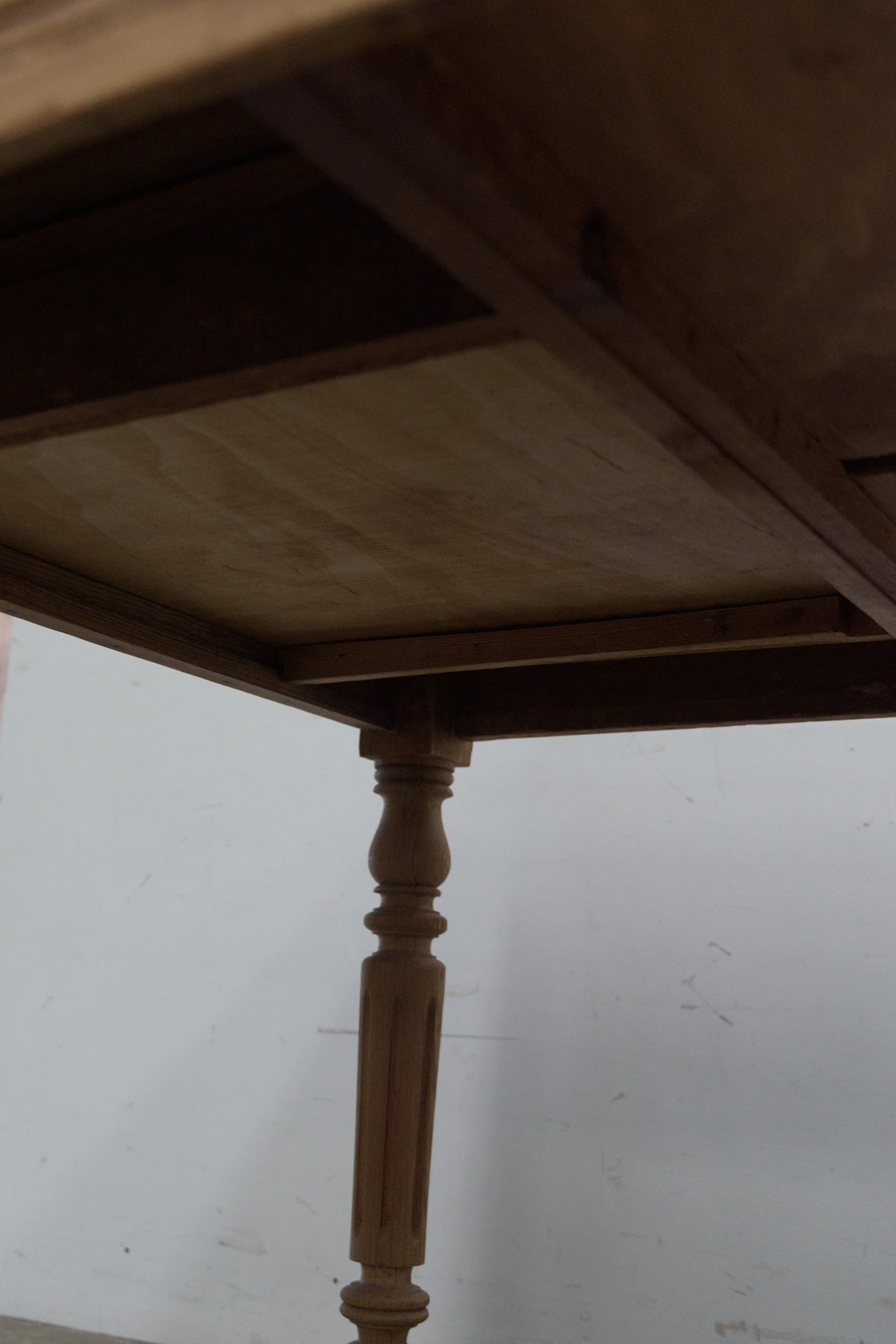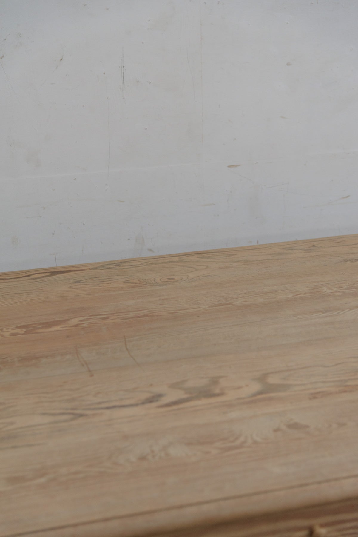 アンティークパインのやわらかい風合いの天板に、引き出しが7杯ついた8人掛けの大きなテーブルです。なかなかこのサイズのテーブルは入荷しません。ぐらつきもなくしっかりしています。大きな家具ですので、ご購入の際は搬入経路をご確認ください。