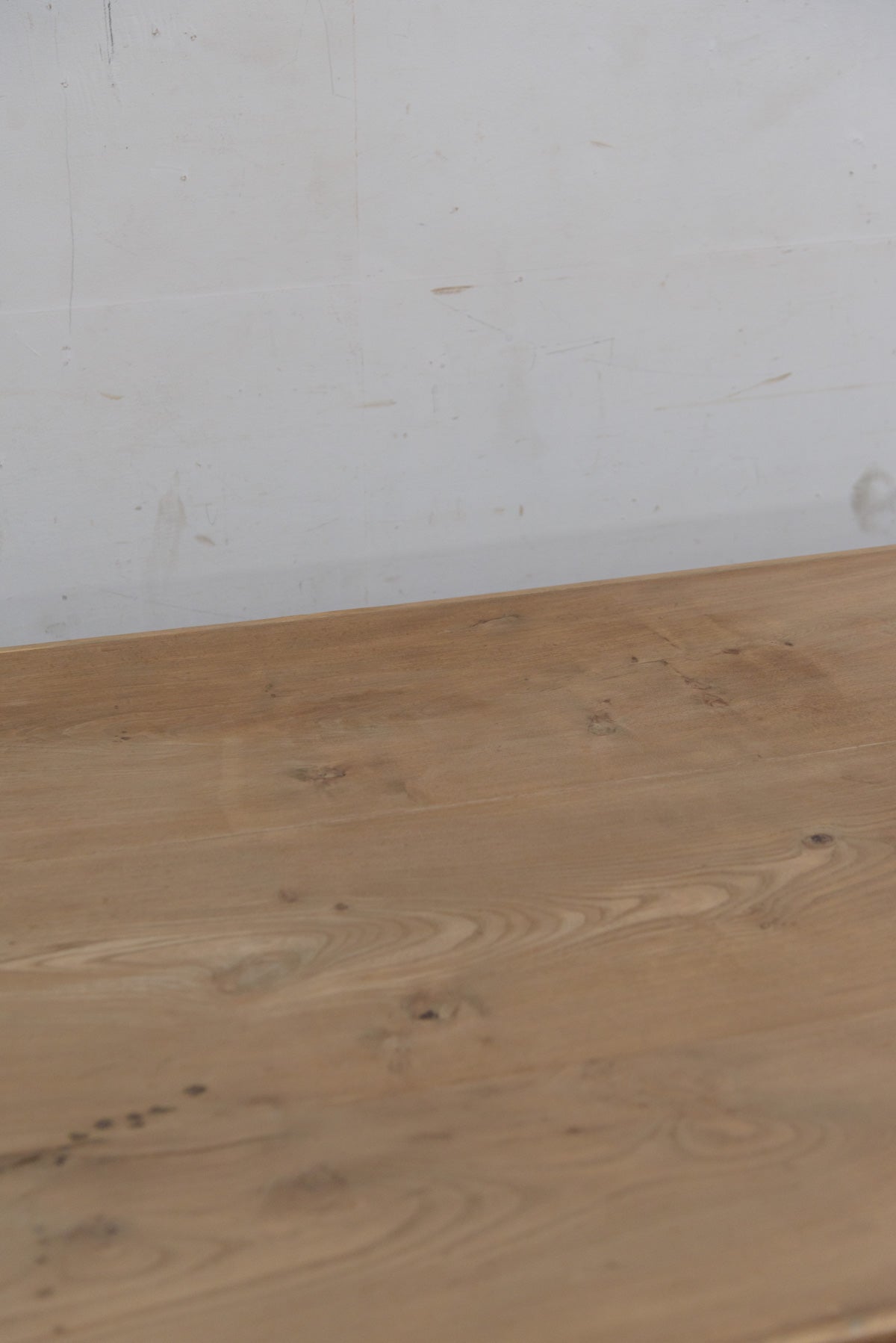脚の形もきれいで天板の状態も良好です。4人掛けにちょうどいいサイズ。材質はエルム材と思われます。