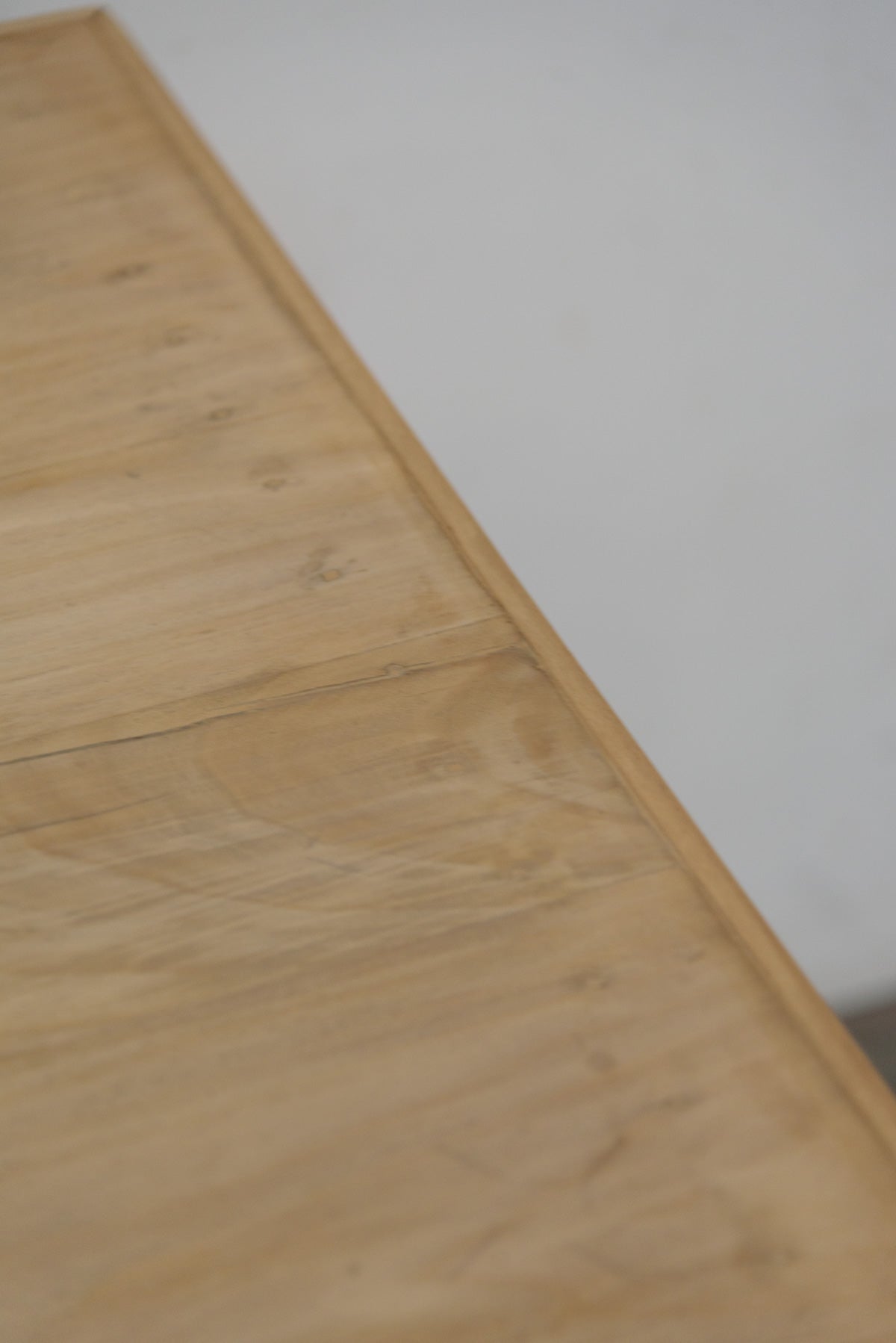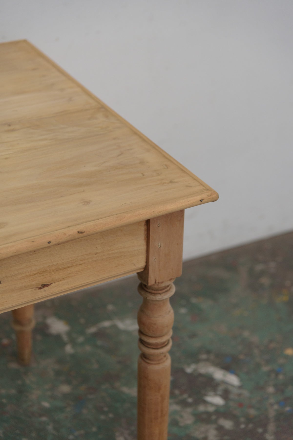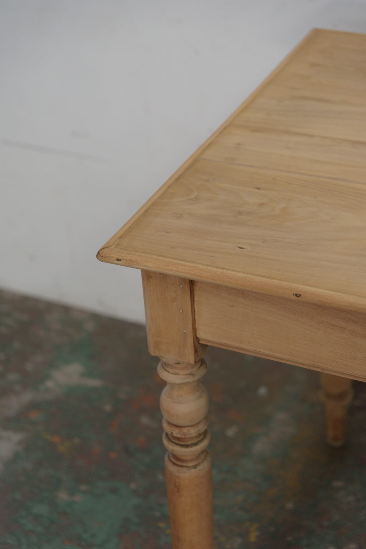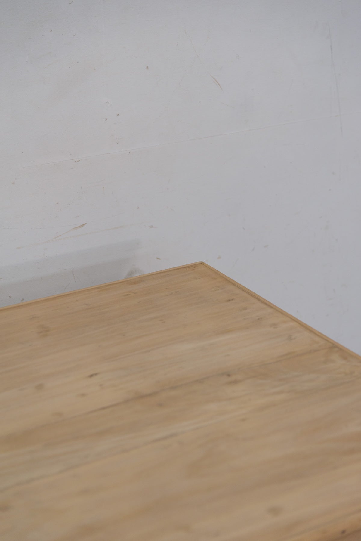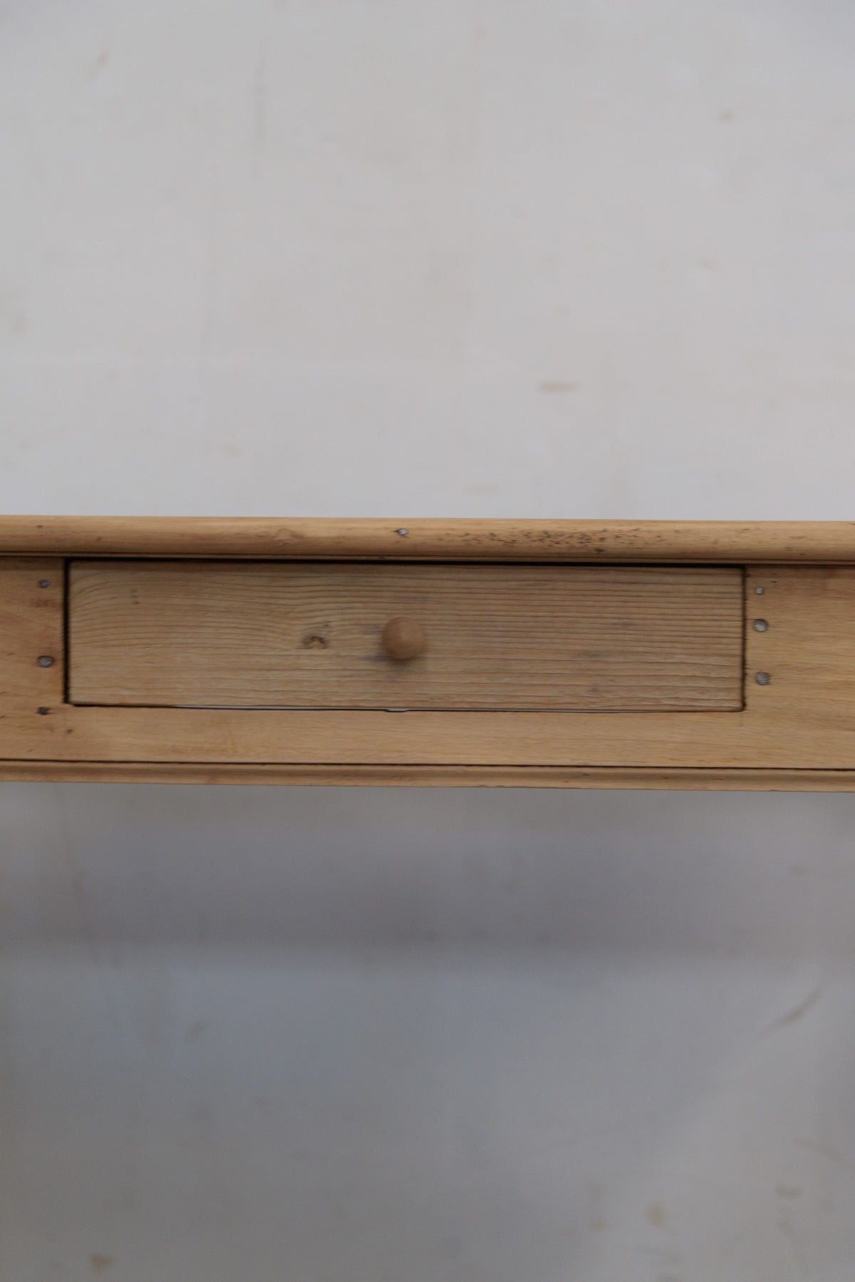 脚はオーク、天板はパイン材。比較的色は薄めで天板の状態も良く、引き出しの動きも問題ありません。端正でたたずまいの良いテーブルです。