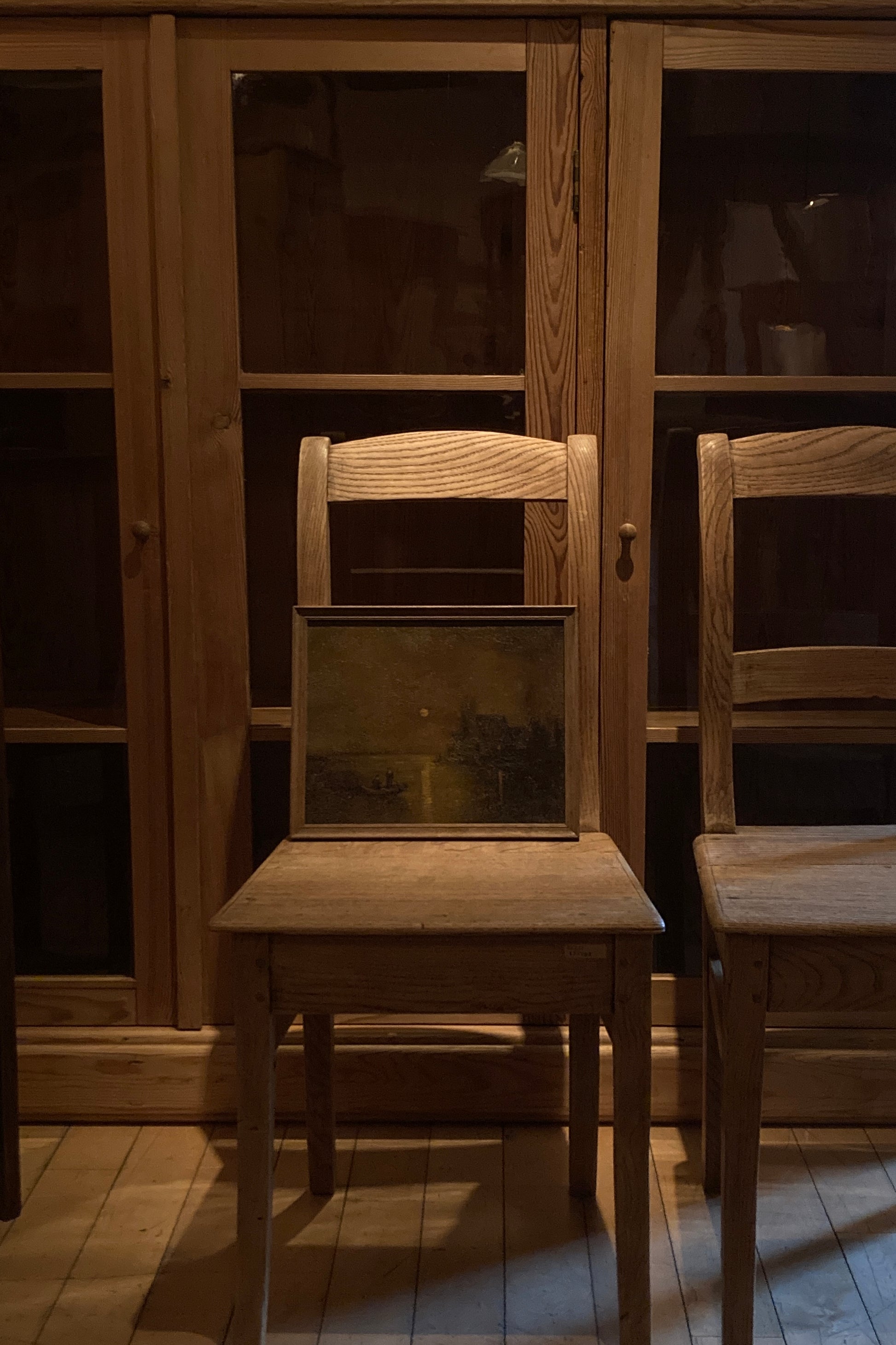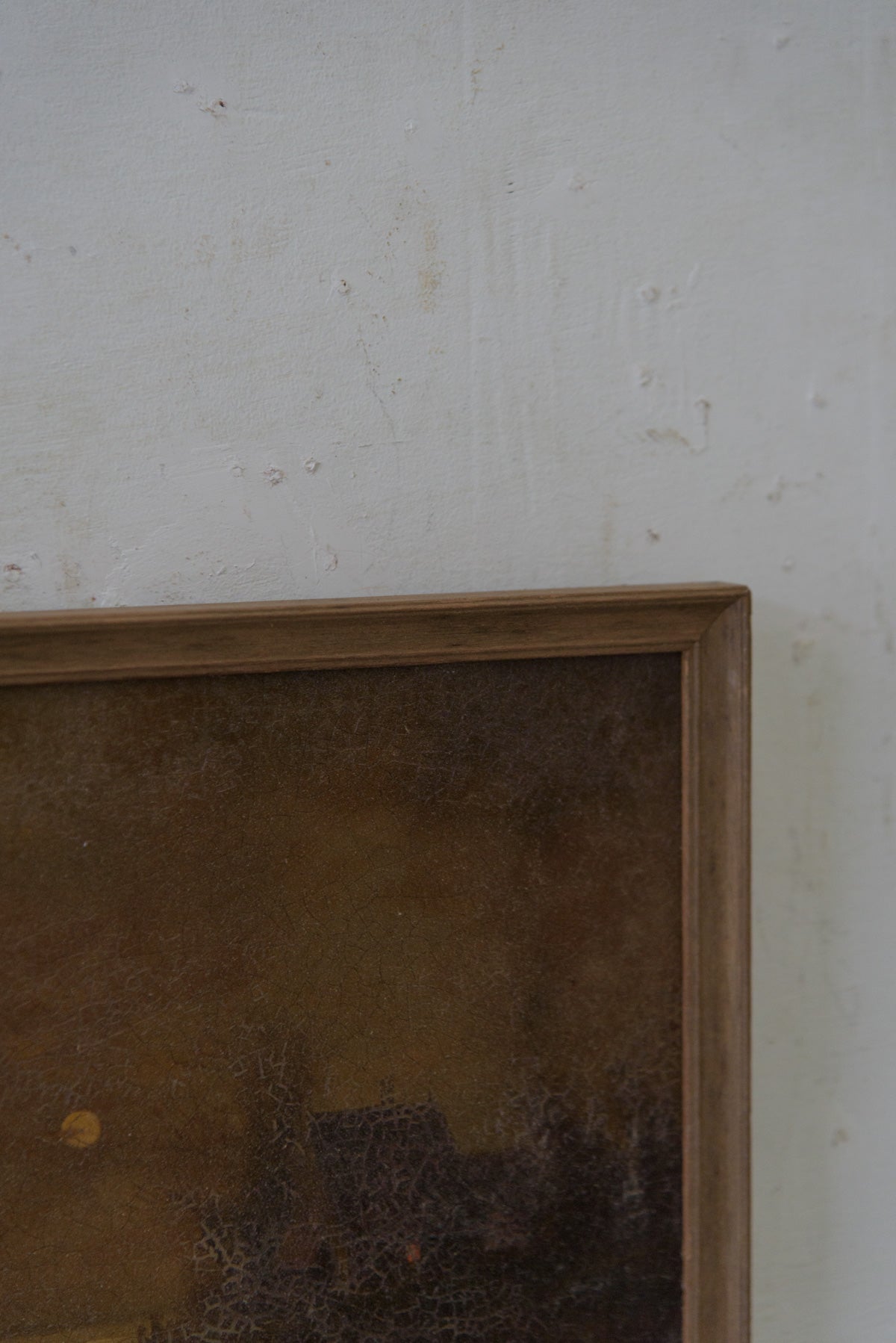 19世紀末〜20世紀初頭、月明かりが美しく描かれた風景画。表面のクラックも含めて非常に雰囲気のある絵です。