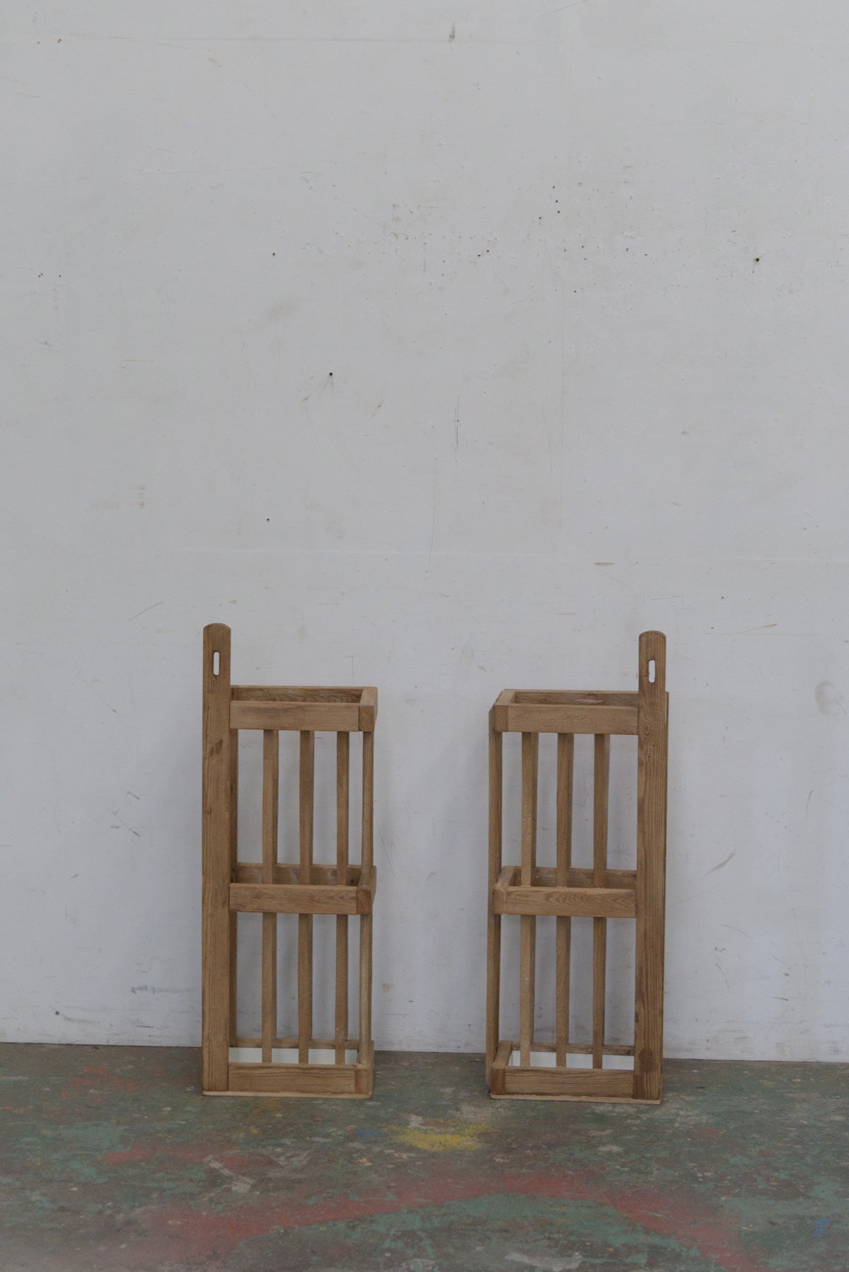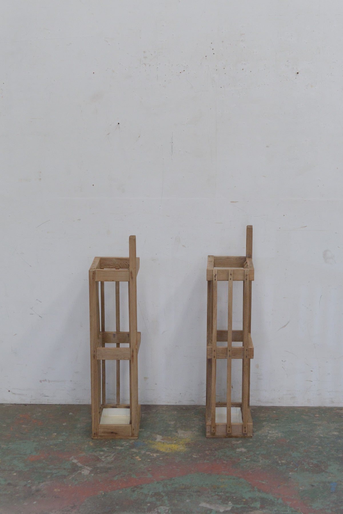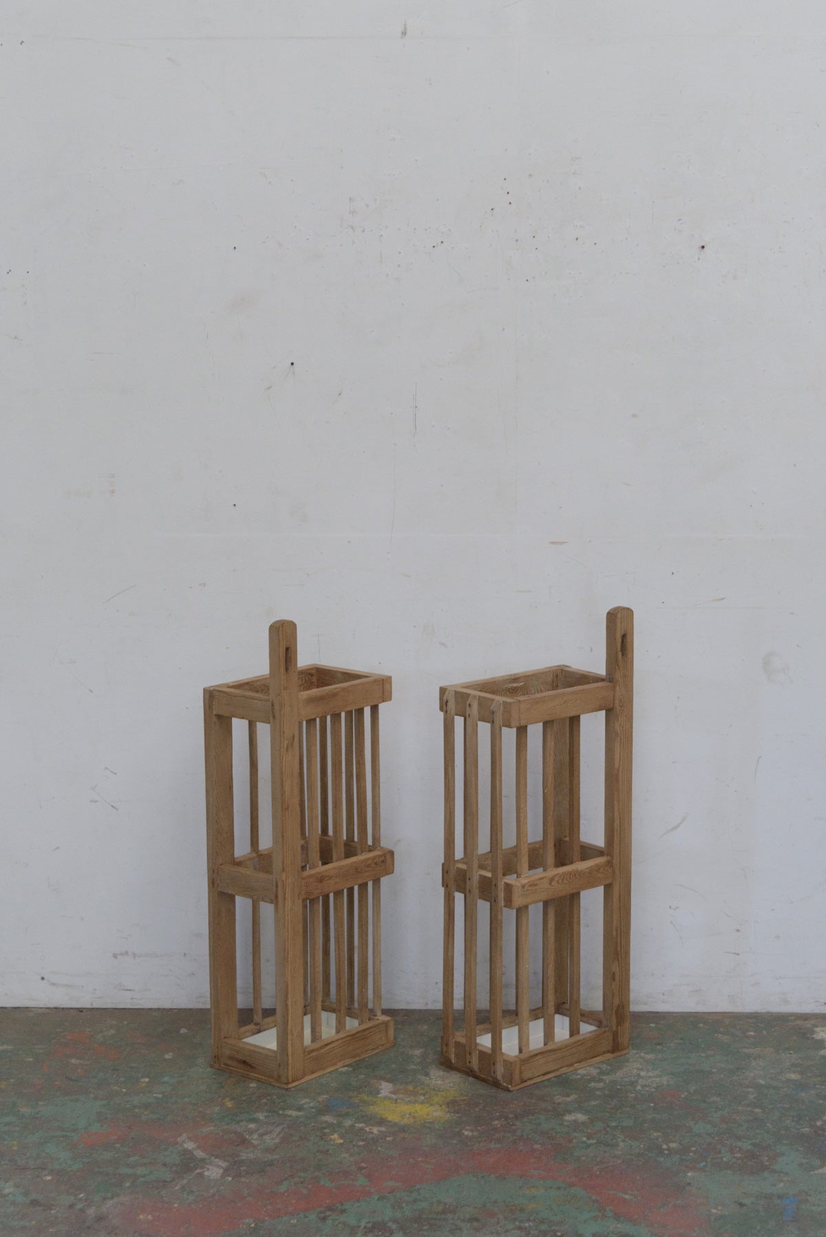 古い皿立てをリメイクした傘立てです。底の白いトレーは鉄製。