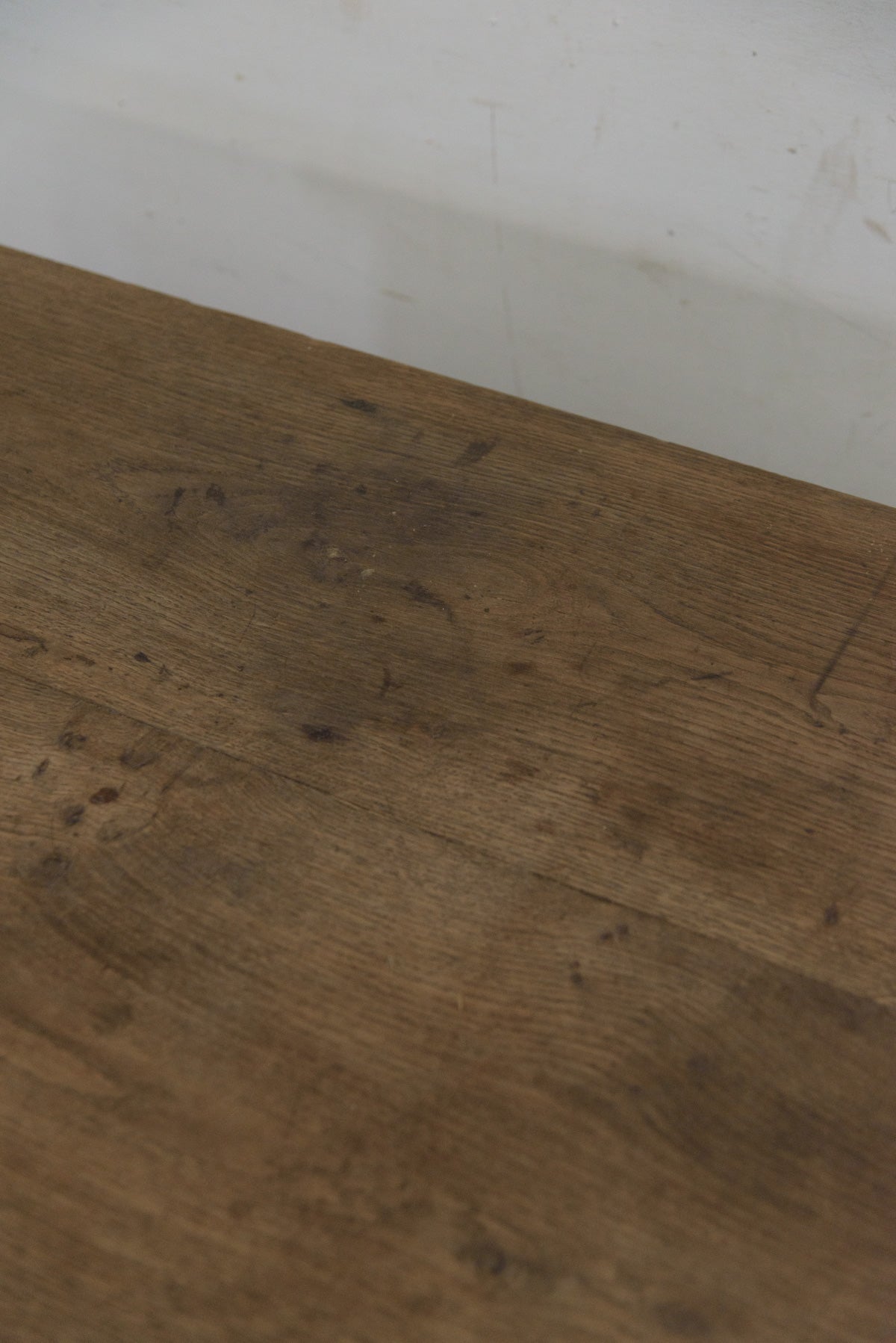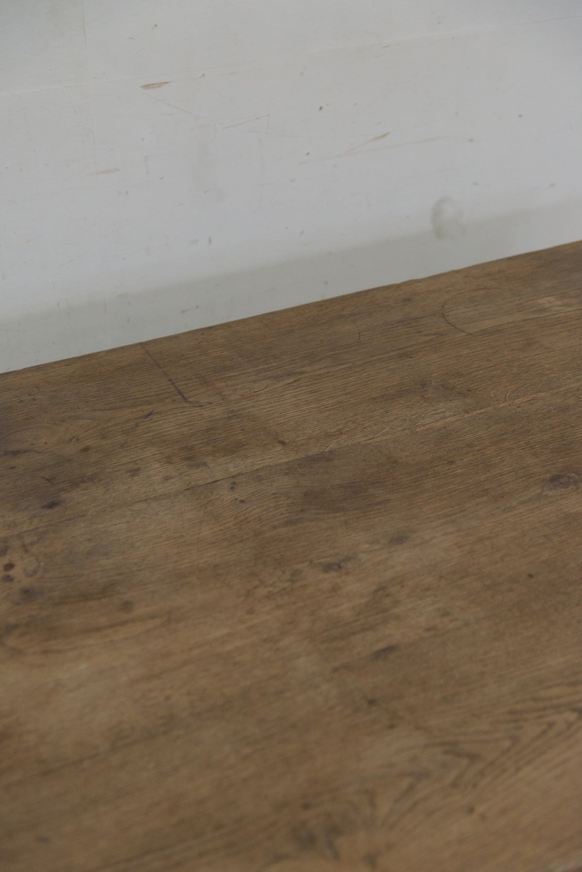 100年以上使い込まれてきたオーク材の質感と表情が素晴らしいテーブルです。シンプルで端正なデザインですのでどんな椅子とも合わせやすく、飽きの来ない家具です。