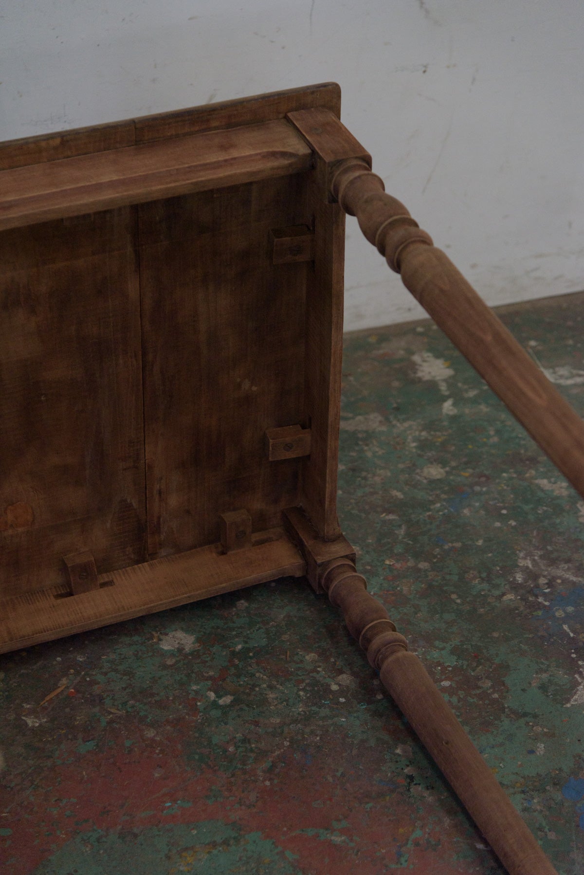 細い脚がシャープな印象の、クラシックなテーブルです。めずらしい正方形に近い形で、ちょっとしたデスクや2人用のテーブルとして。1920ー40年ごろの古い家具で使い込んだ天板には小さな傷等ありますが、反りやぐらつきもなくしっかり実用できます。